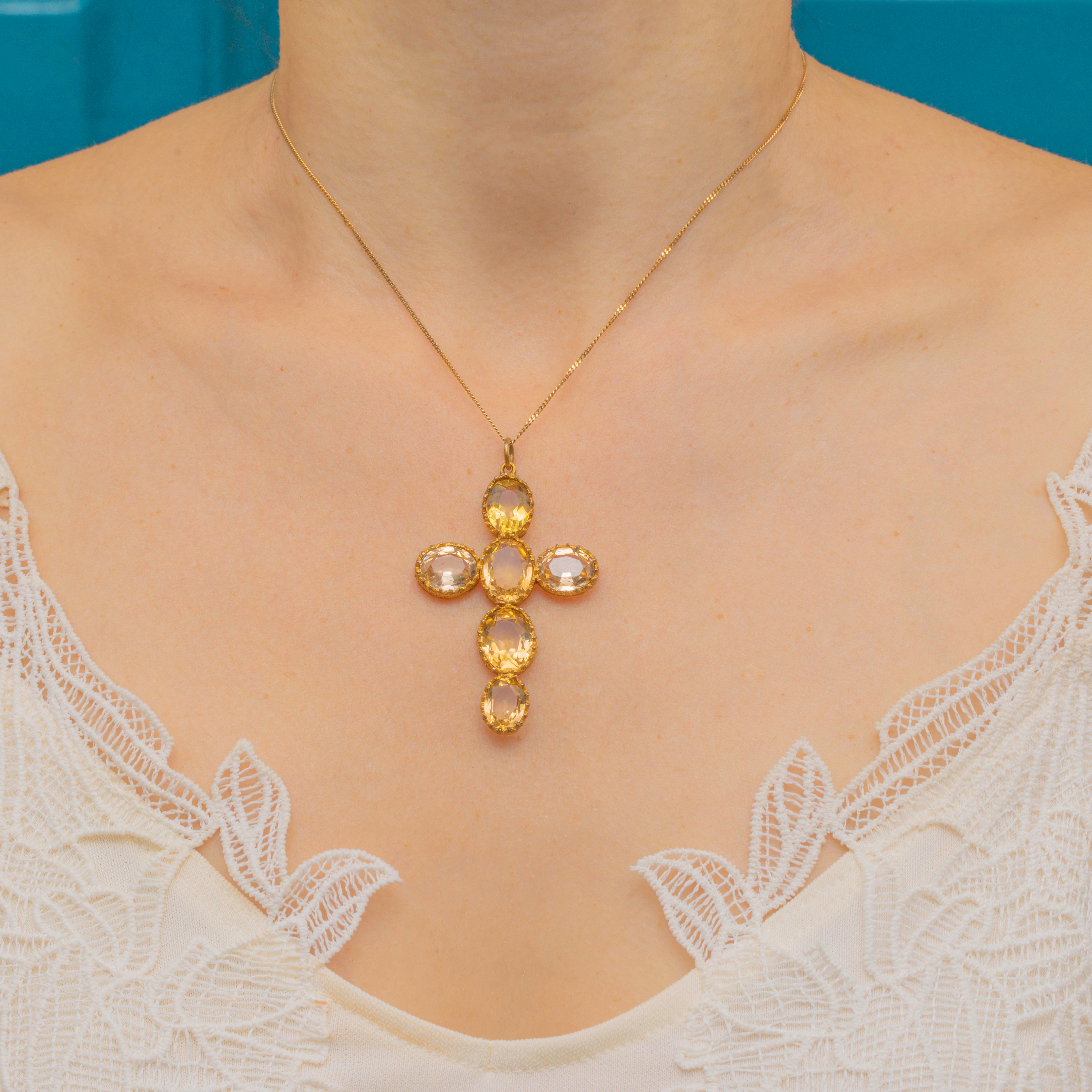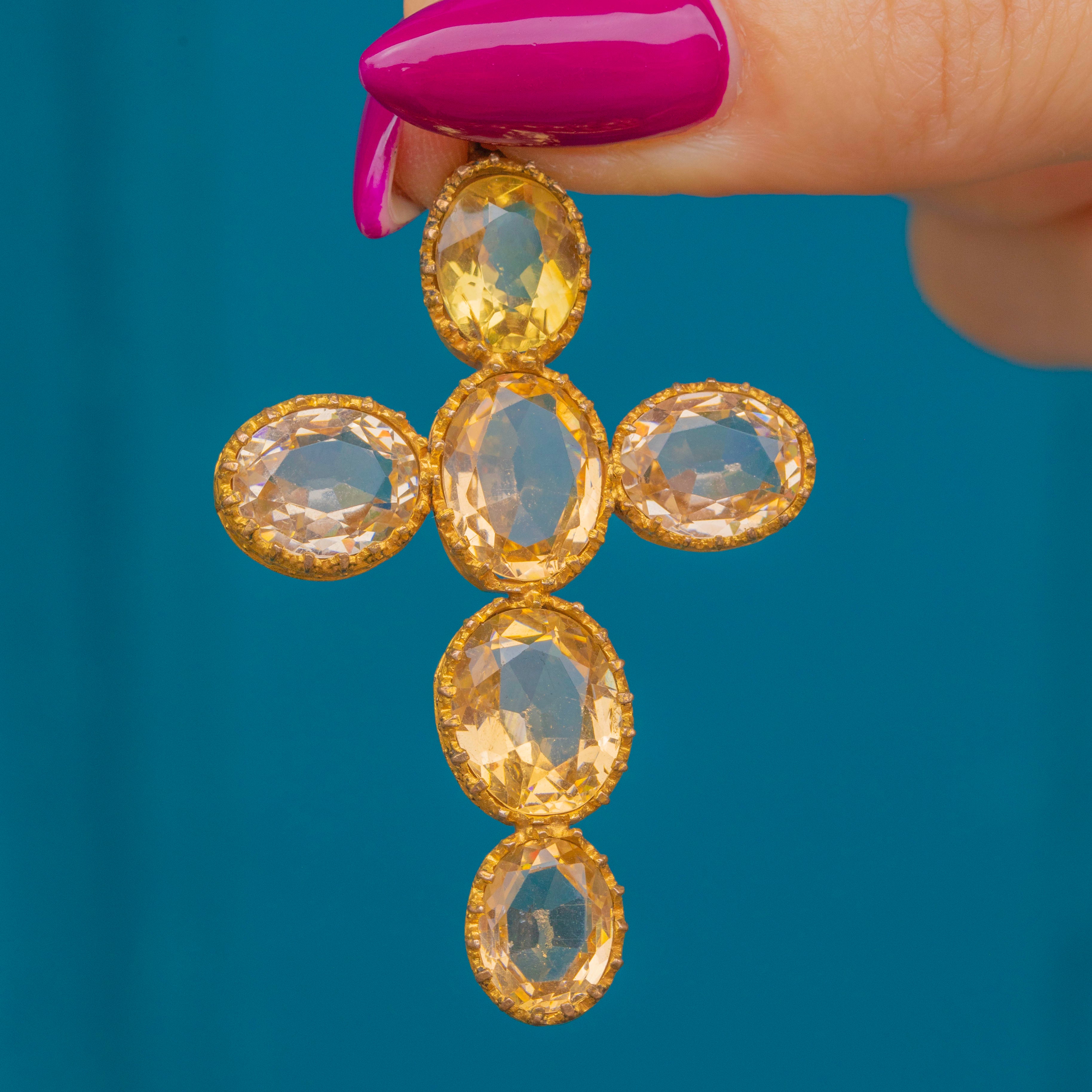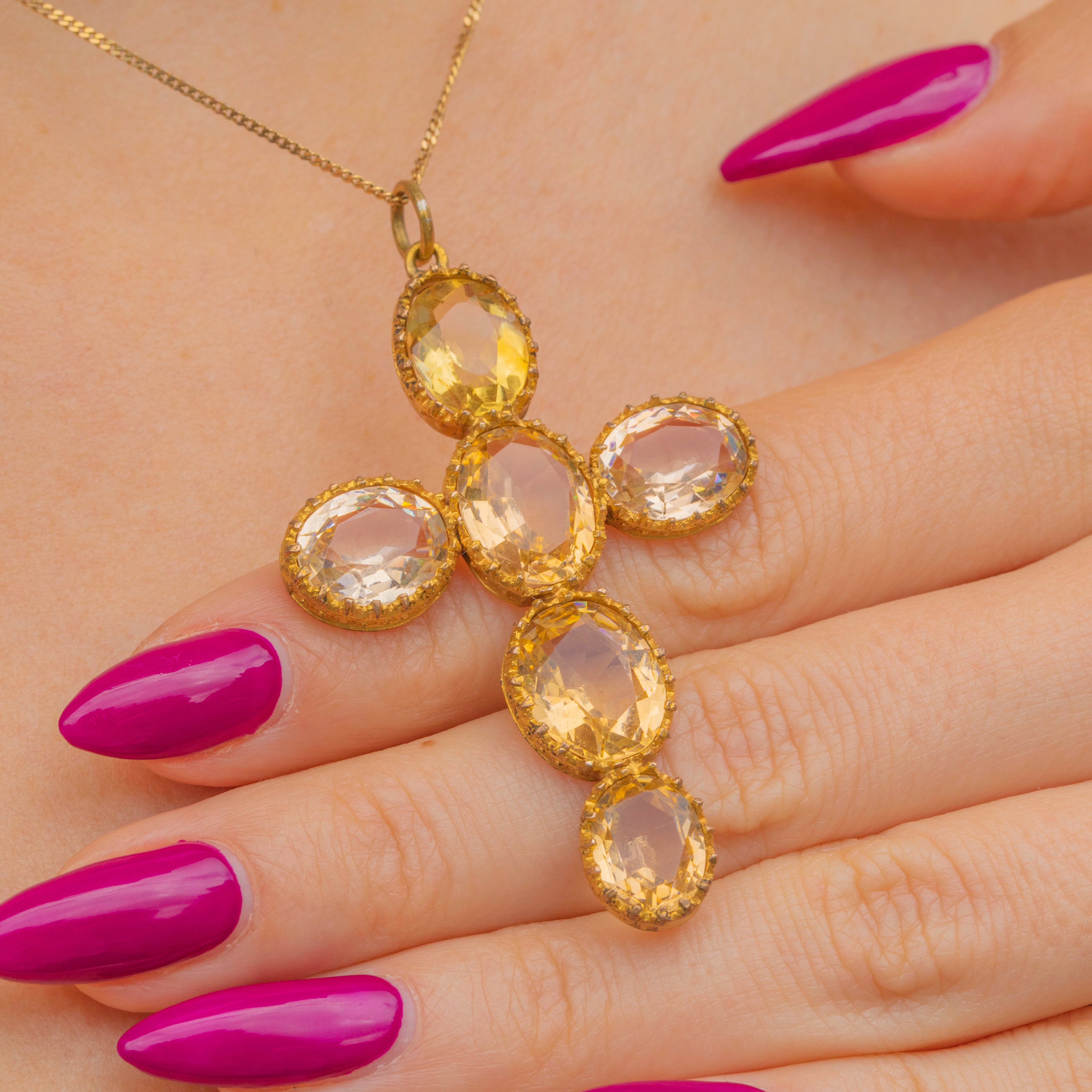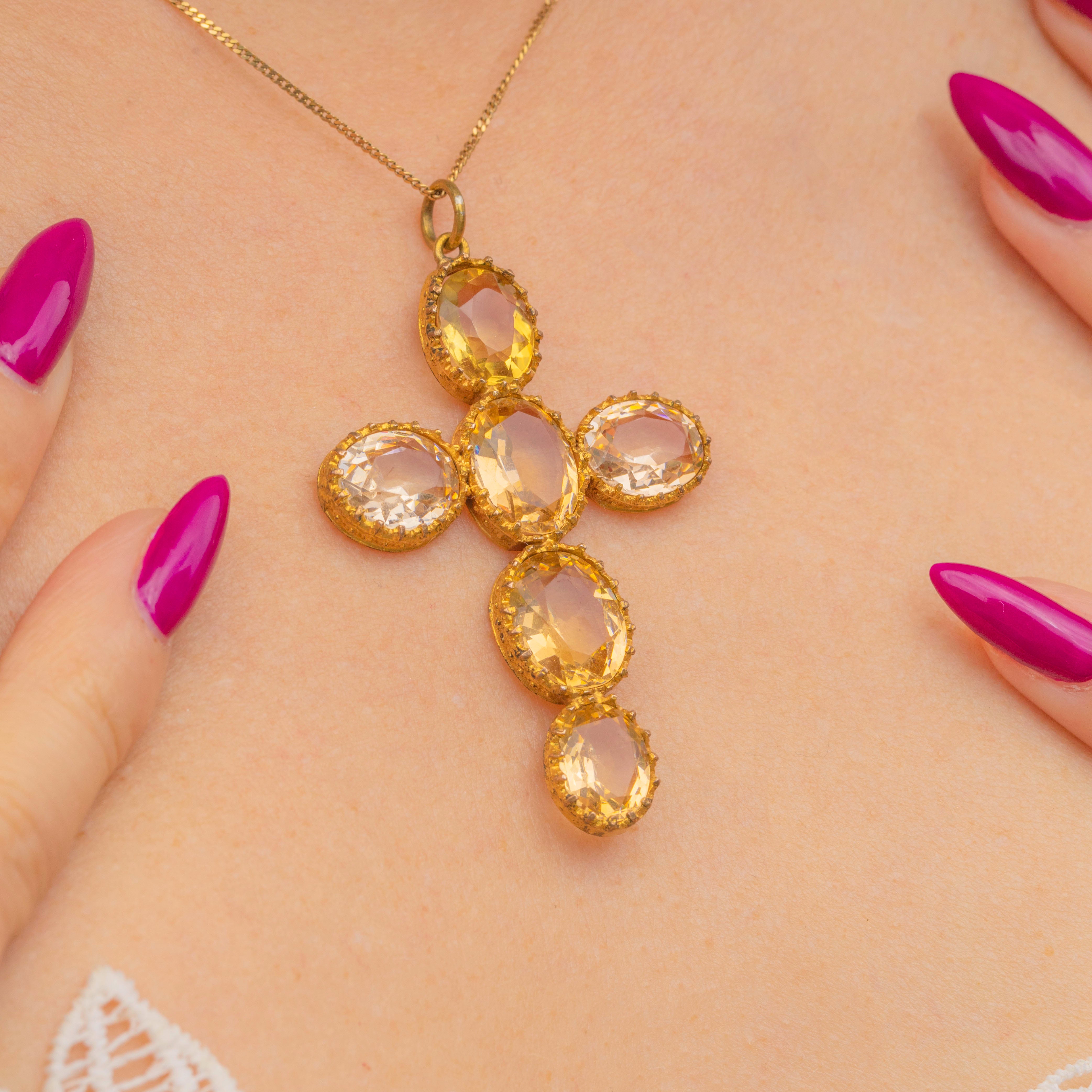 Like a ray of sunshine, this large Georgian cross pendant features five plump dandelion-hued Paste stones, complemented by a vibrant 3.15ct lemon Citrine.