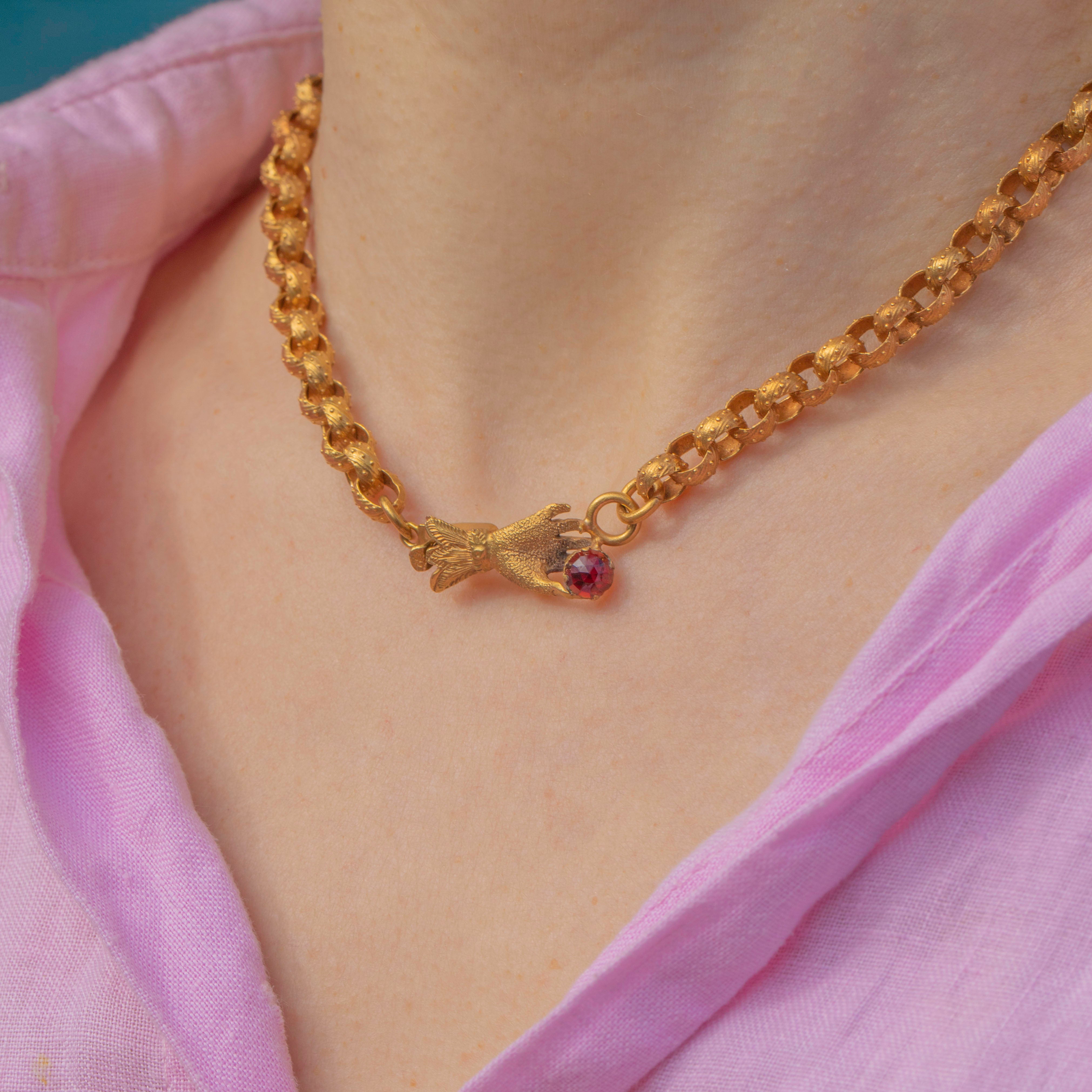 Georgian Pinchbeck Garnet Hand Clasp Necklace, 0.35ct