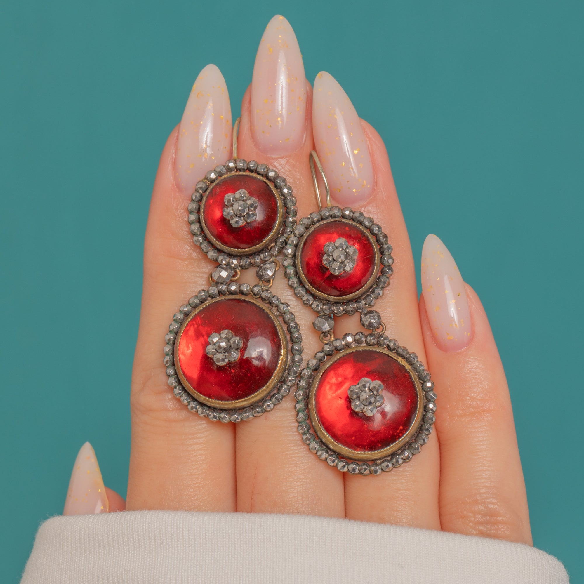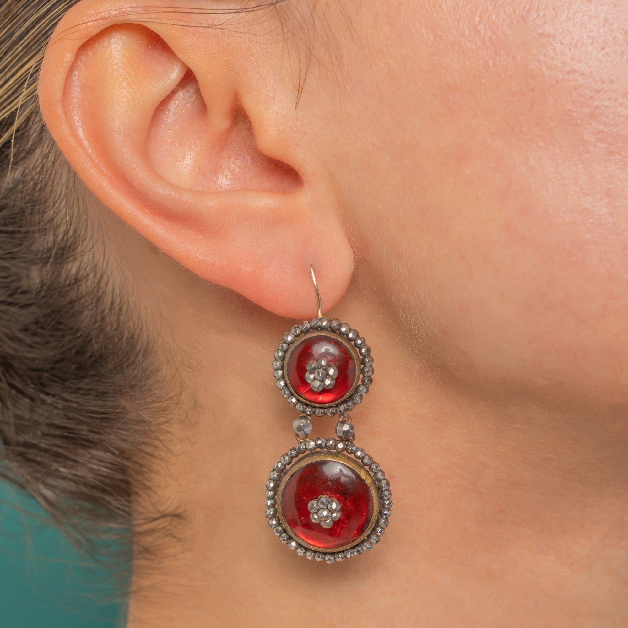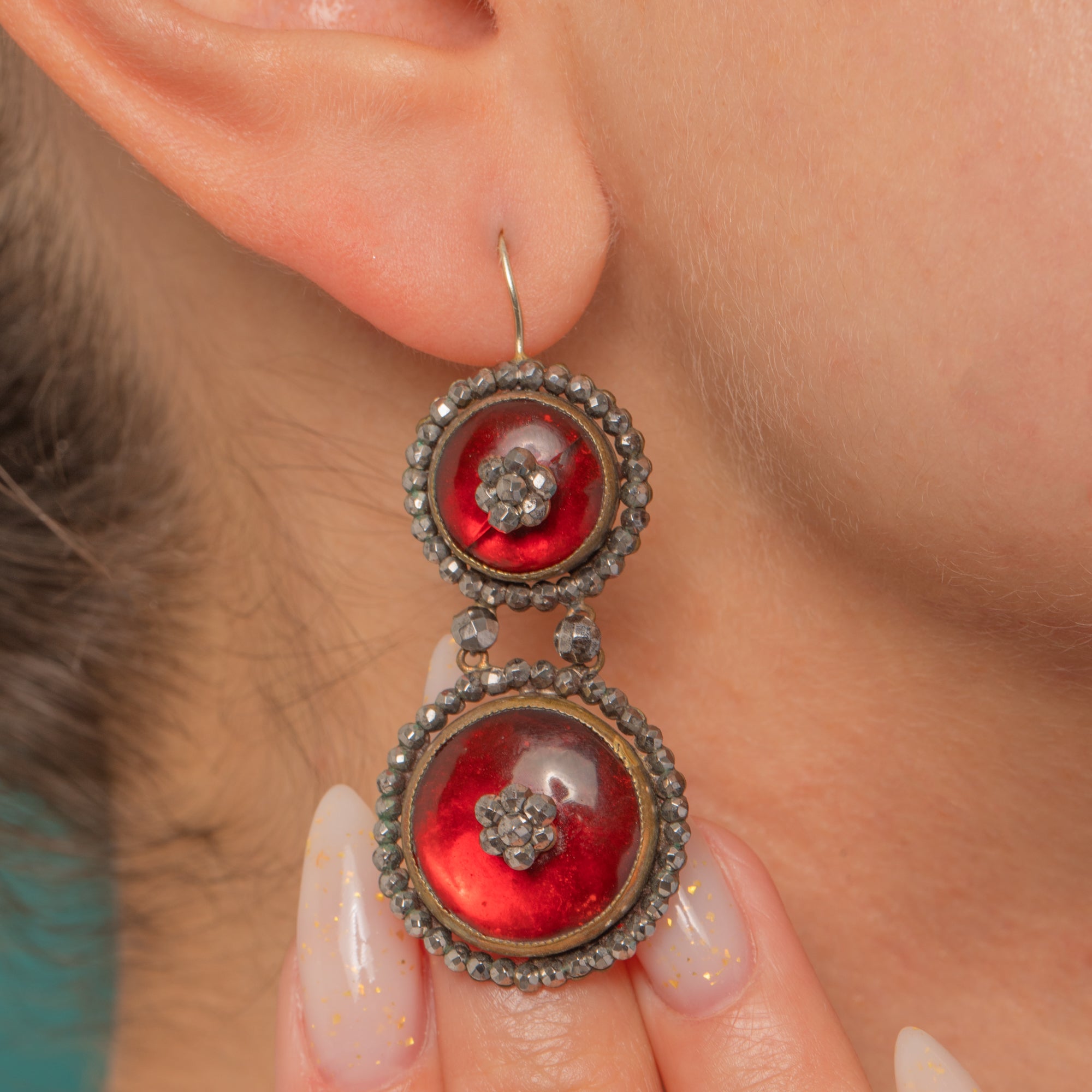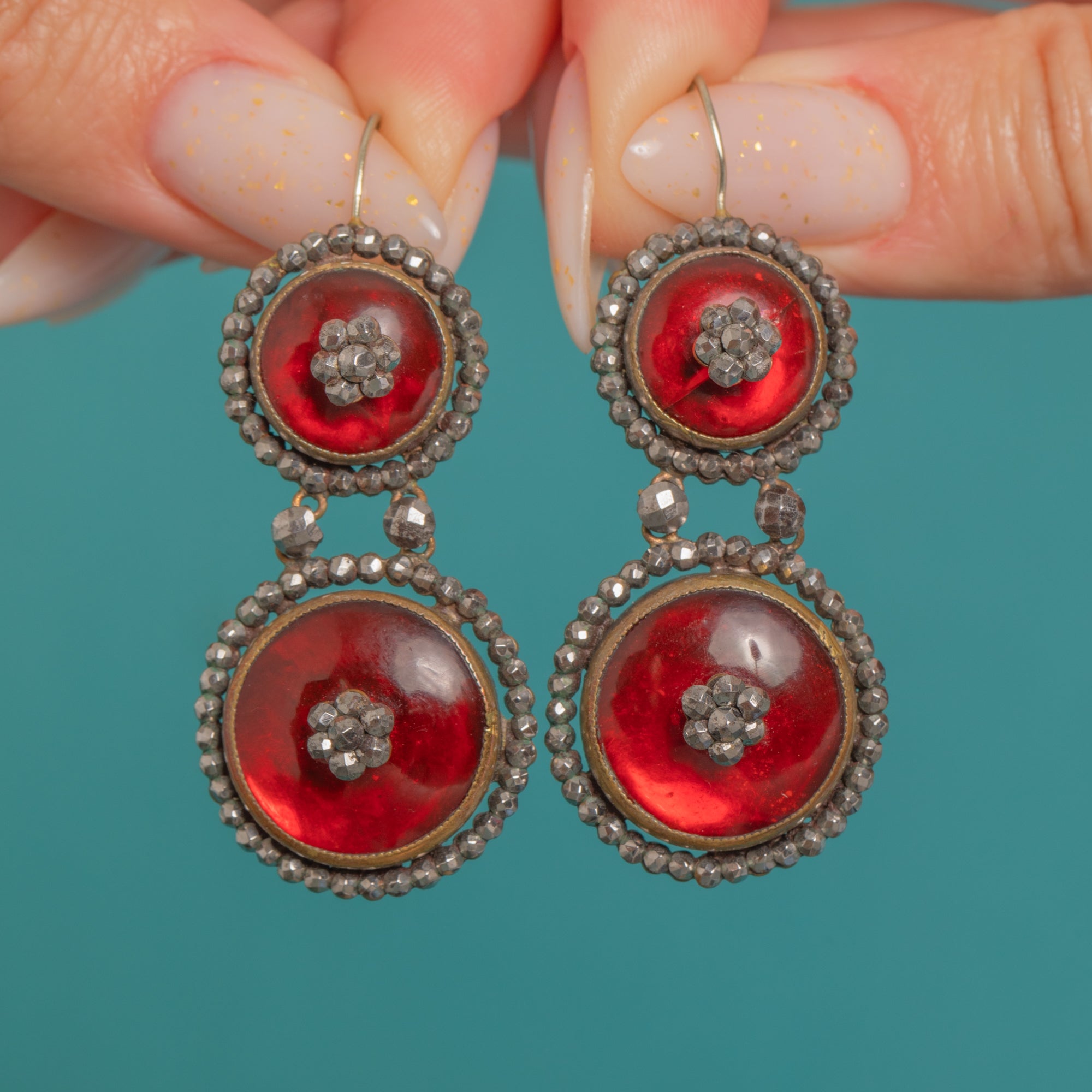 Georgian Queen Anne Red Paste & Cut Steel Earrings