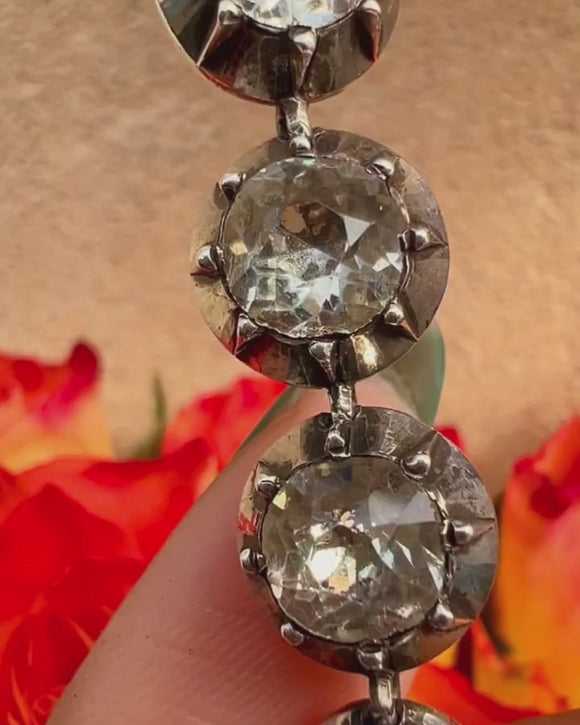 A highly sought-after and collectible piece, this antique Paste necklace is over 200 years old and has a timeless appeal that will delight for generations to come. At 15.5" long, this Georgian necklace will elegantly present the plethora of glimmering facets cross your clavicle ensuring that all eyes are on you!