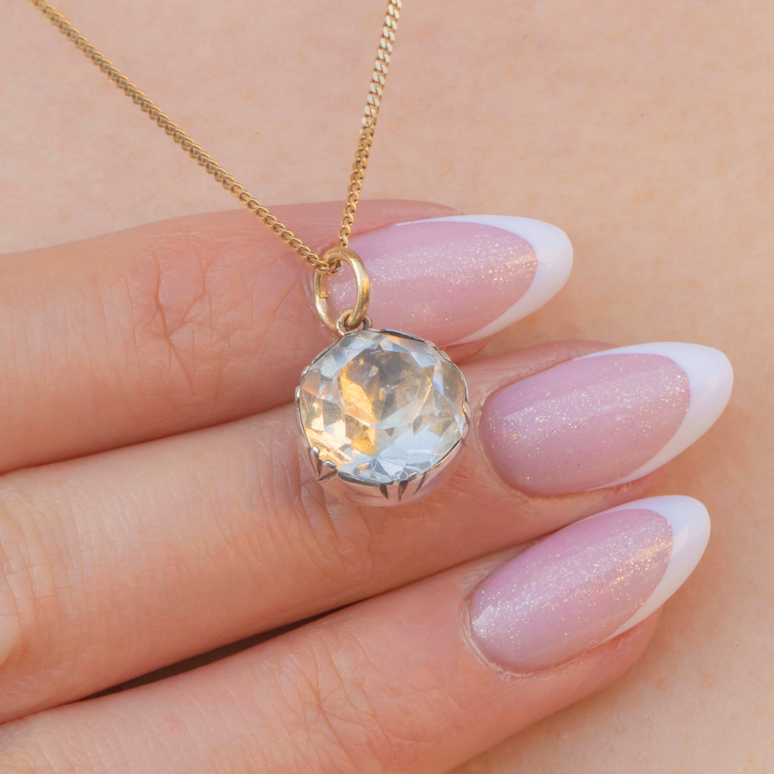 This brilliant Georgian Silver round Paste charm is securely set into a solid Sterling Silver settings and is topped with a Gold jump ring; it would look divine suspended from a fine chain.