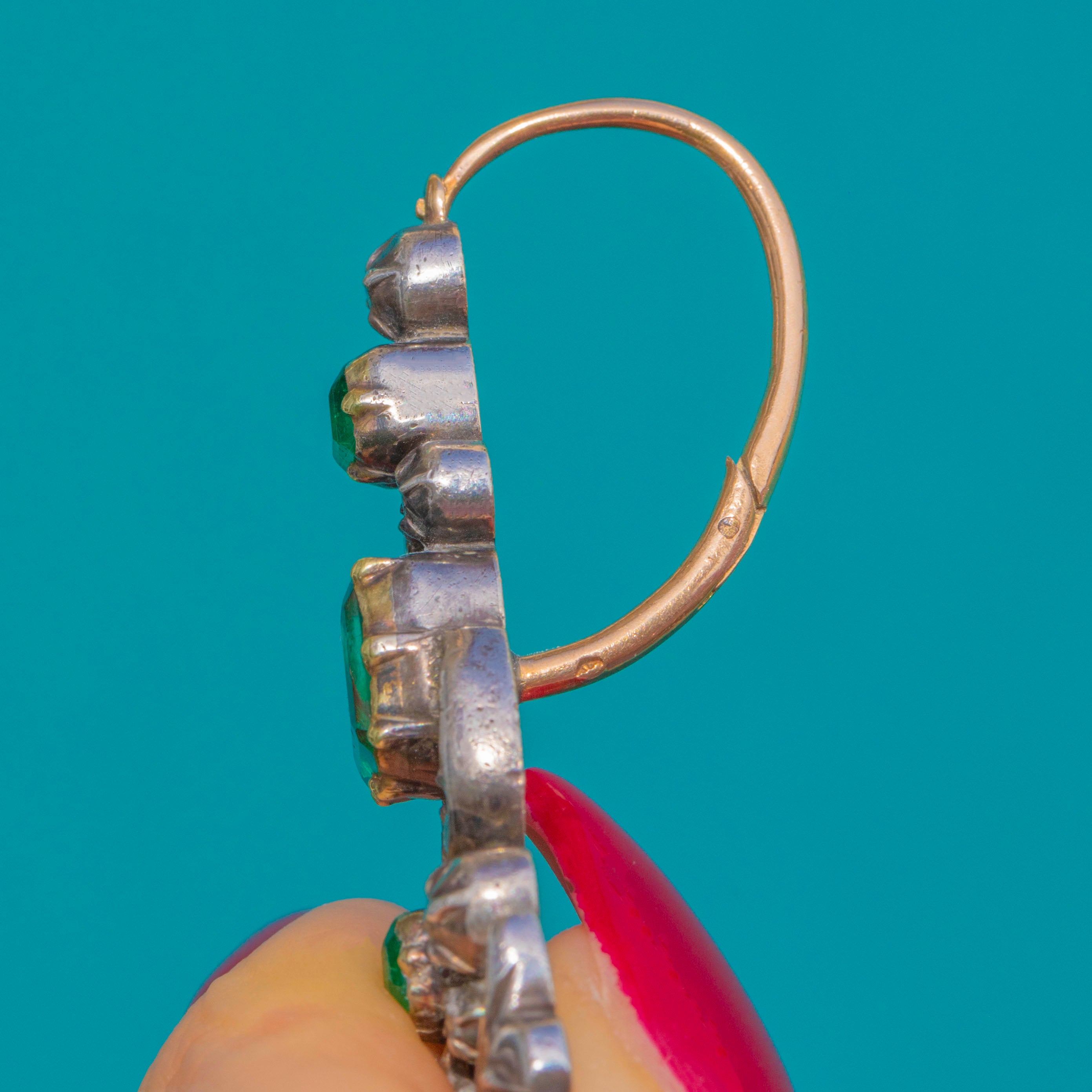 Iberian 18ct Gold & Silver Emerald Rose-Cut Diamond Drop Earrings c.1780-1790