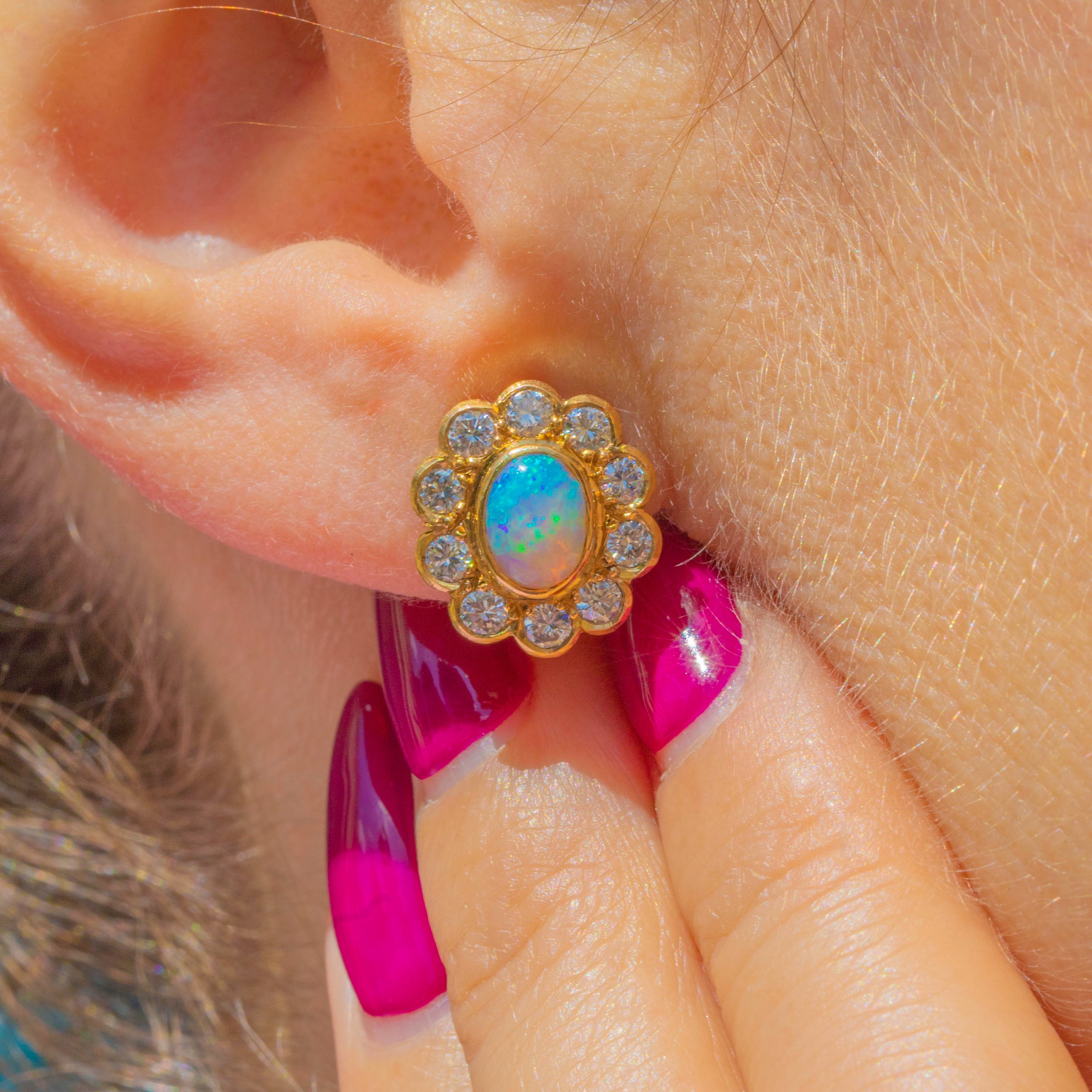 Impressive 18ct Gold Opal Diamond Cluster Stud Earrings, 1.00ct Diamonds