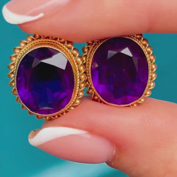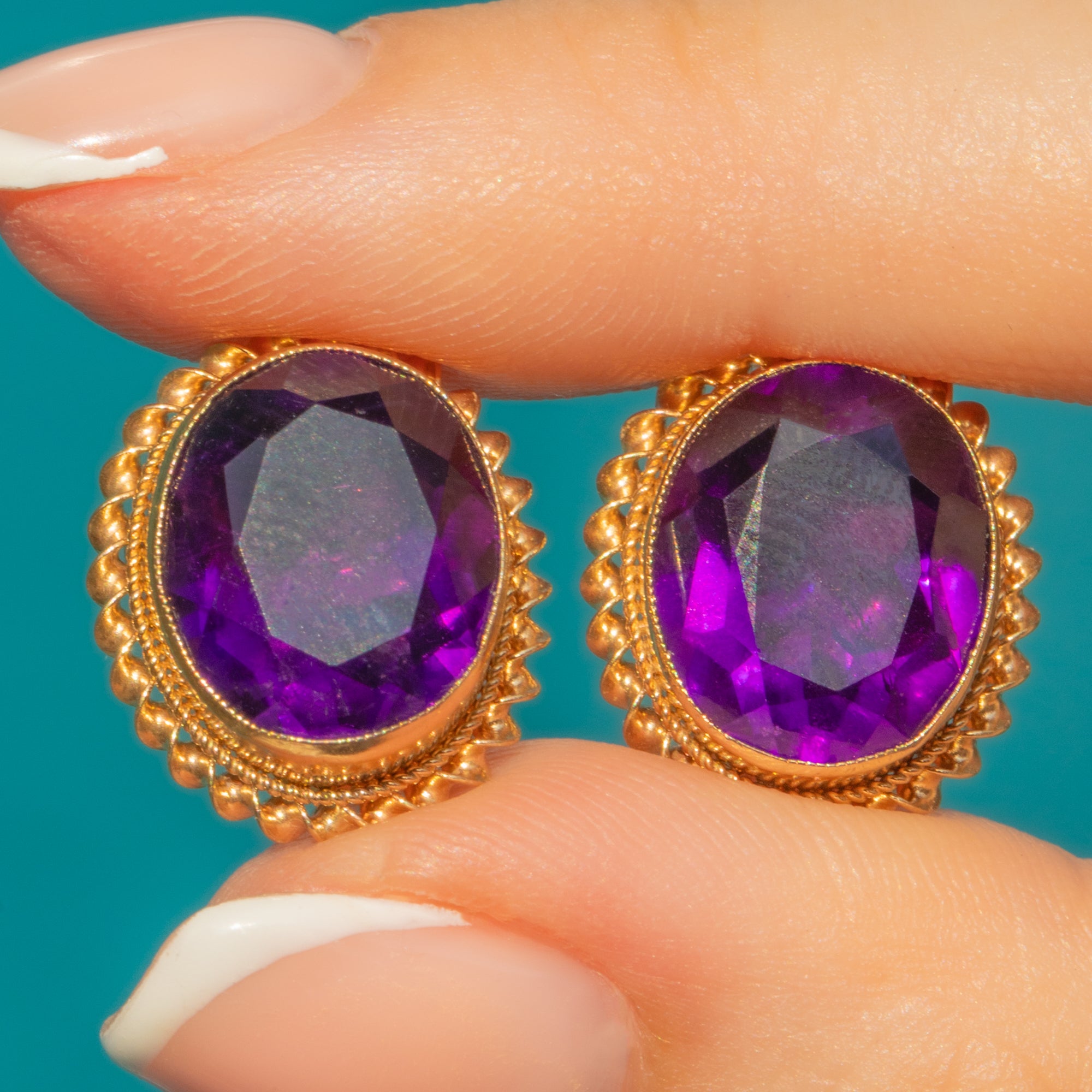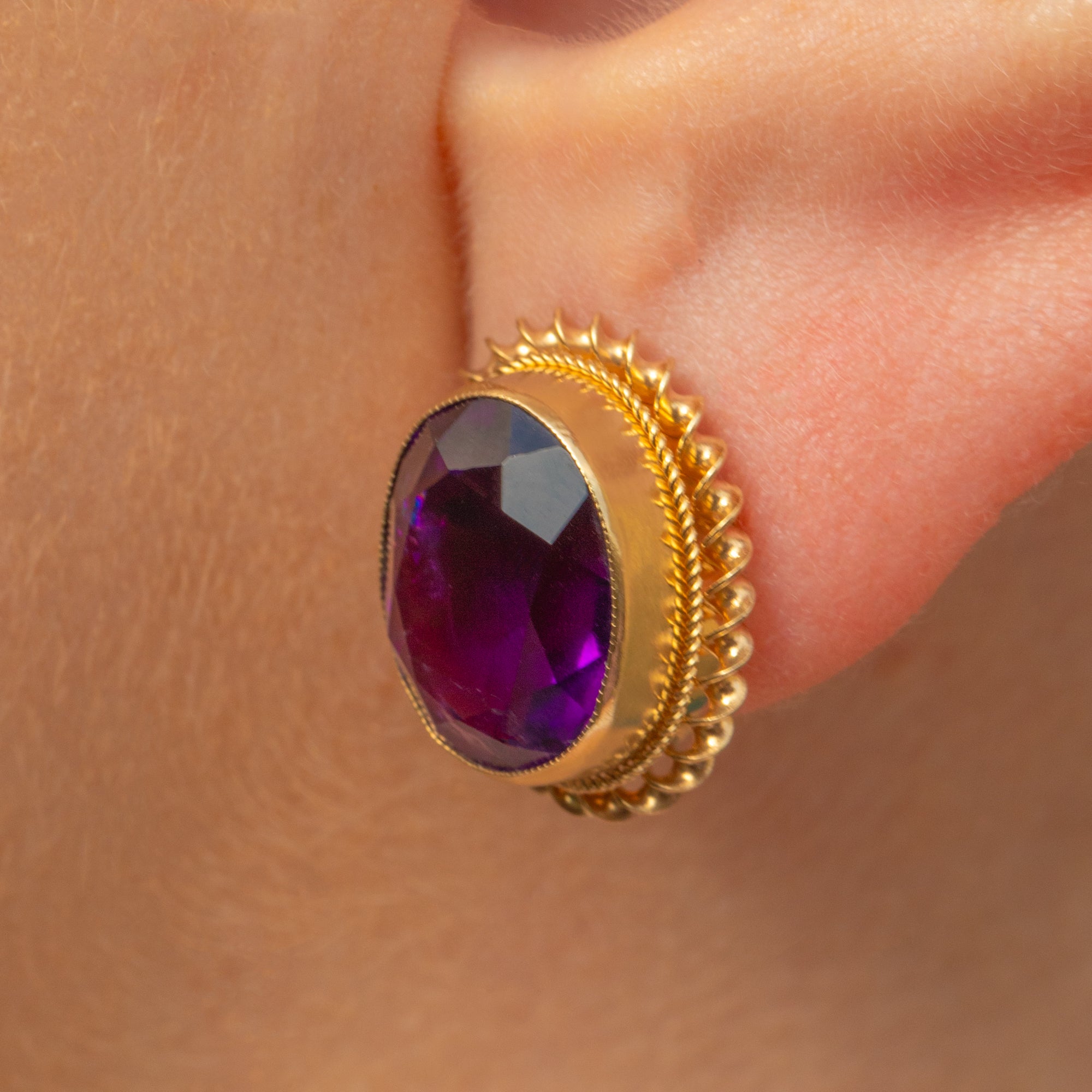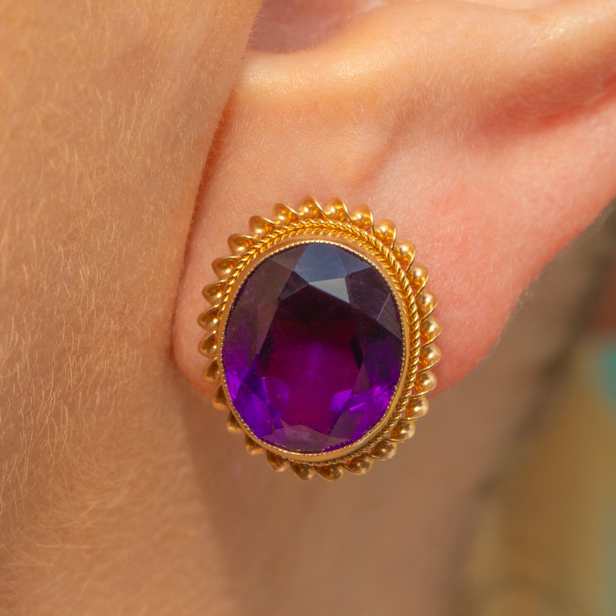 Each Amethyst is framed by intricate twisted rope detailing, crafted from some of the most saturated 9ct Gold we have seen. These light-dancing gemstones aren't just beautiful on the outside, spiritually they symbolise divine purity and are said to enhance enlightenment. These factors make them the perfect vintage Gold stud earrings to keep snug in your ear lobes day to day, and keep close contact with your skin at all times!