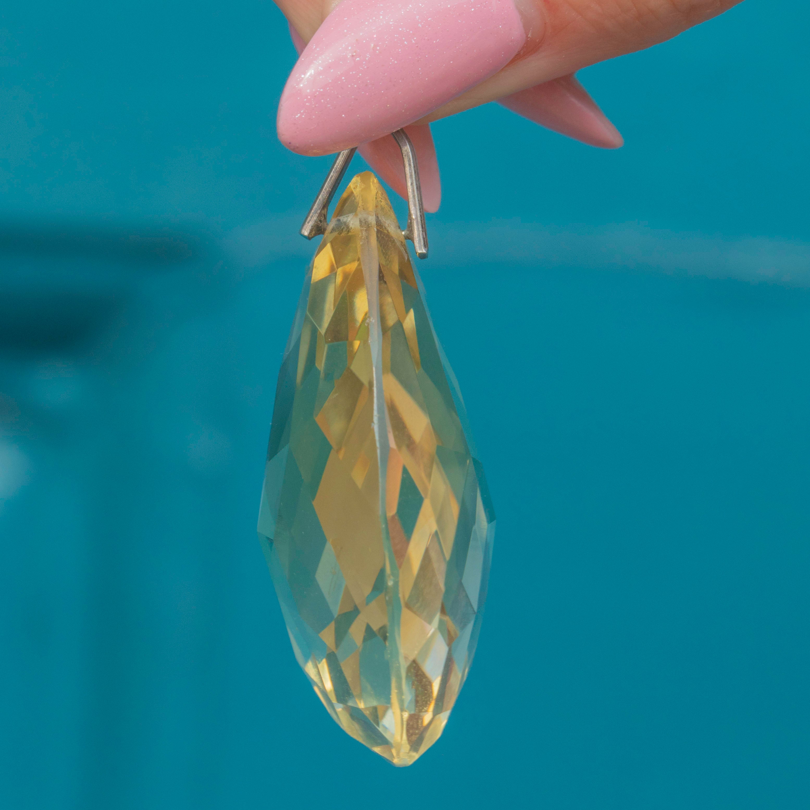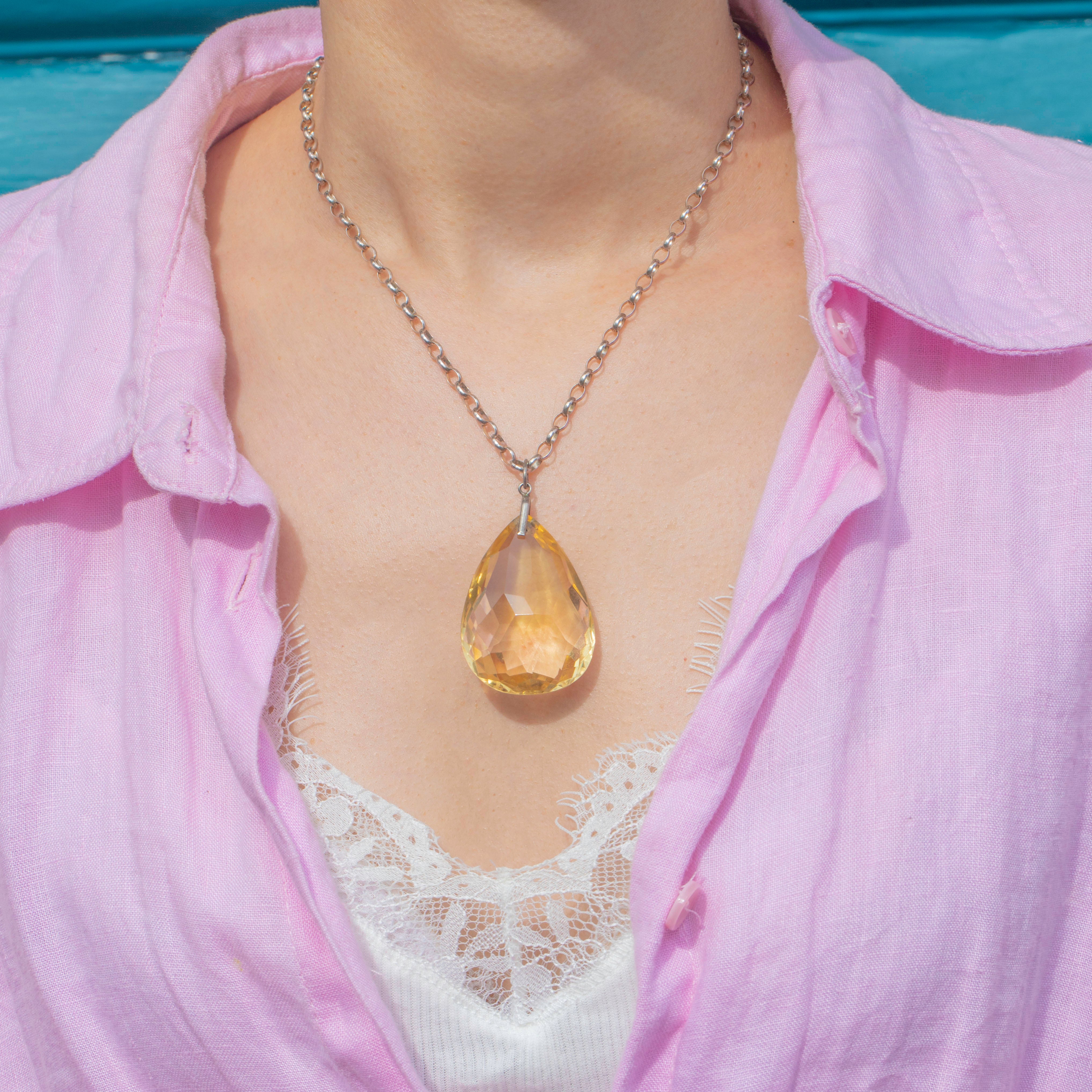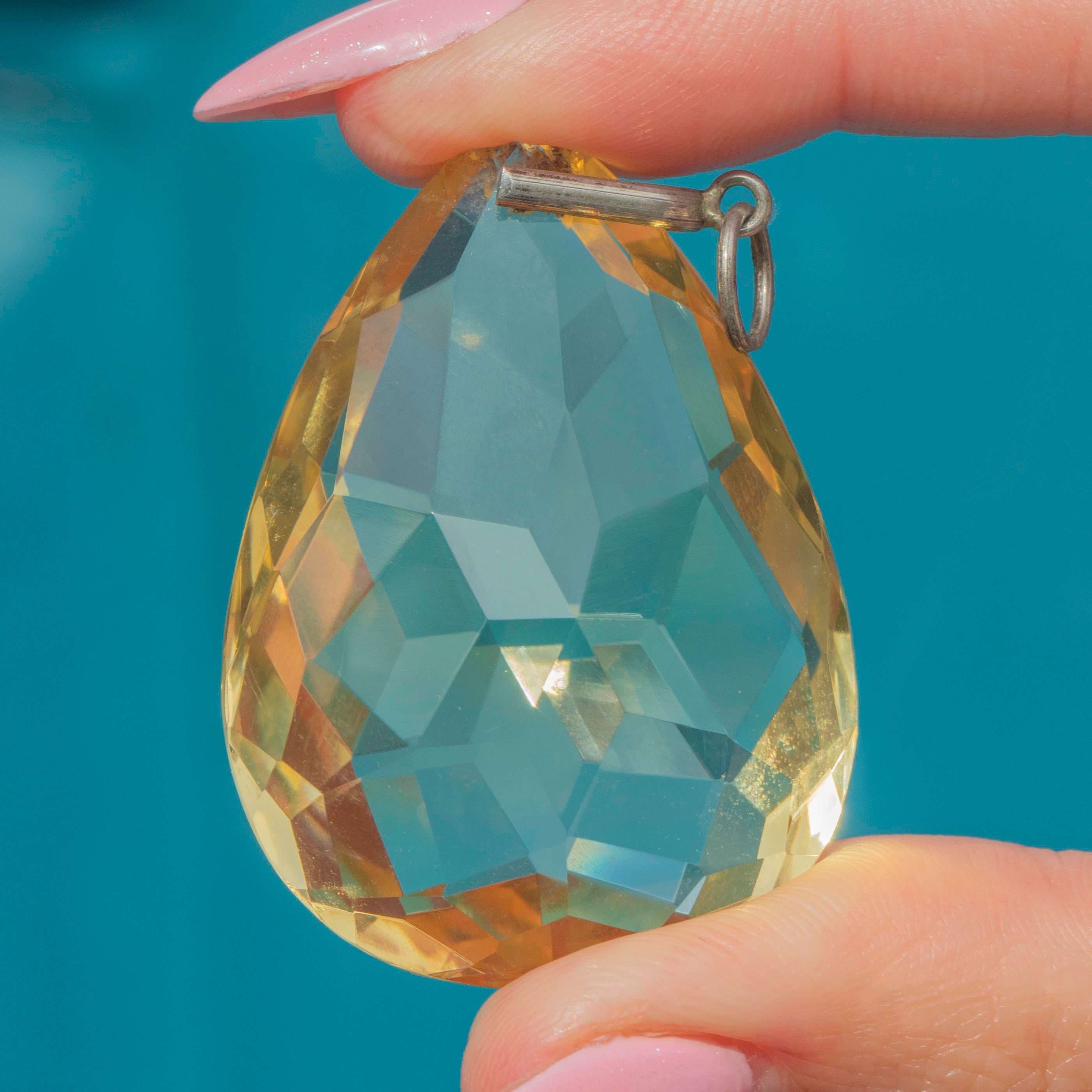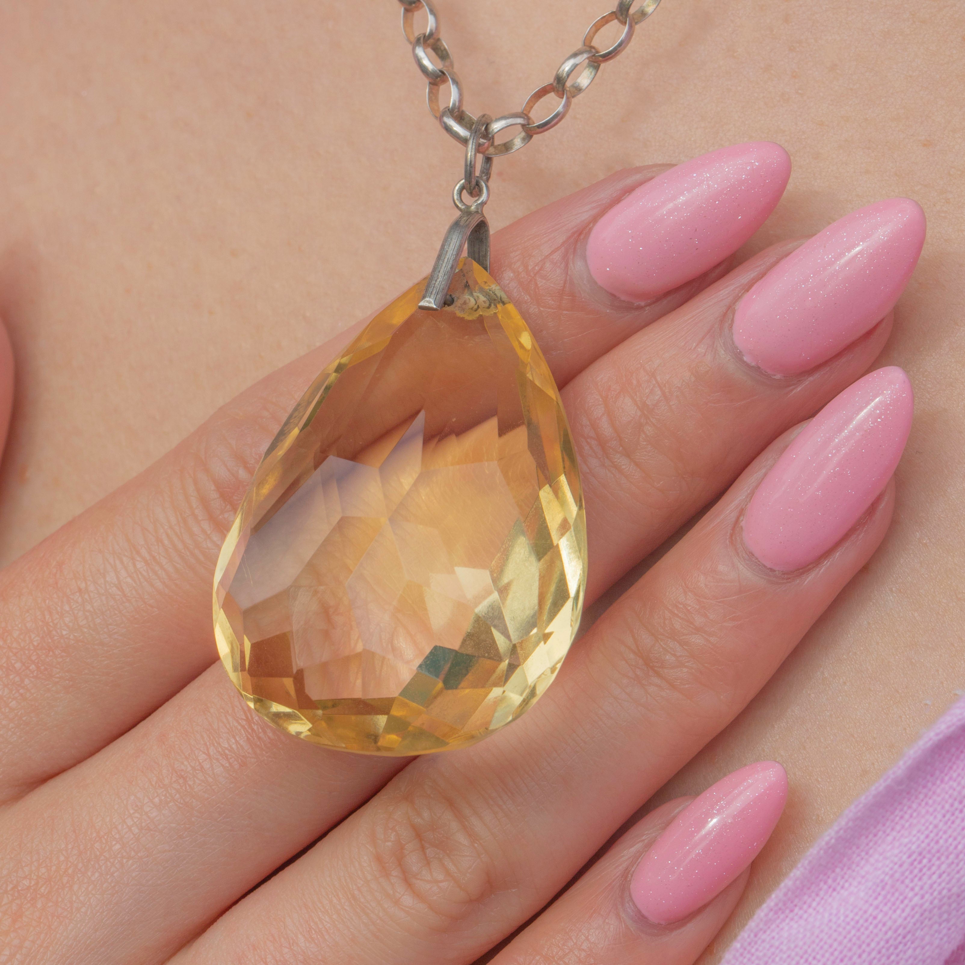This large antique Silver Citrine pear drop pendant is an absolute beauty to behold; she's highly saturated and will demand attention once suspended from a chain across your décolletage!
