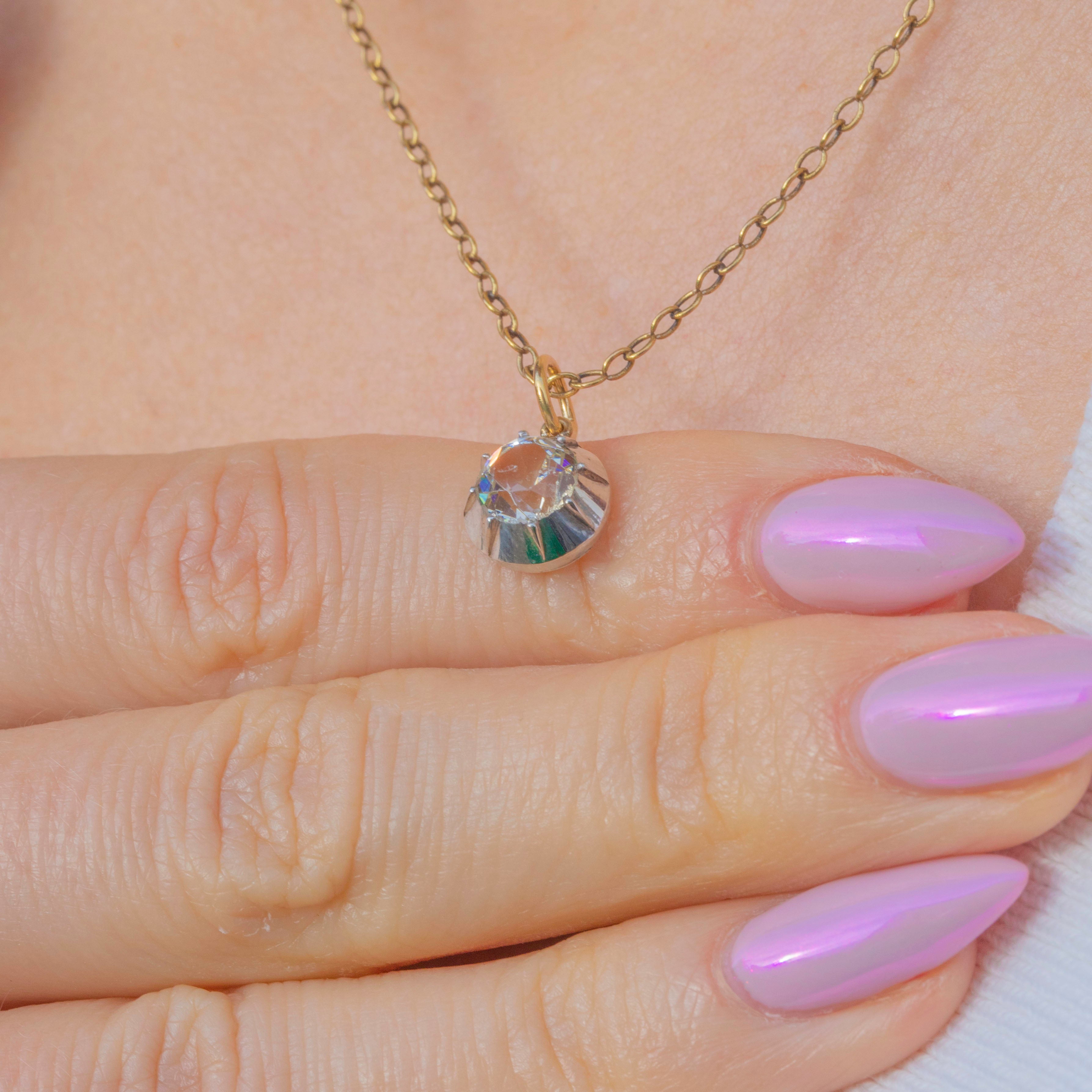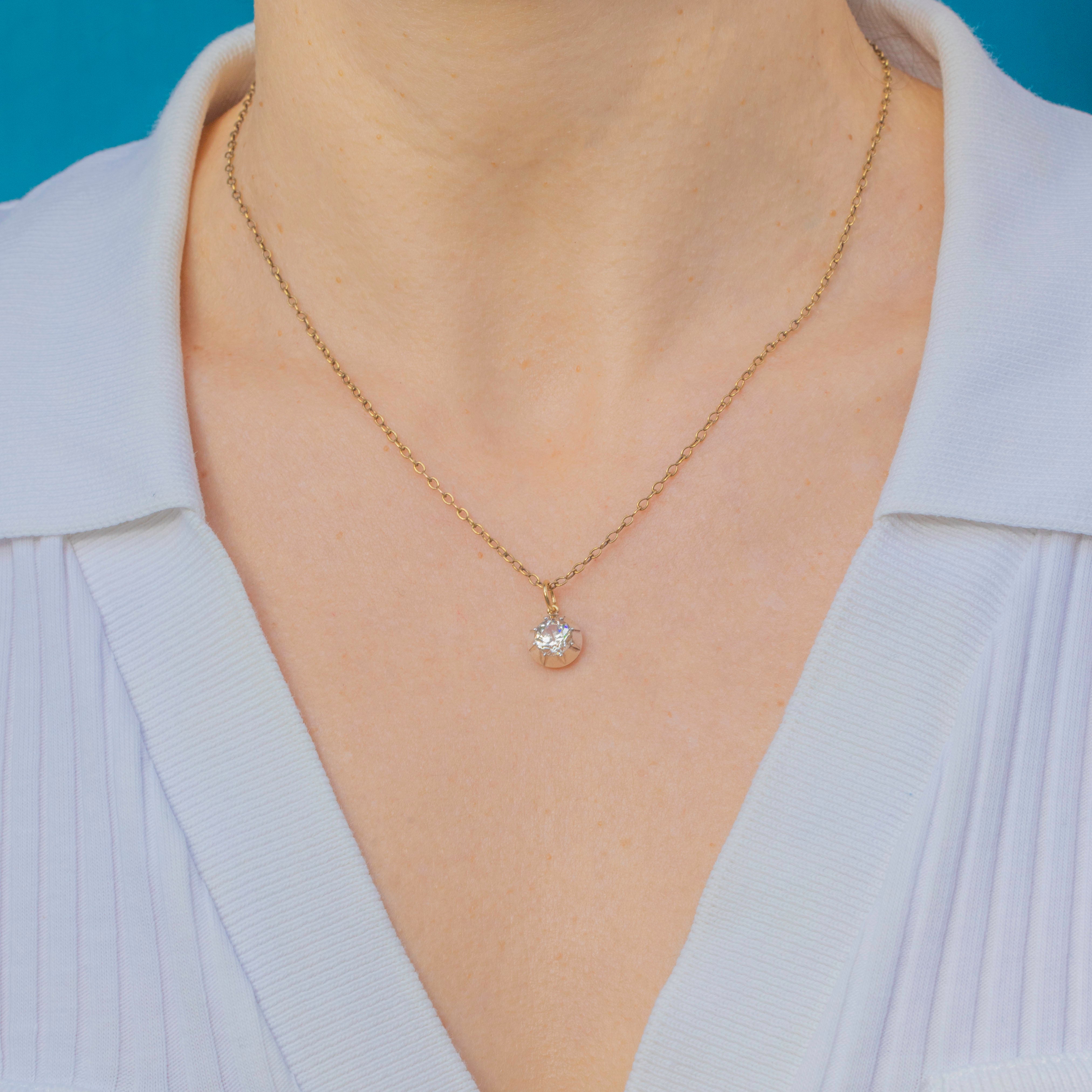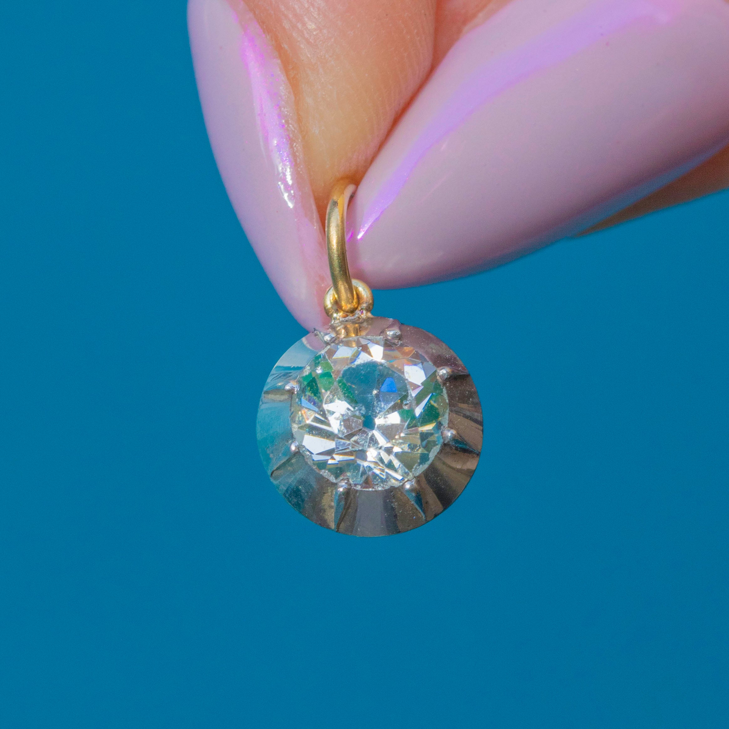 A large and lively Georgian charm crafted in a two-tone mix of Silver and 18ct Gold, set with a brilliant white Paste stone. The faceted Paste sits in a brightened fluted cup, giving fabulous sparkle and a convincing “diamond” look with classic 18th–early 19th-century character.