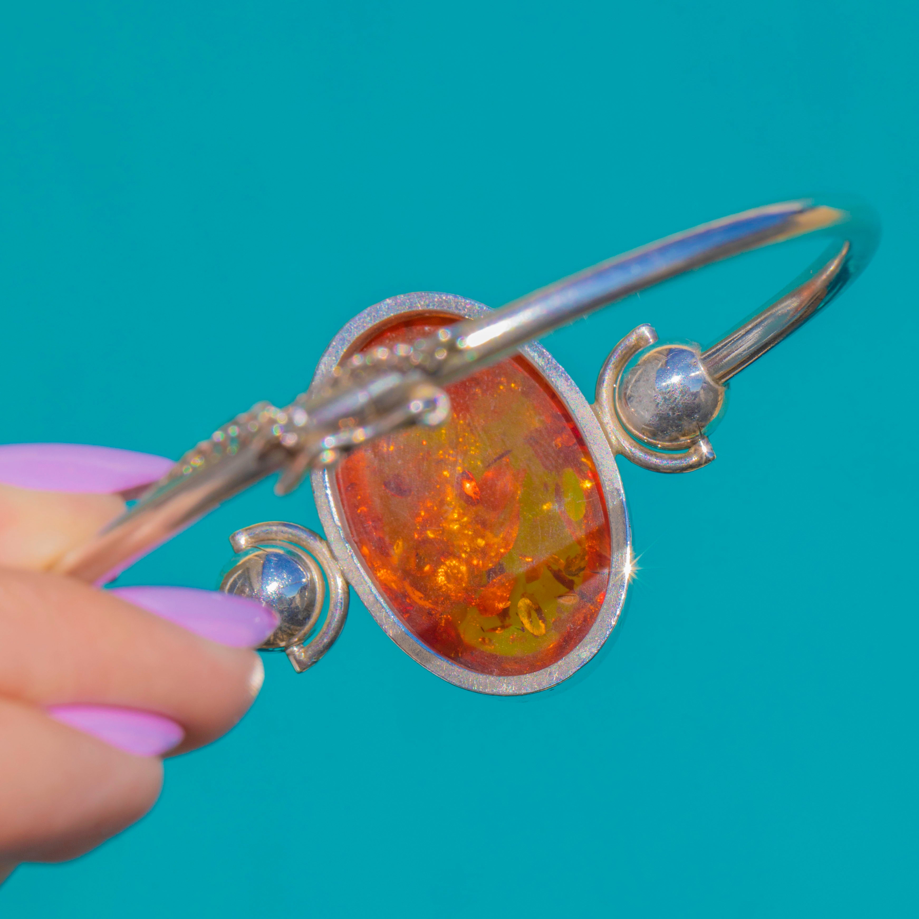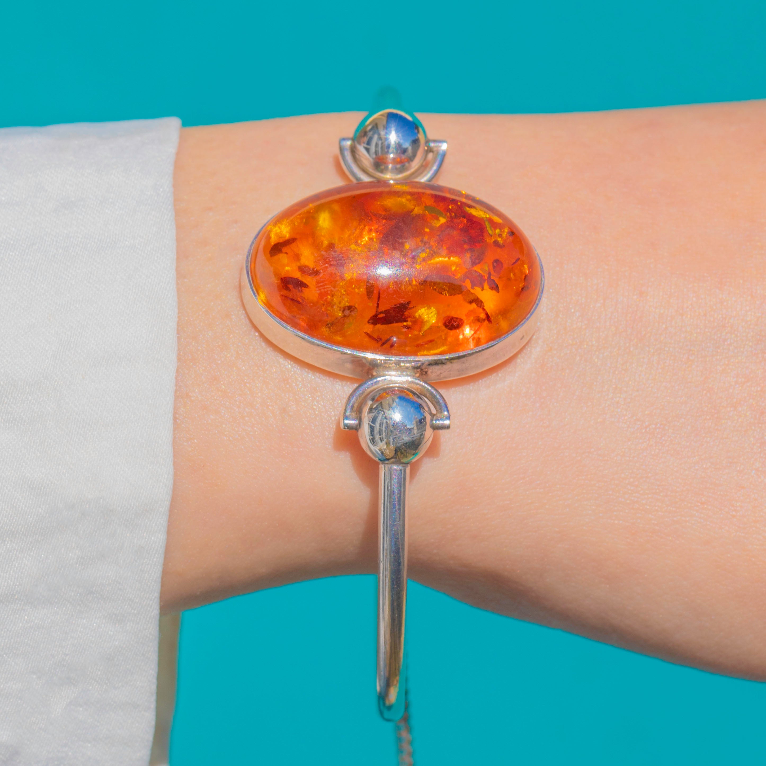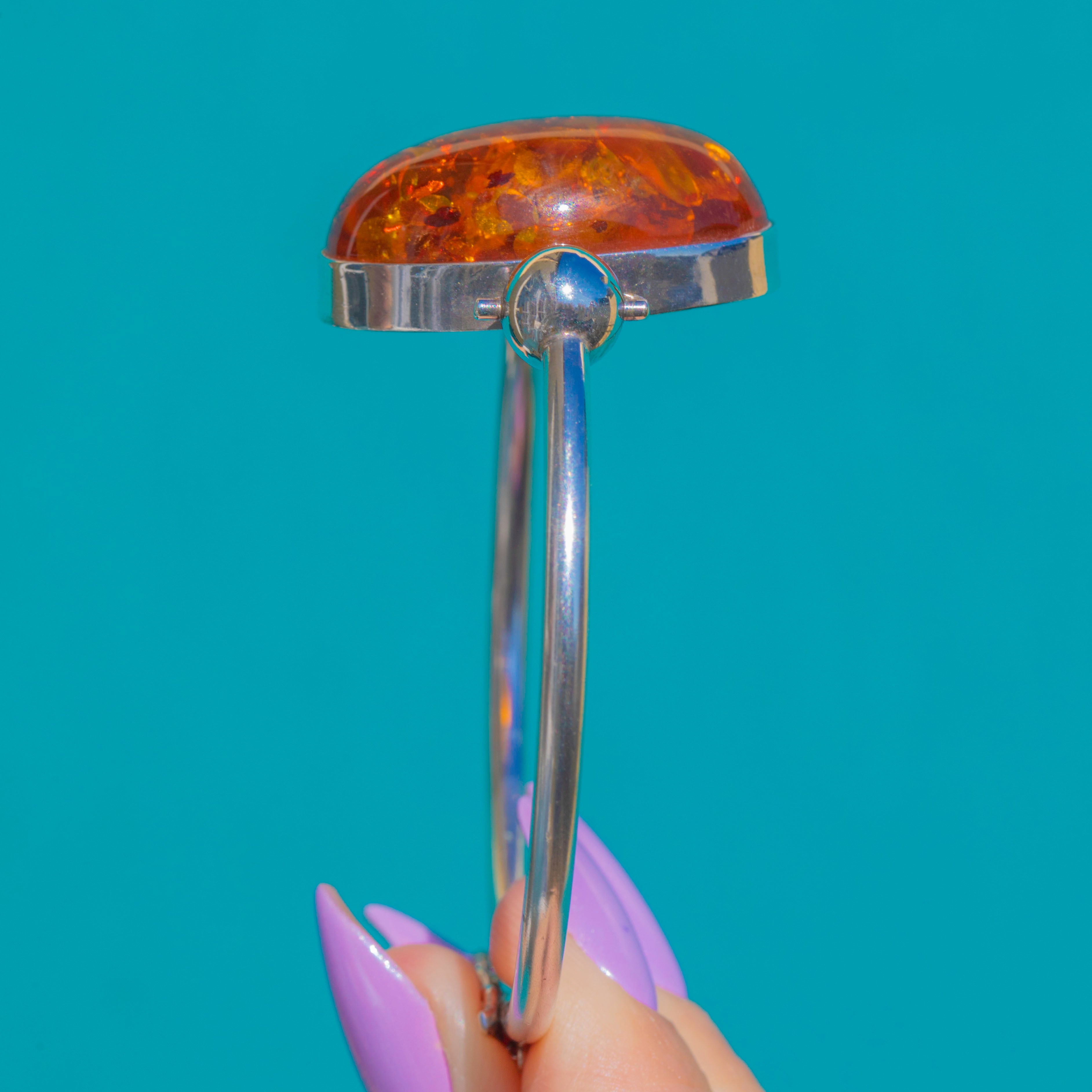 Large Sterling Silver Baltic Amber Cabochon Bangle