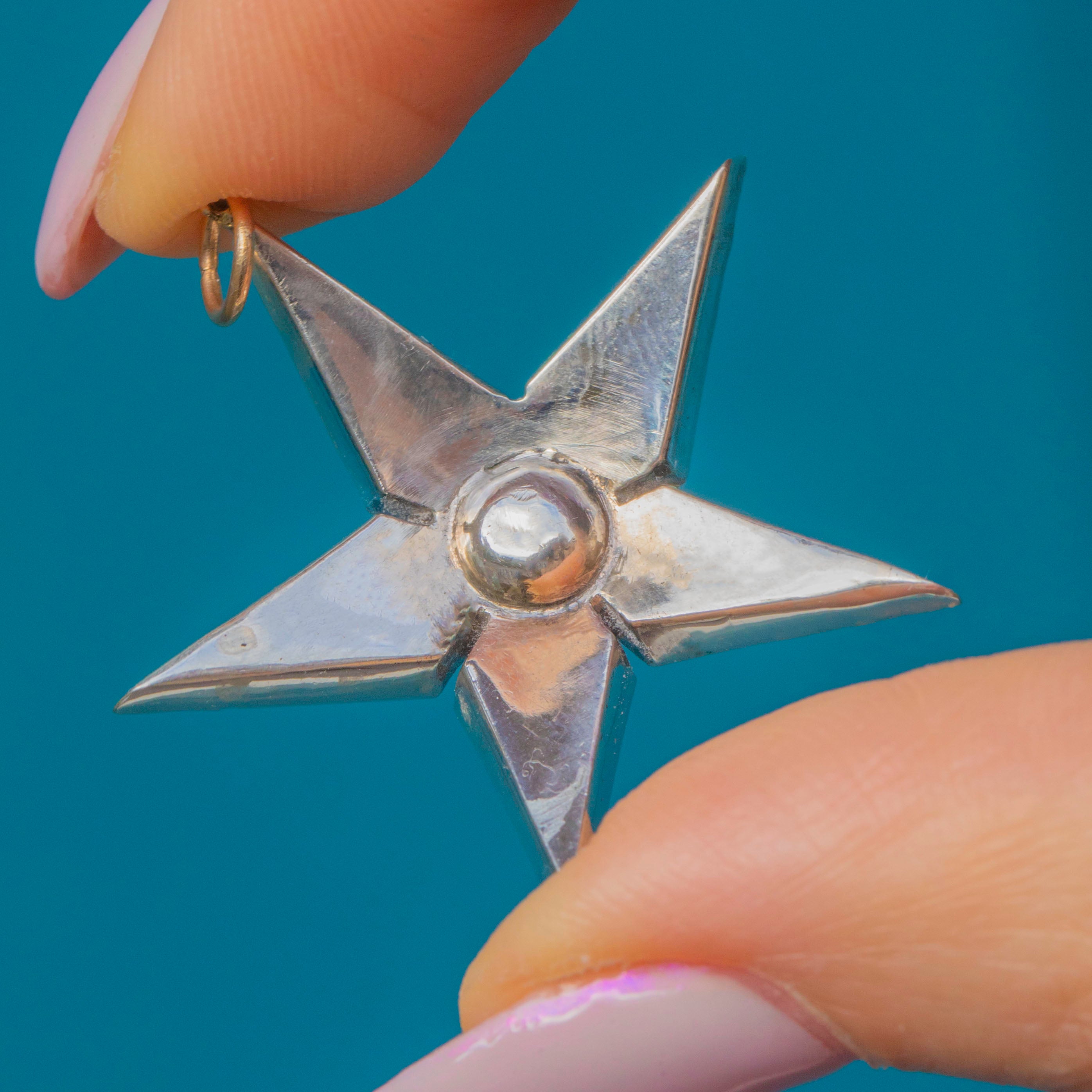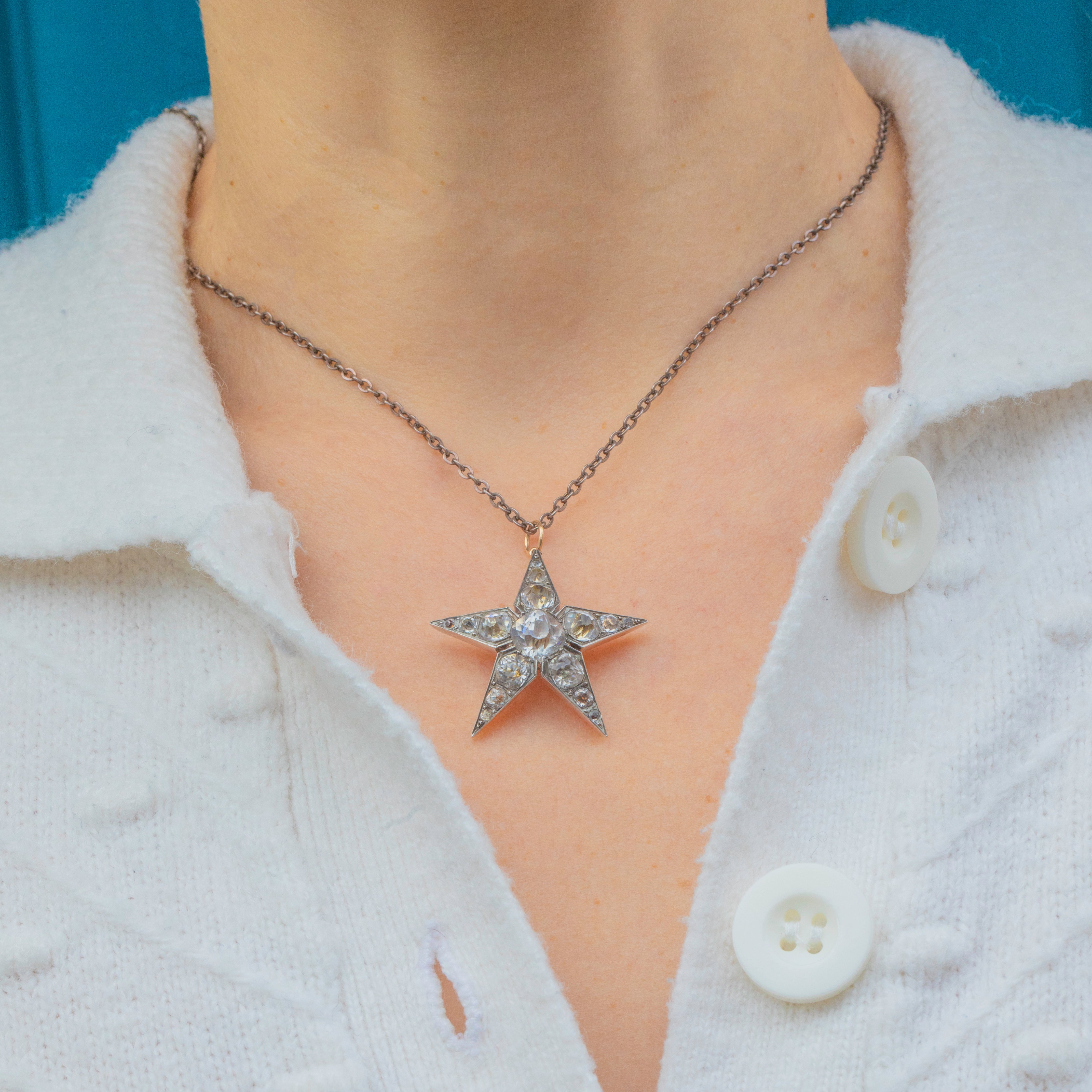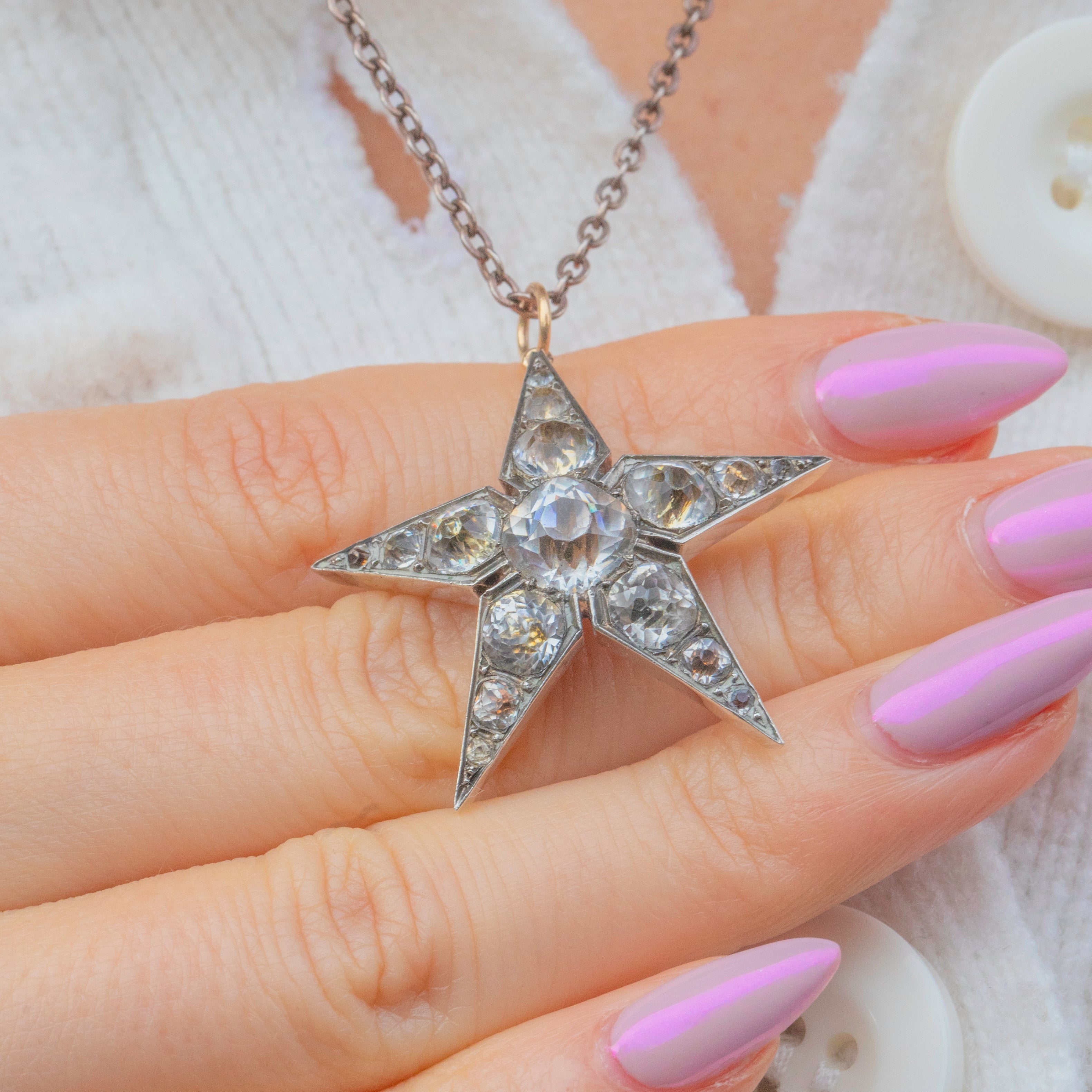 A spectacular large Victorian star pendant, sparkling with beautifully graduated Paste stones. Crafted in Sterling Silver with a 9ct Gold back and jump ring, this piece radiates antique glamour and celestial charm.