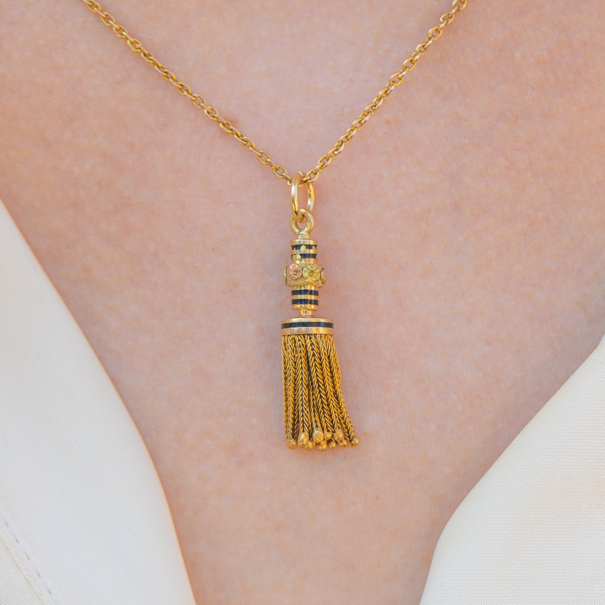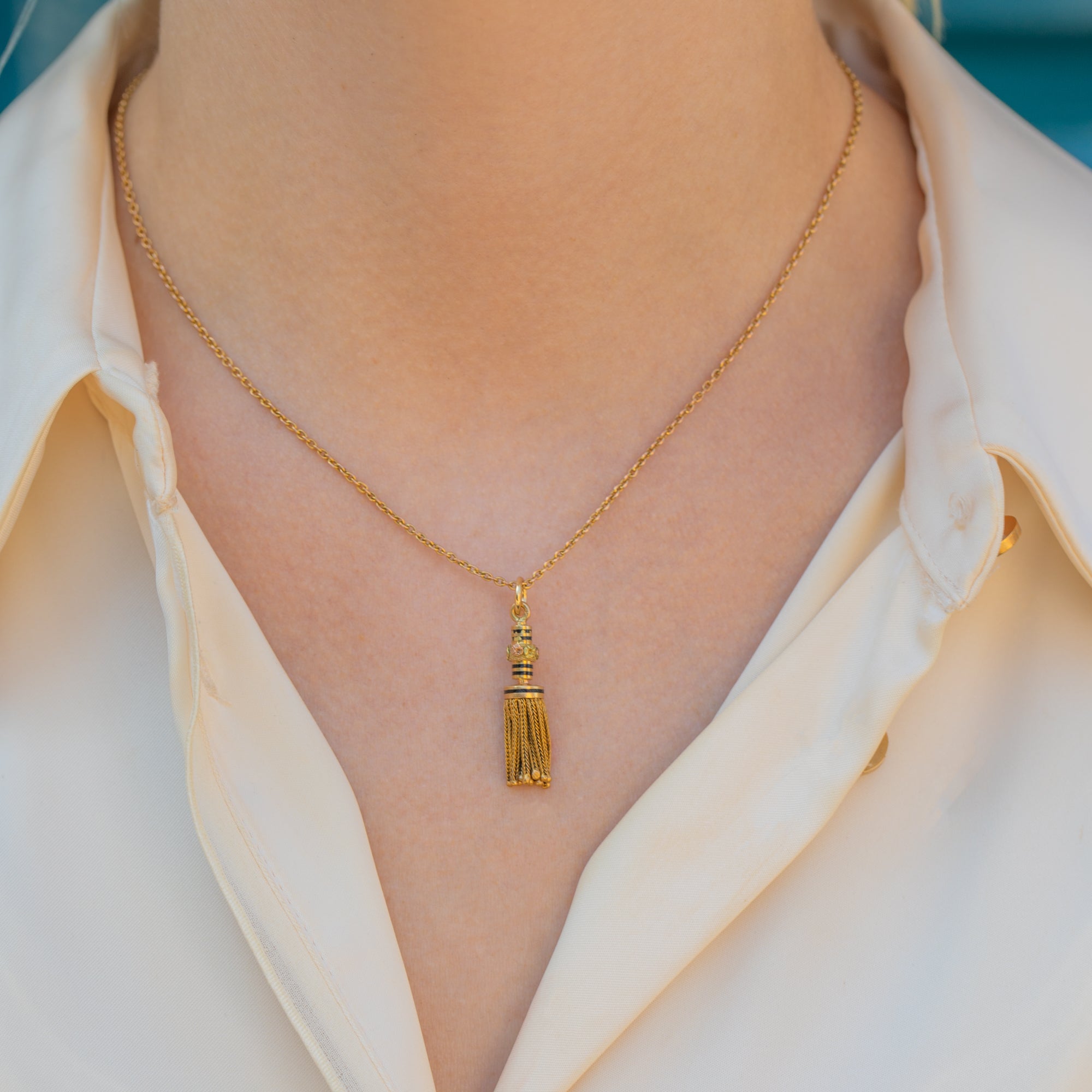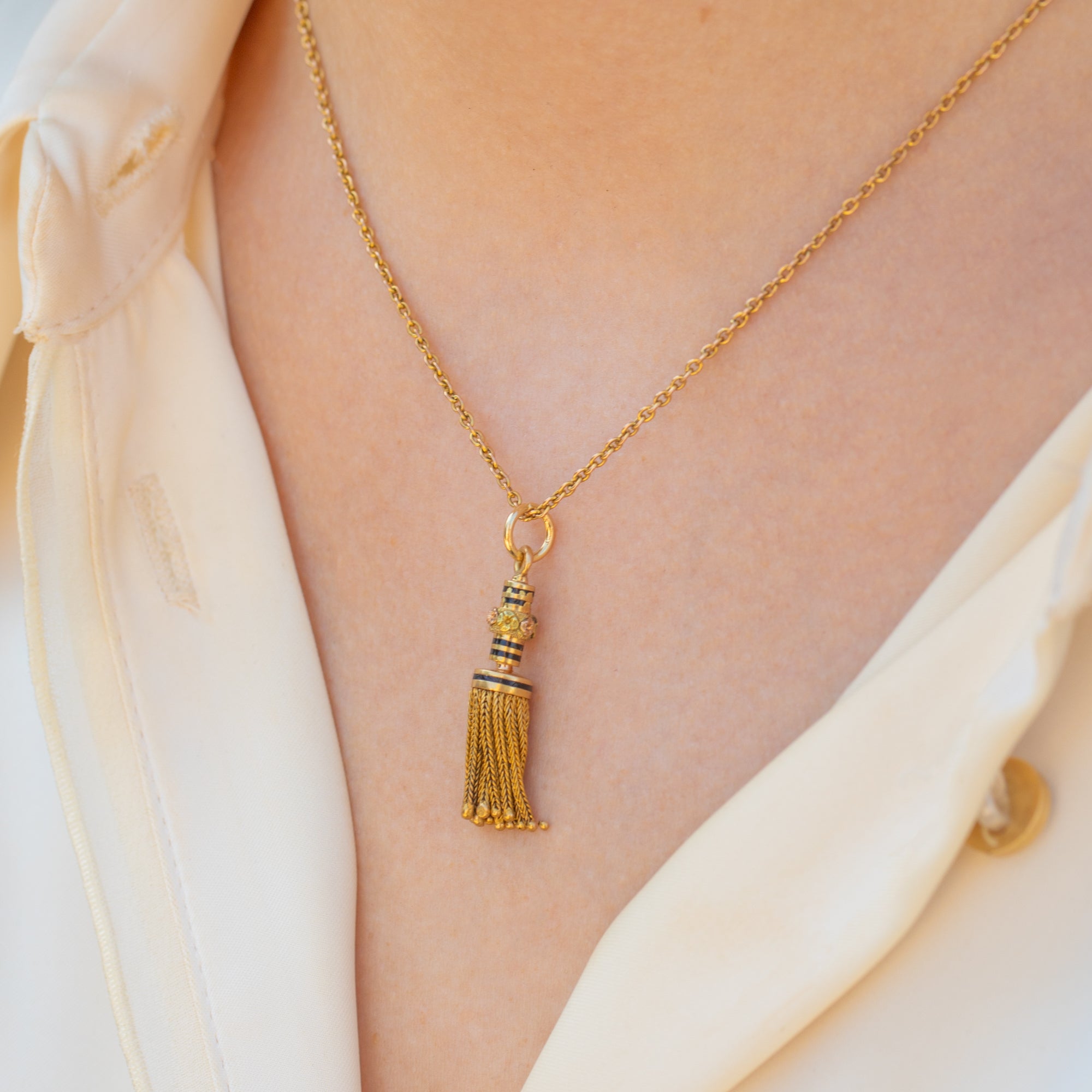 Napoleon III French 18ct Gold & Enamel Tassel Pendant