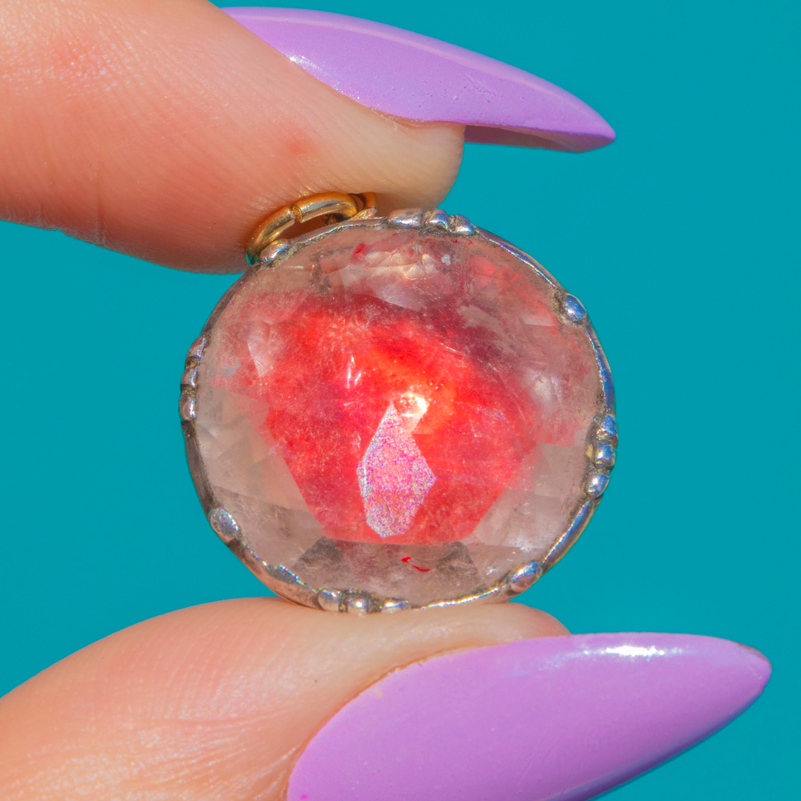 MATERIALS: Tests as Sterling Silver, 18ct Gold jump ring, Pink Foiled Paste.