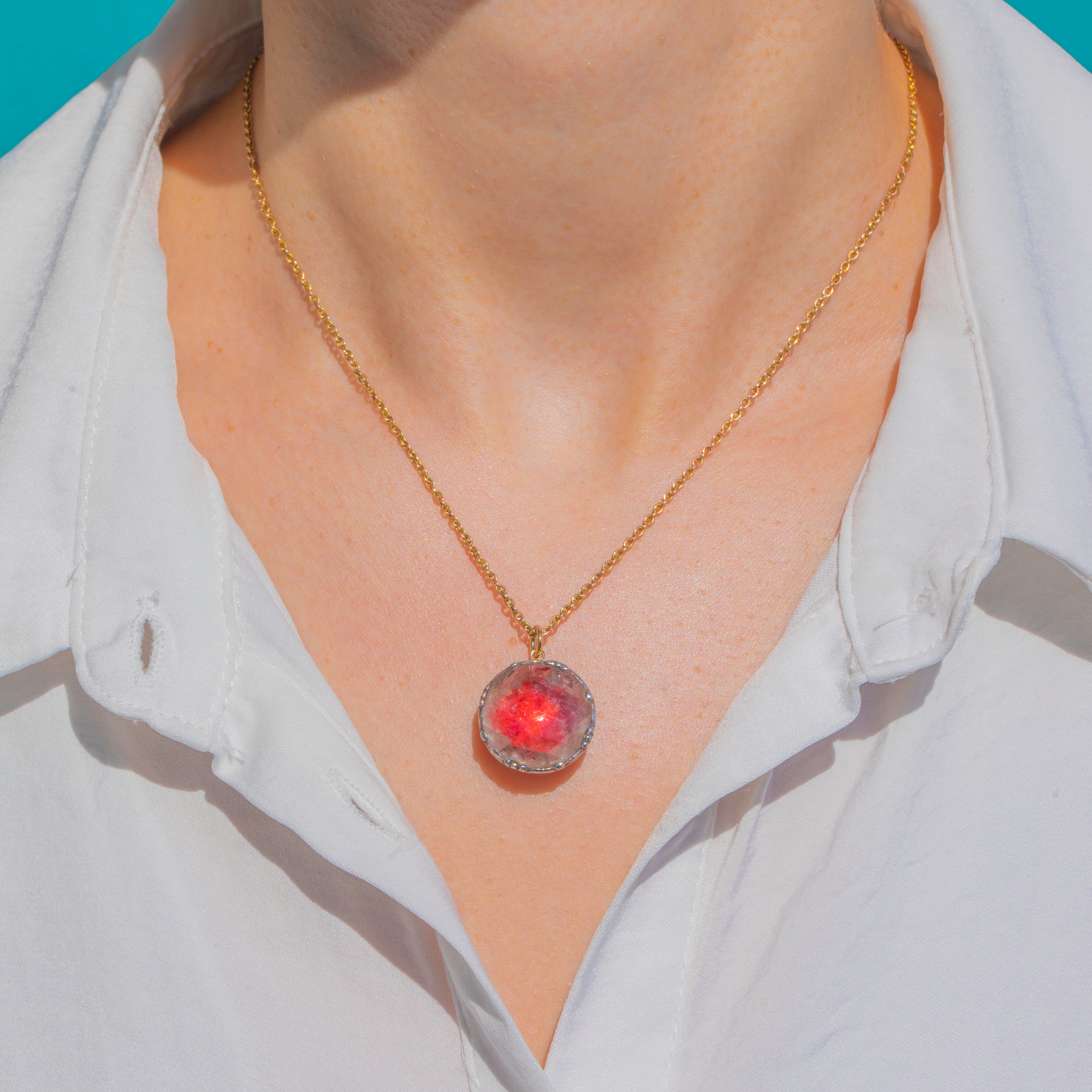 Foiled to give the piece a hot pink hue, the Paste shimmers with every turn, complemented by the rich accent of an 18ct Gold jump ring—ready to thread onto your favourite chain. Elegant, feminine and wonderfully characterful, it’s a miniature jewel of the Georgian era to treasure.