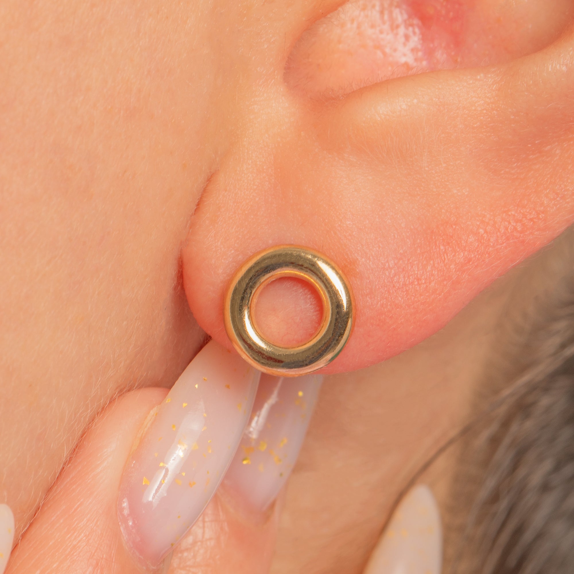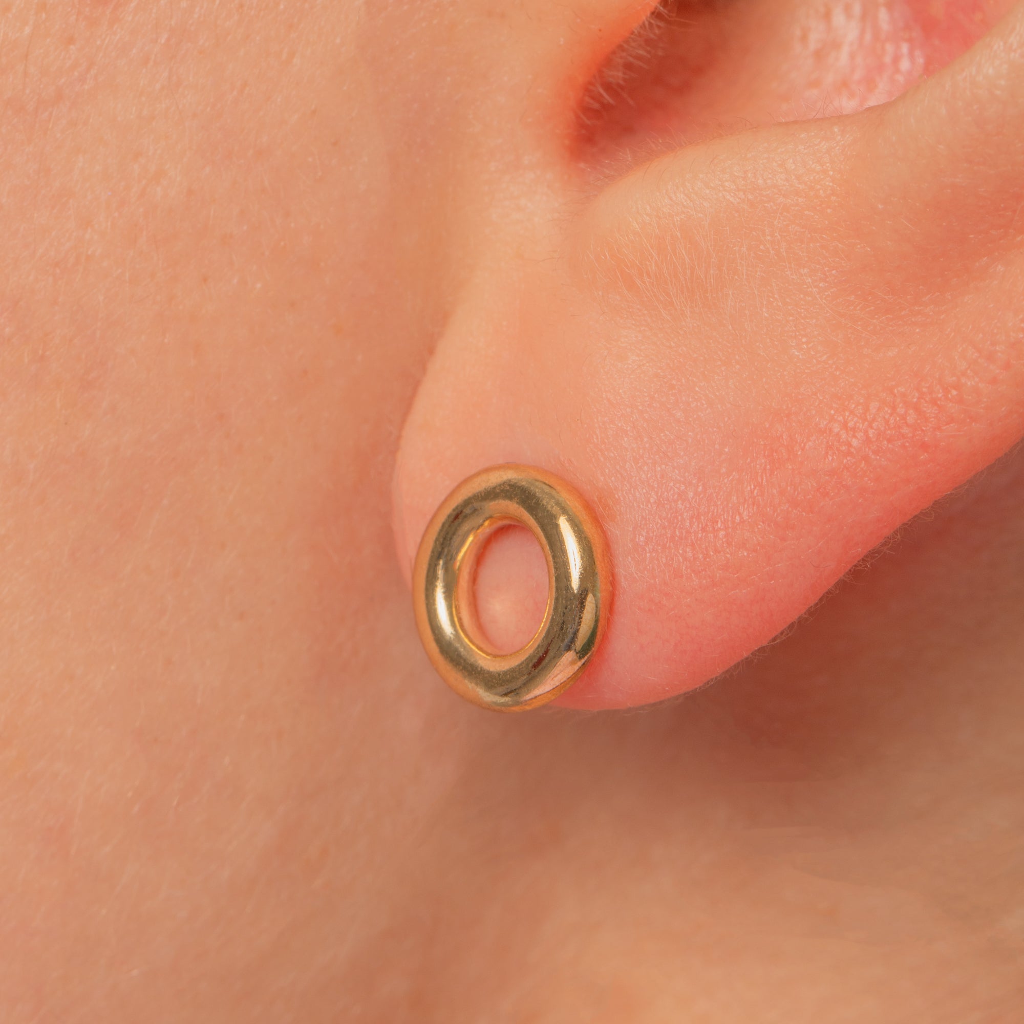 Sleek, simple, and effortlessly polished, these 9ct Gold circle studs bring a minimalist touch to any jewellery wardrobe. The open “donut” silhouette sits flat to the lobe with a glossy high-polish finish that catches the light beautifully—perfect for everyday wear and easy to elevate for evening.