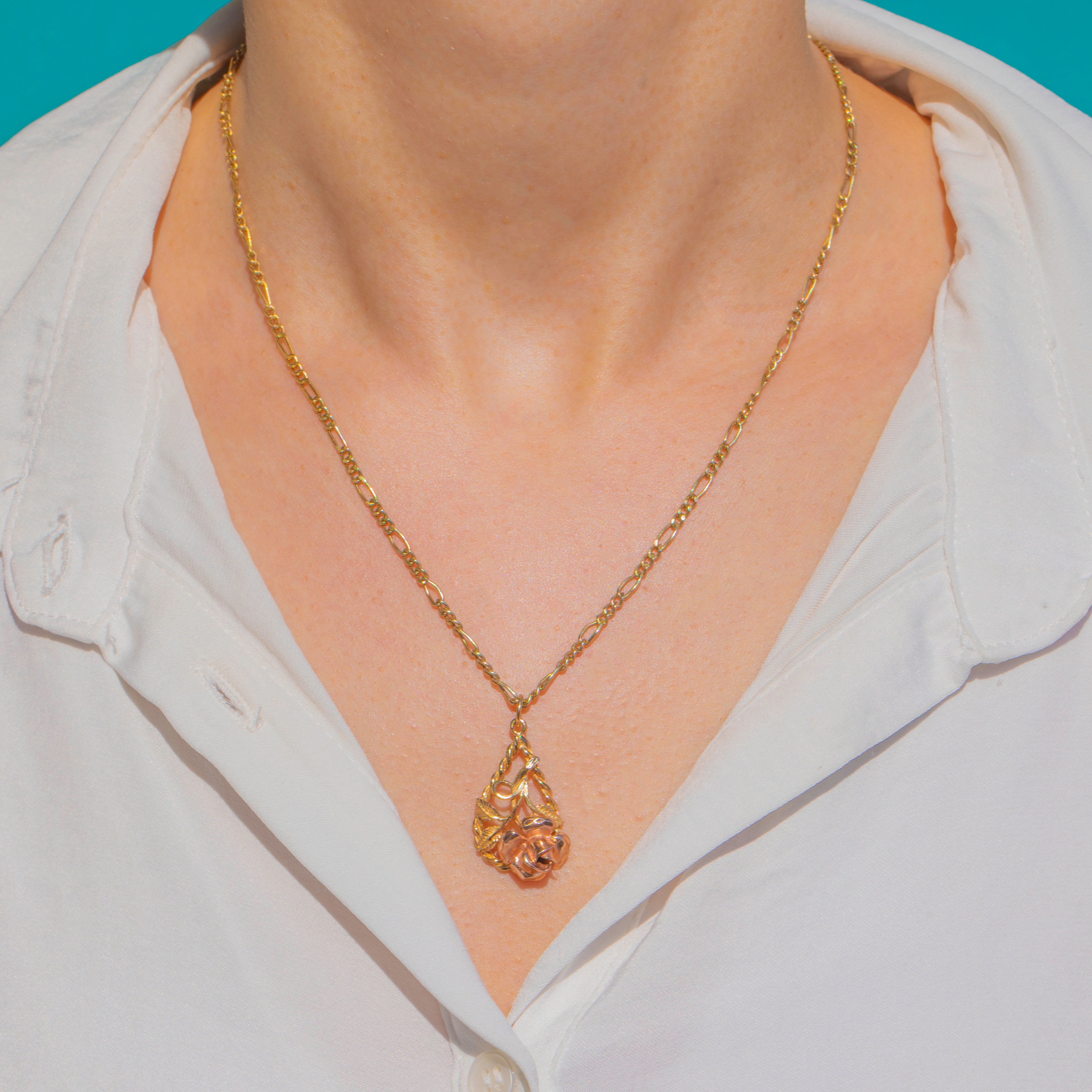 Solid 9ct Gold Rose Motif Pendant, 9ct Yellow & 9ct Rose Gold Item added