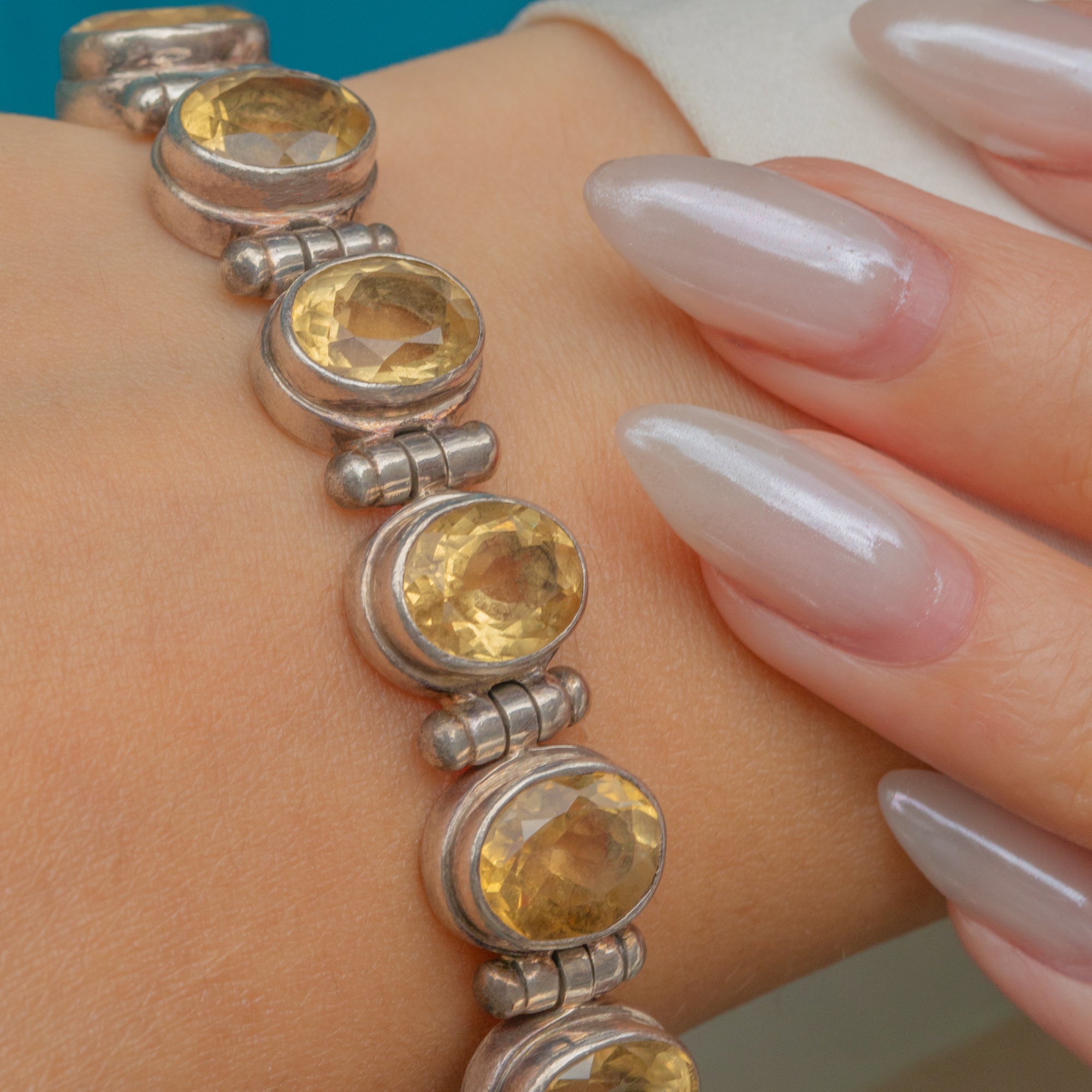 EXCELLENT. An excellent Sterling Silver Citrine bracelet. The Citrines are secure and they have a gorgeous colour to them. The bracelet comes with a full set of hallmarks and very little wear to note.