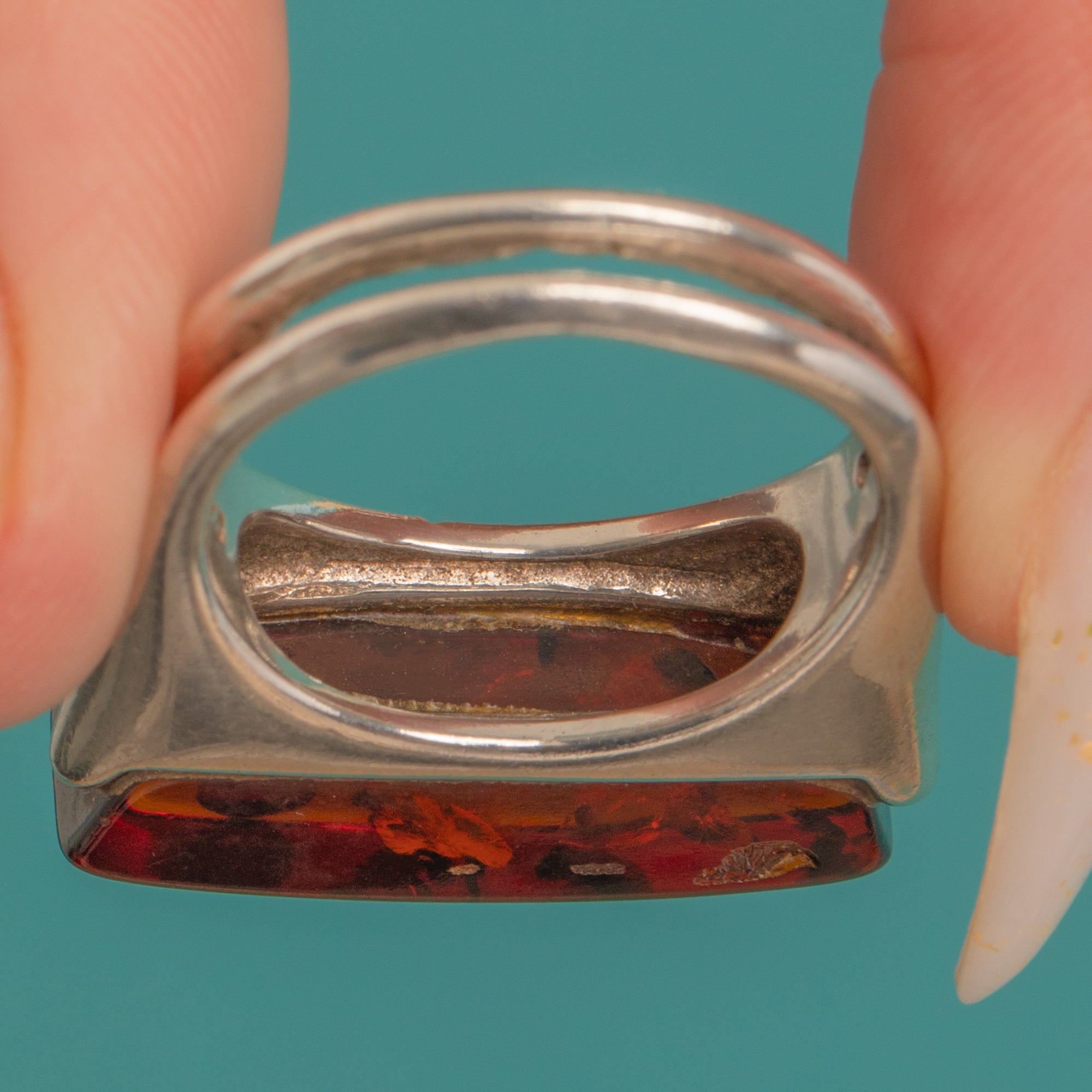 Sterling Silver Modernist Brutalist Amber Ring