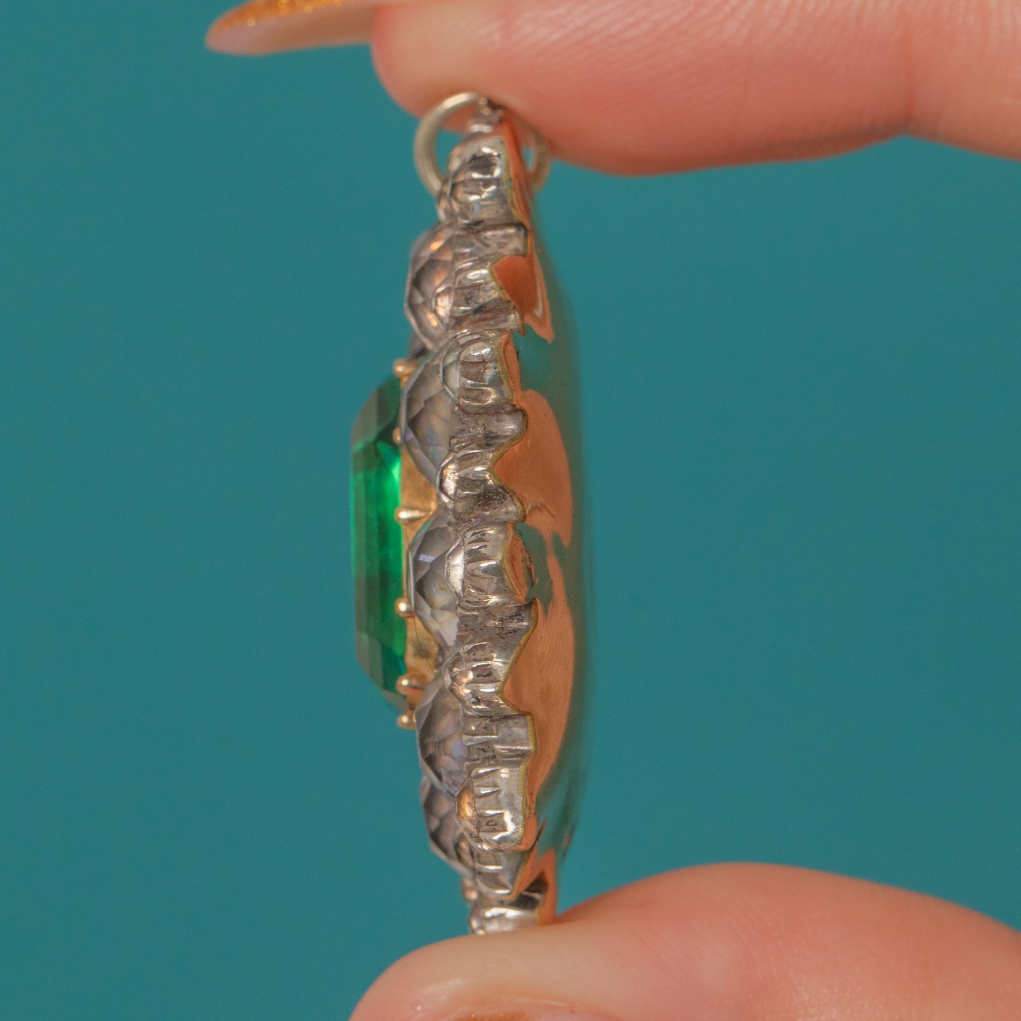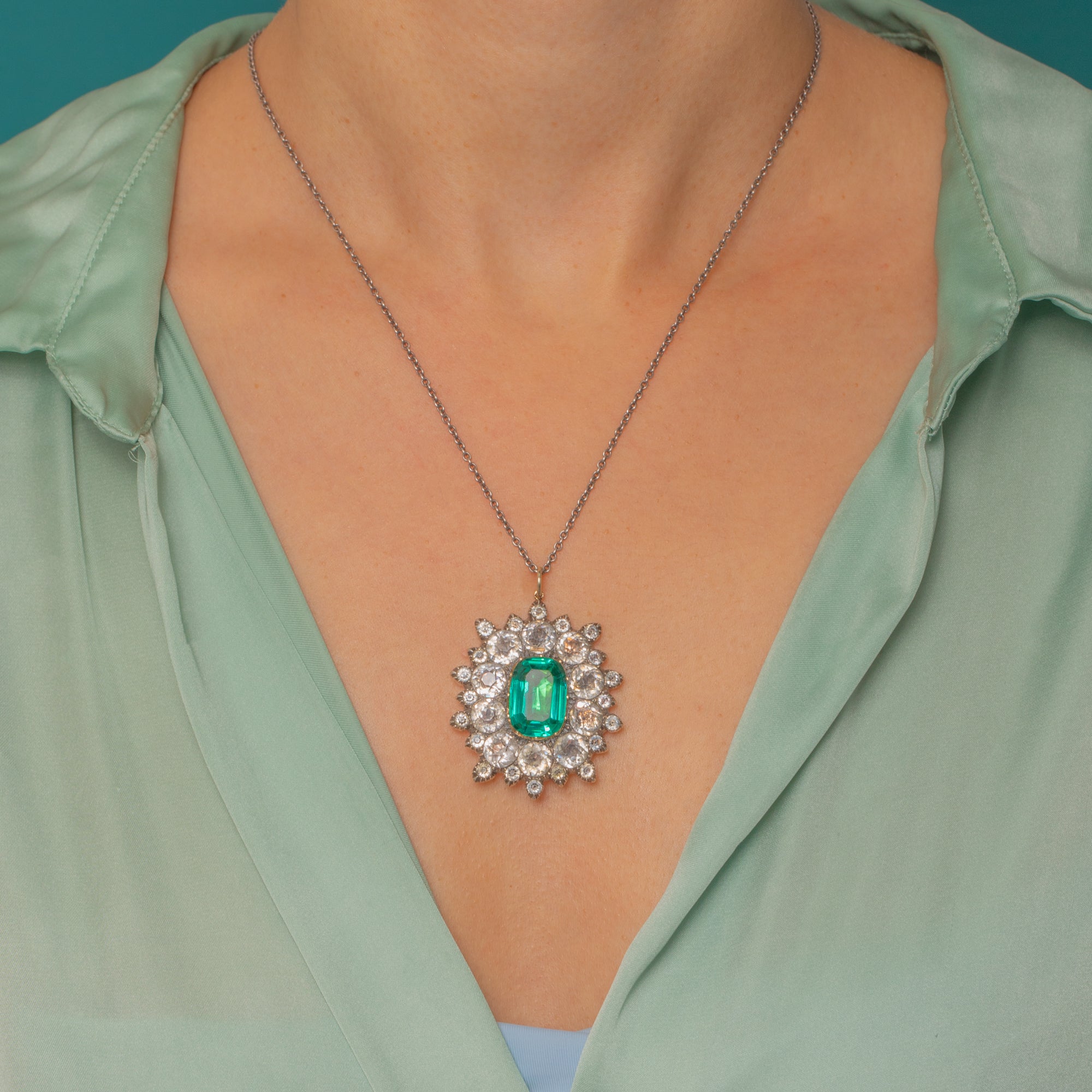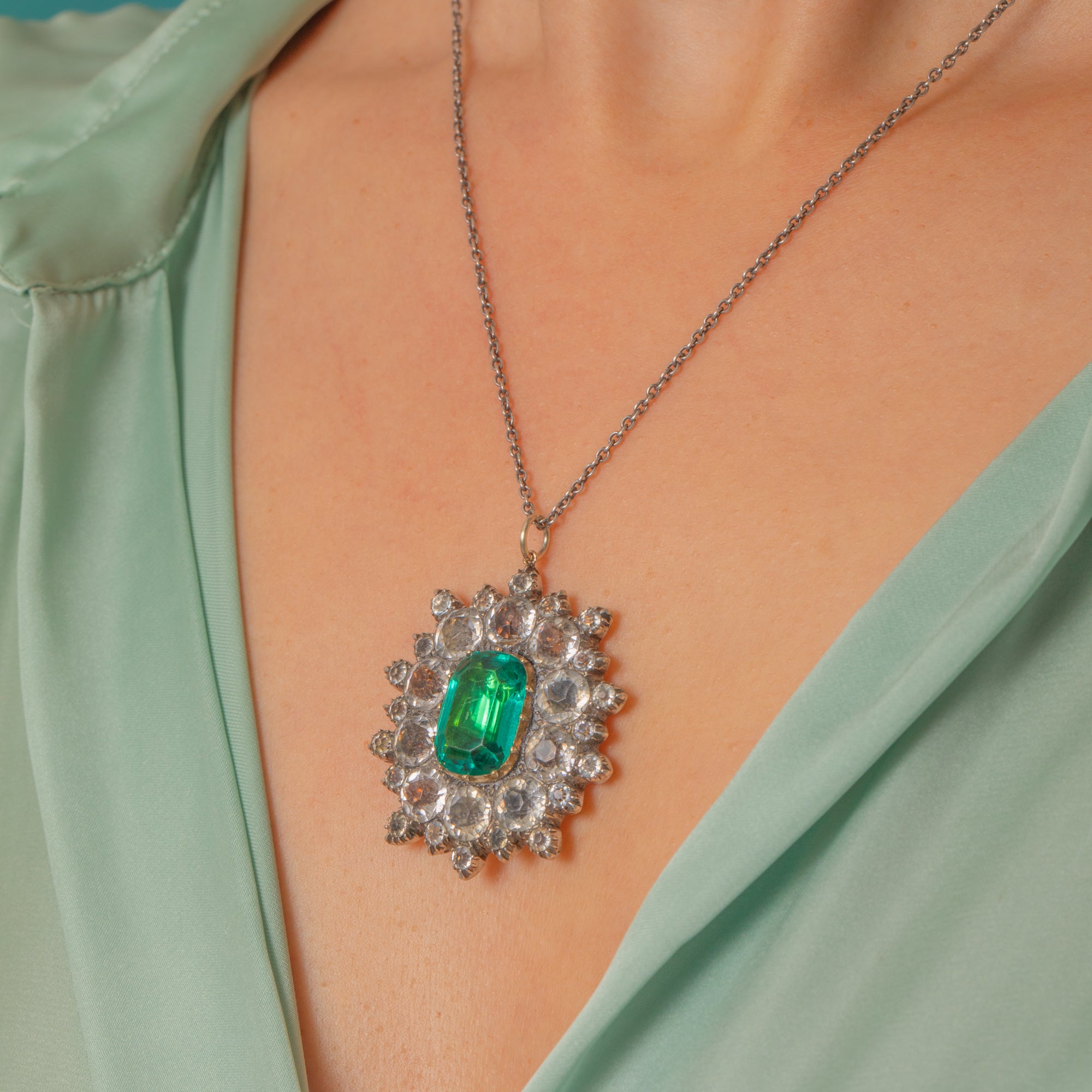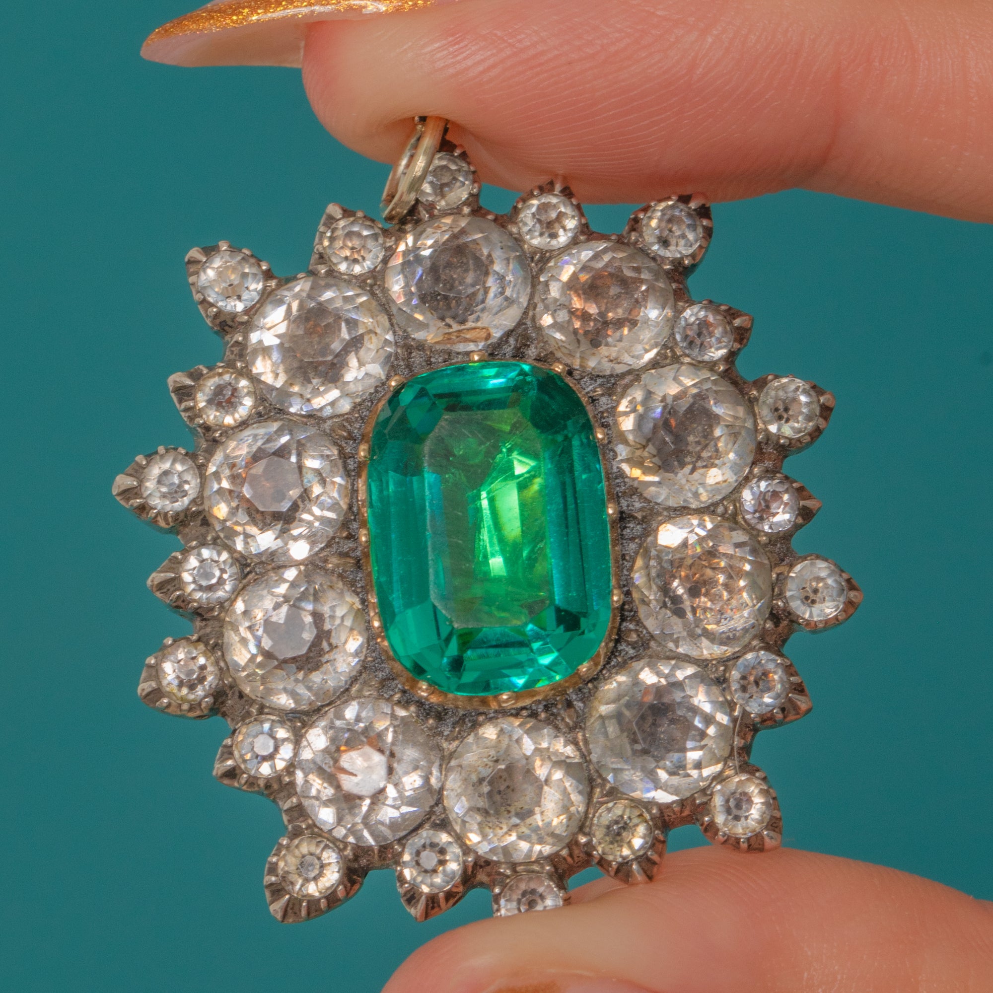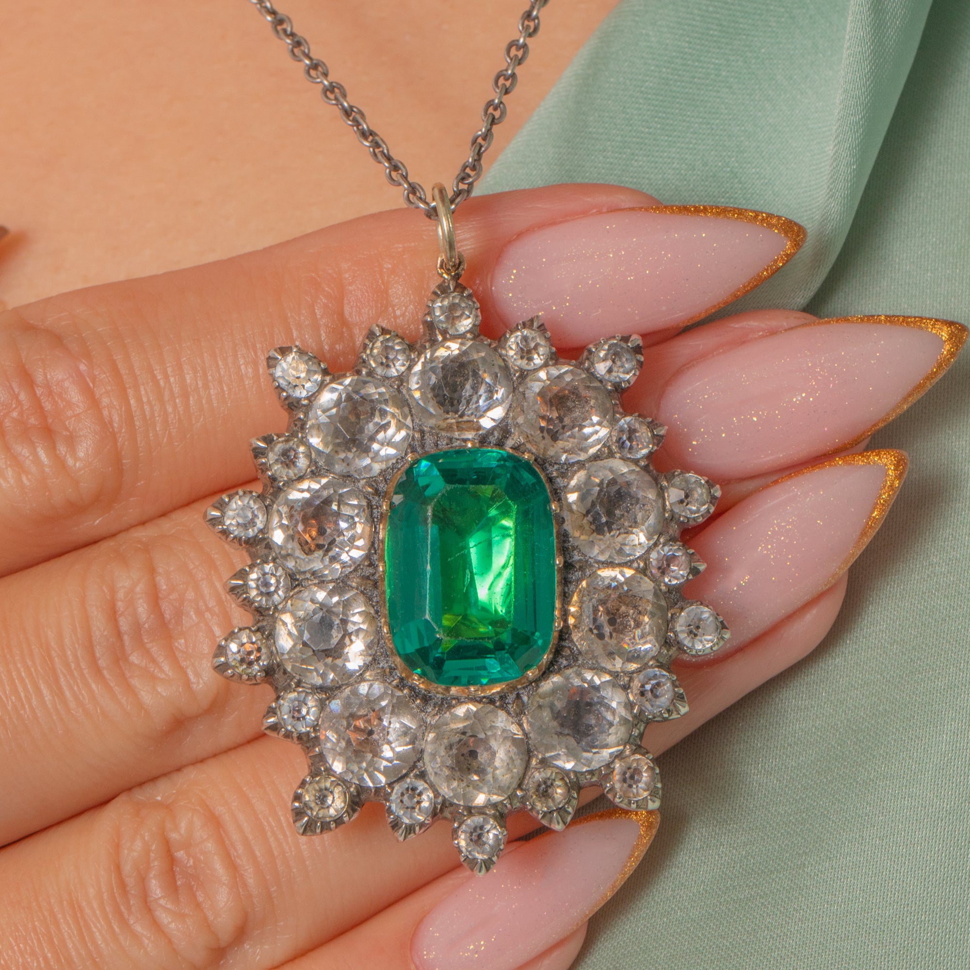 Striking Georgian Green Paste "Starburst" Pendant- 18ct & Silver