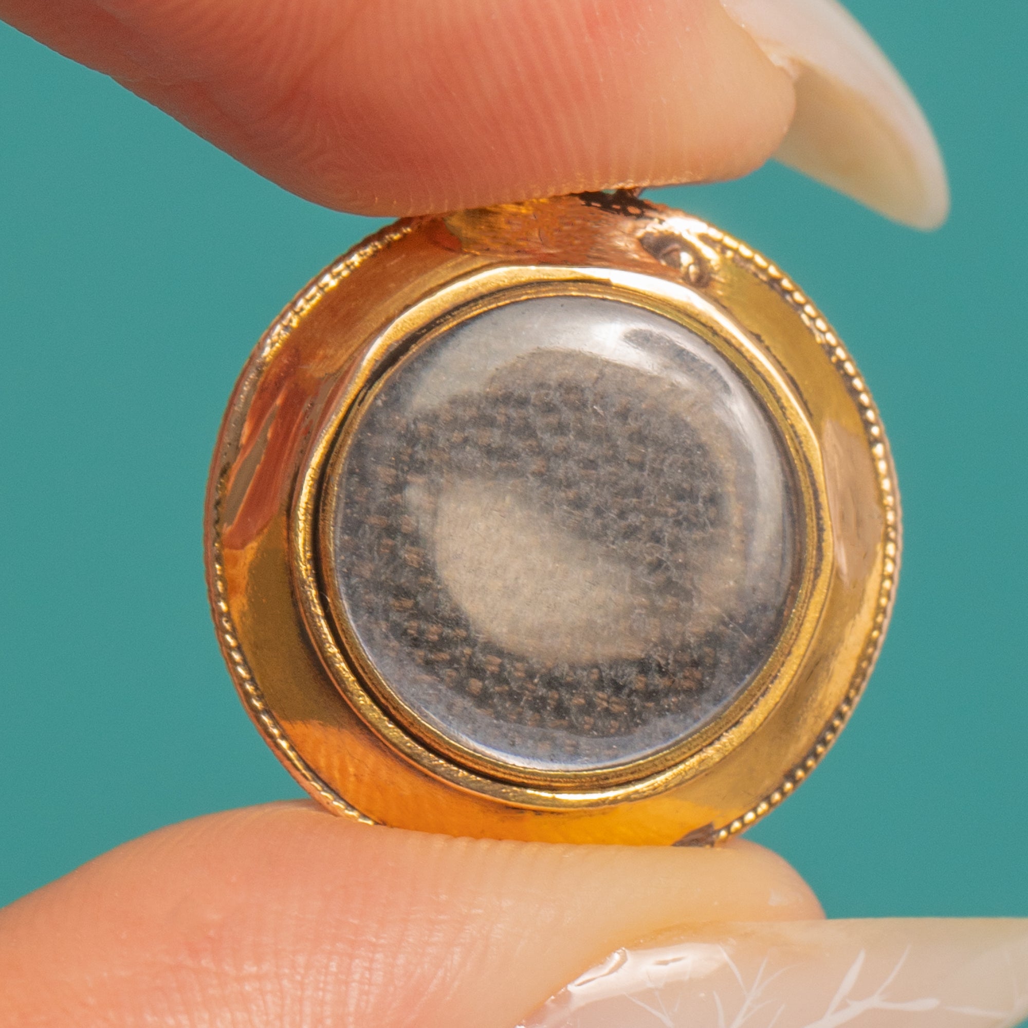 MATERIALS: Tests as 15ct Gold, Banded Agate, Black Enamel, Woven Hair.
