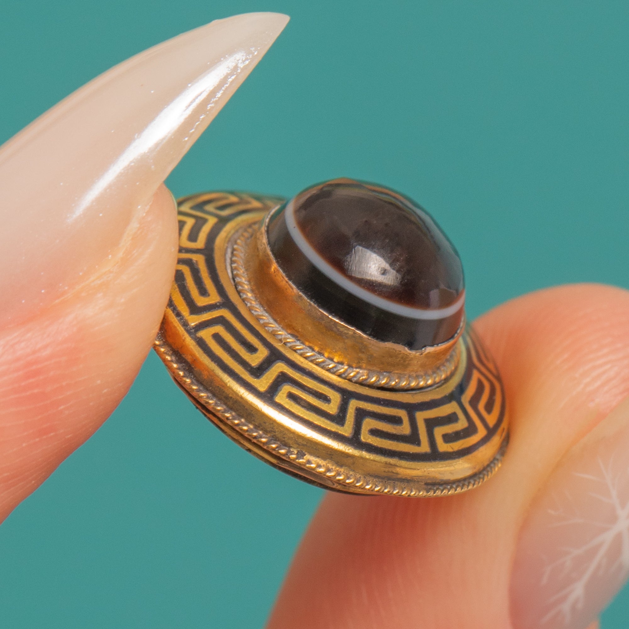 Victorian 15ct Gold Banded Agate Charm with Greek Key Border