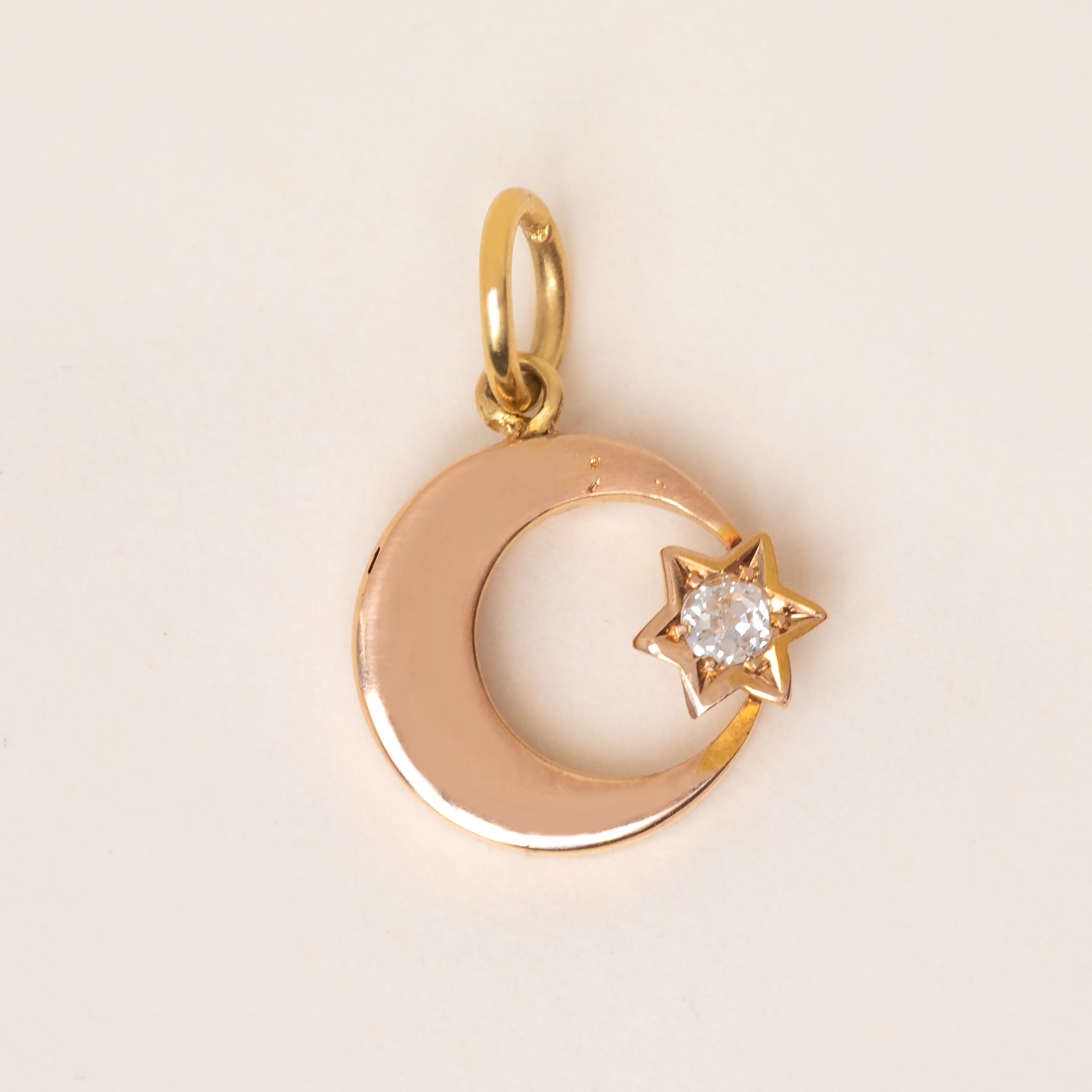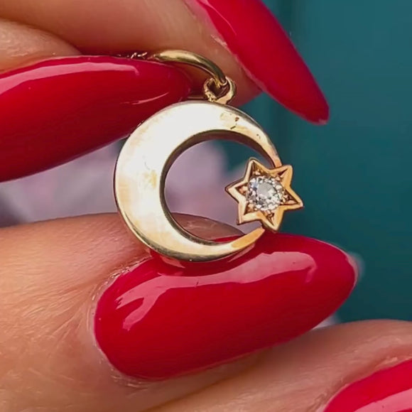 Victorian 15ct Gold Crescent Moon & Diamond Star Charm