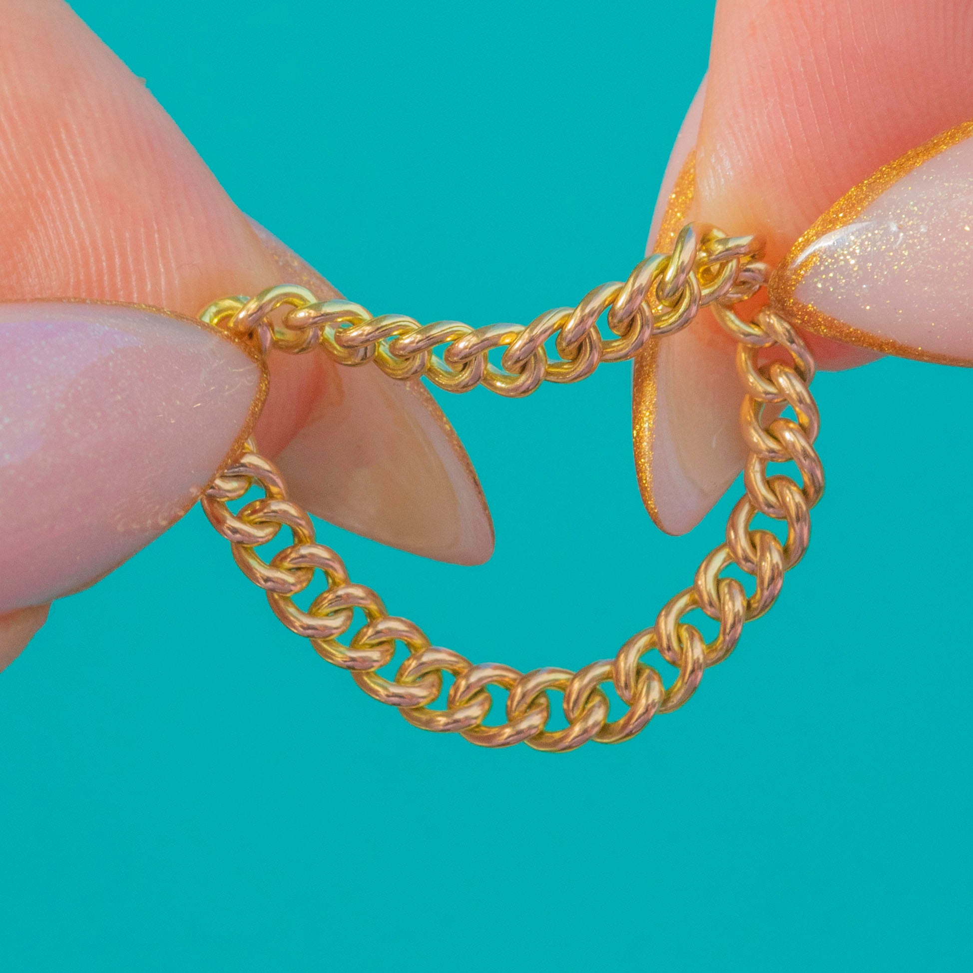 A gorgeous Victorian 15ct Gold curb-chain ring with beautifully rounded 3mm links and that unmistakable warm antique glow. Textured, tactile and effortlessly stylish, it’s perfect for stacking or wearing alone as a soft, golden accent.