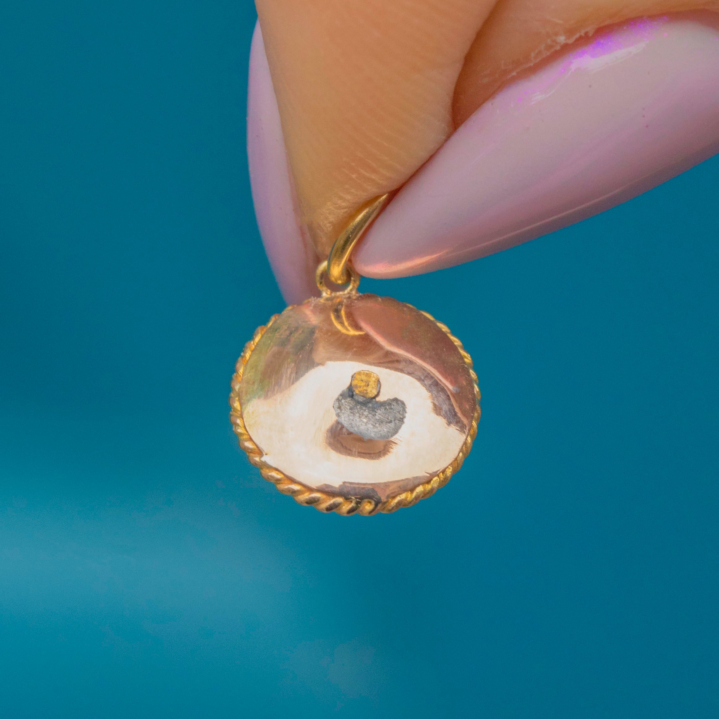 A delightful Antique Victorian Etruscan revival charm crafted in rich 15ct Gold. The intricate granulation and wirework detail are beautifully executed, showcasing the fine craftsmanship of the era in miniature form.