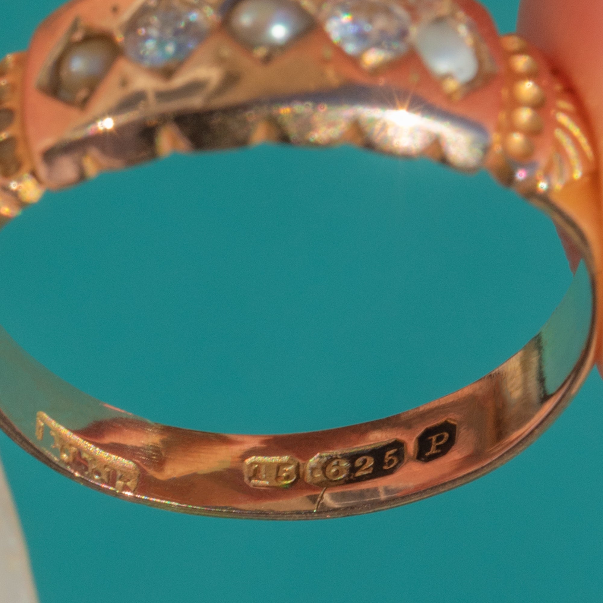 Victorian 15ct Gold Pearl & Diamond Gypsy Ring, c.1864 Item added