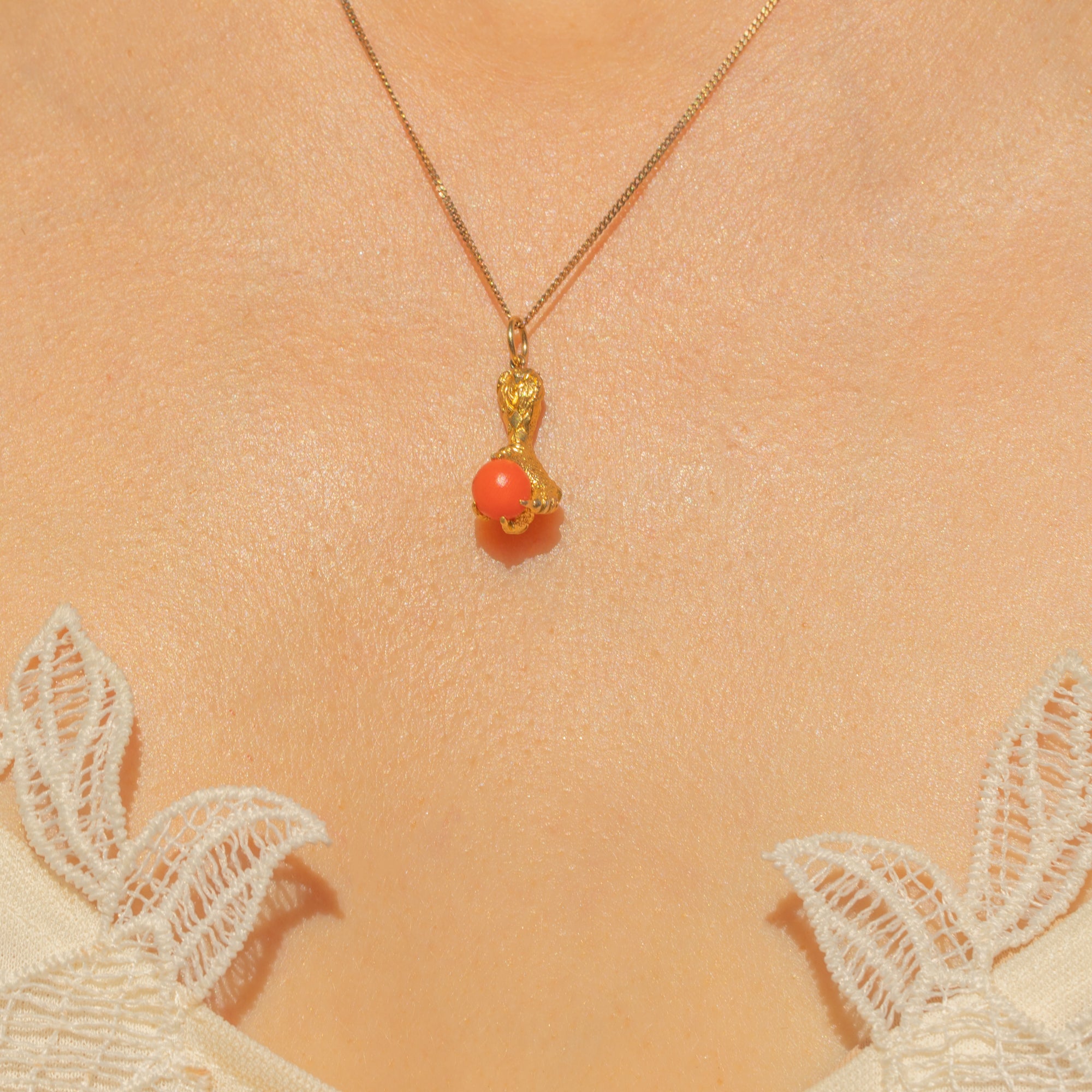 This eagle claw charm will set your jewellery collection apart from the crowd. Within the four claws of this charm lies a striking Coral, held by intricately formed 18ct Gold, allowing you to admire the pendant from every angle.
