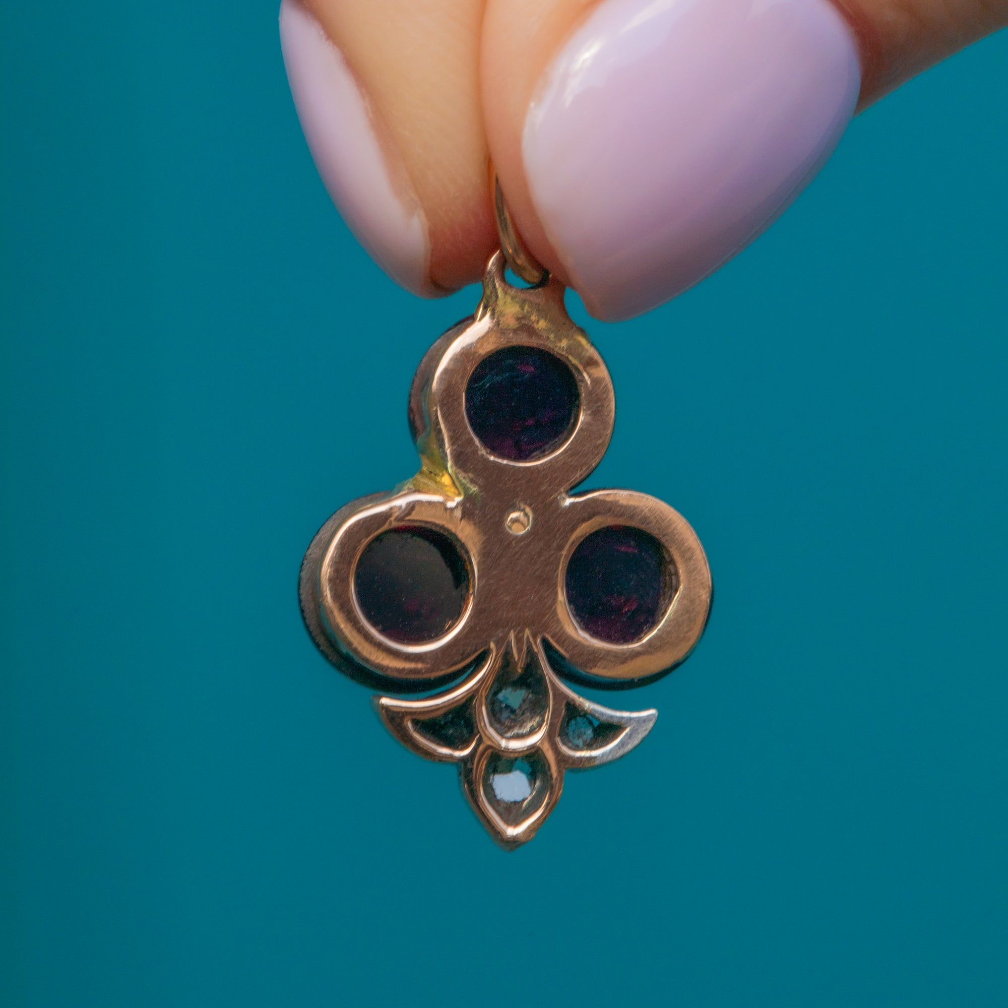 Victorian 18ct Gold Garnet Diamond Trefoil Pendant