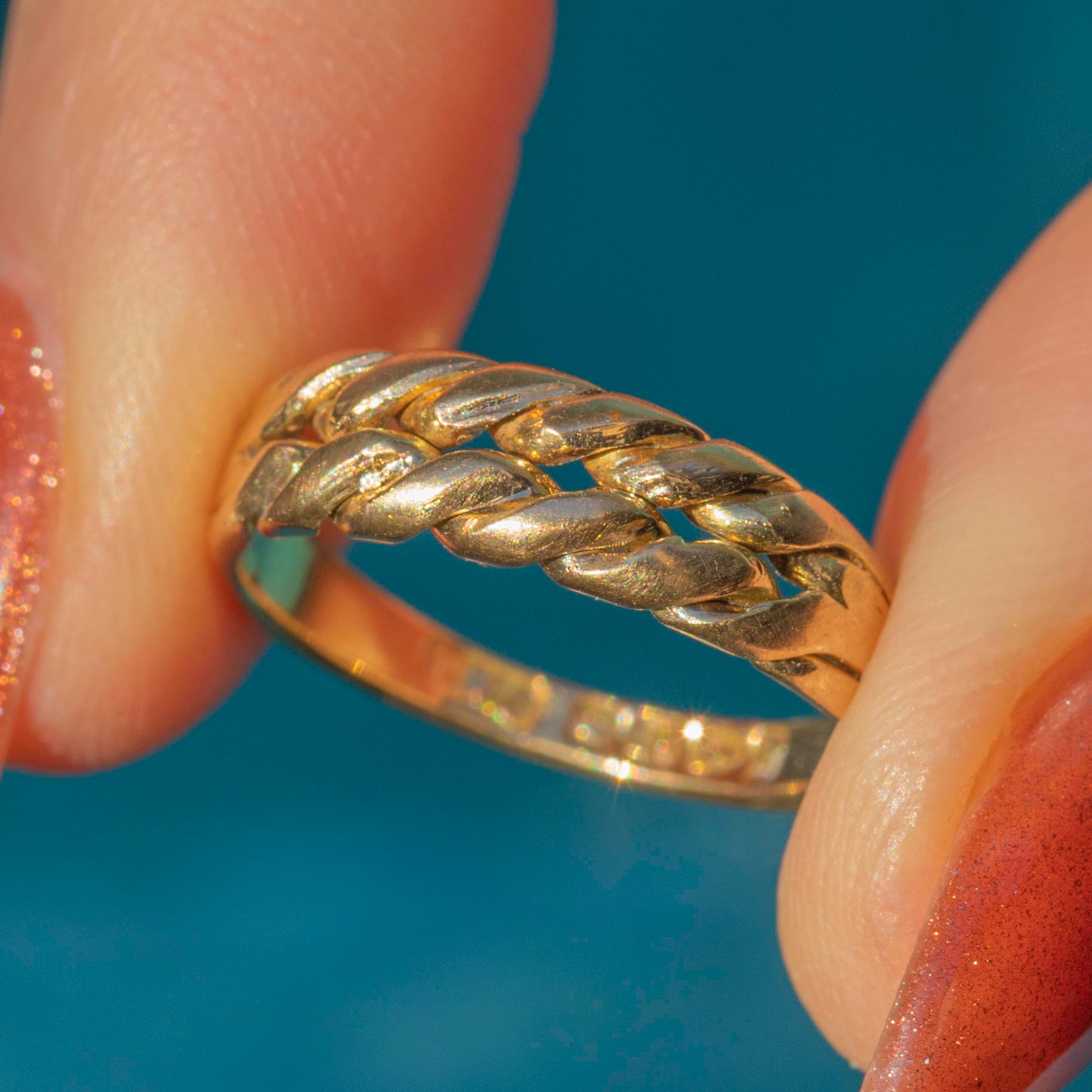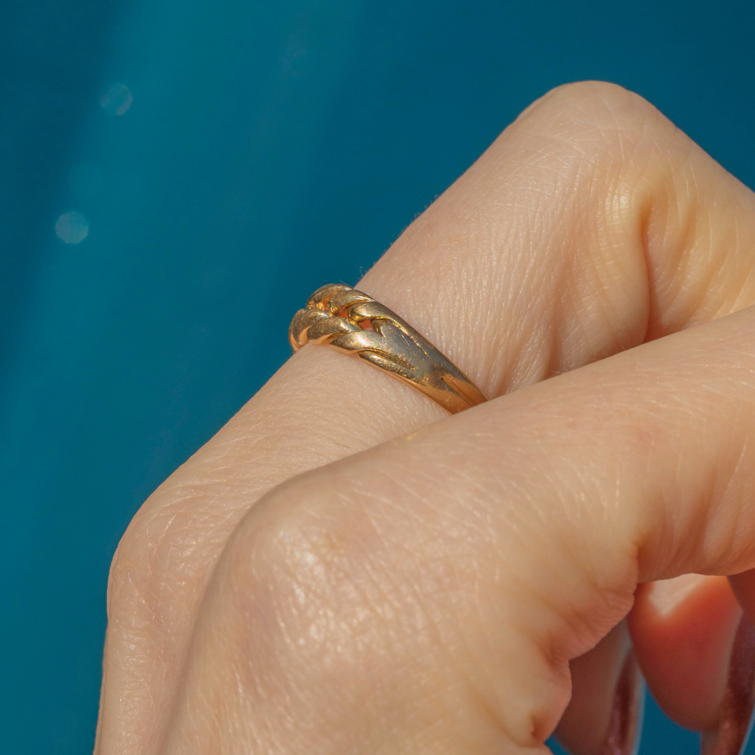 This Victorian 18ct Gold keeper ring is a beautiful solid Gold ring for everyday wear. The braided ring gives this Victorian beauty a distinctive texture, and her smooth band hugs your finger in all the right places.