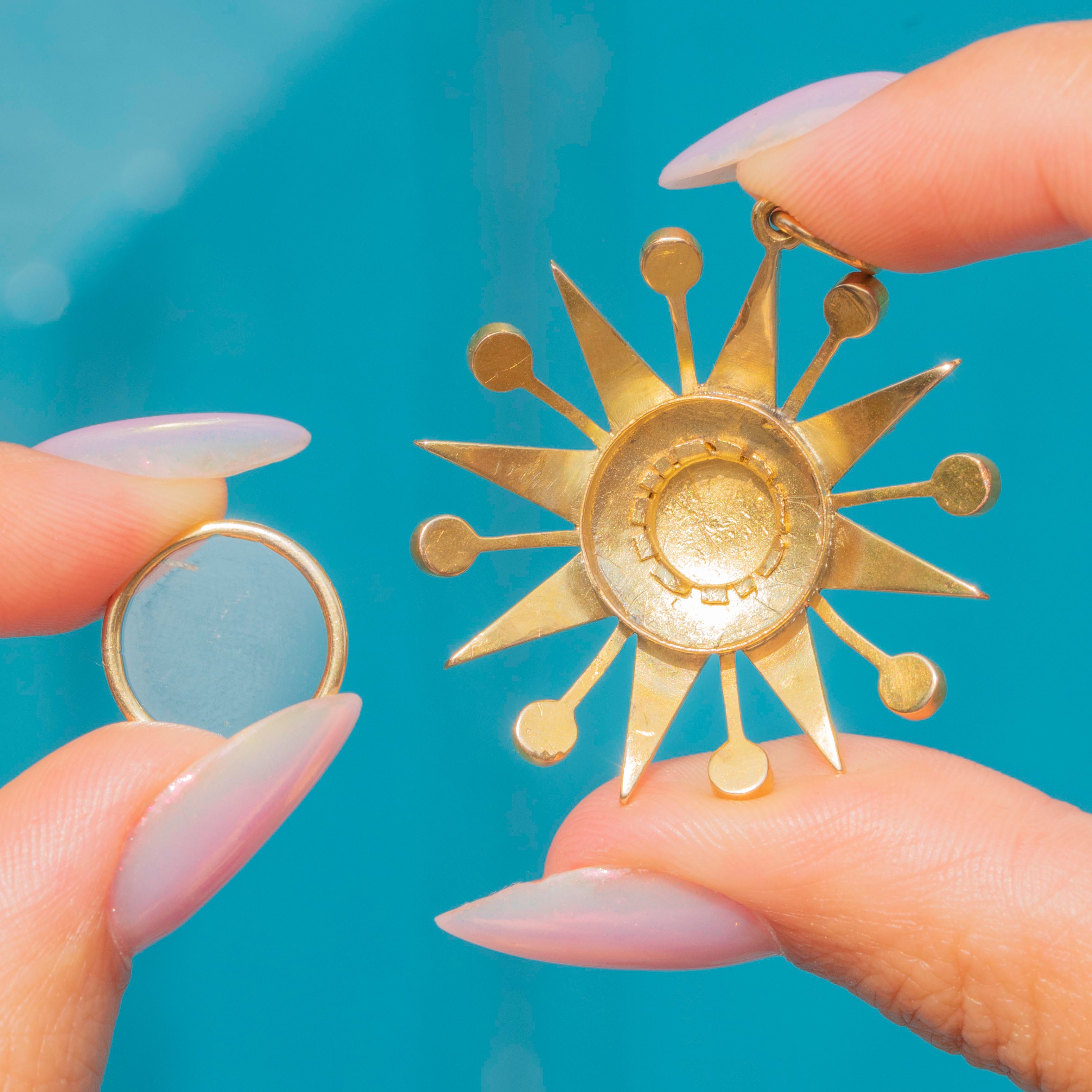 Victorian 18ct Gold Pearl Starburst Pendant, Locket Back