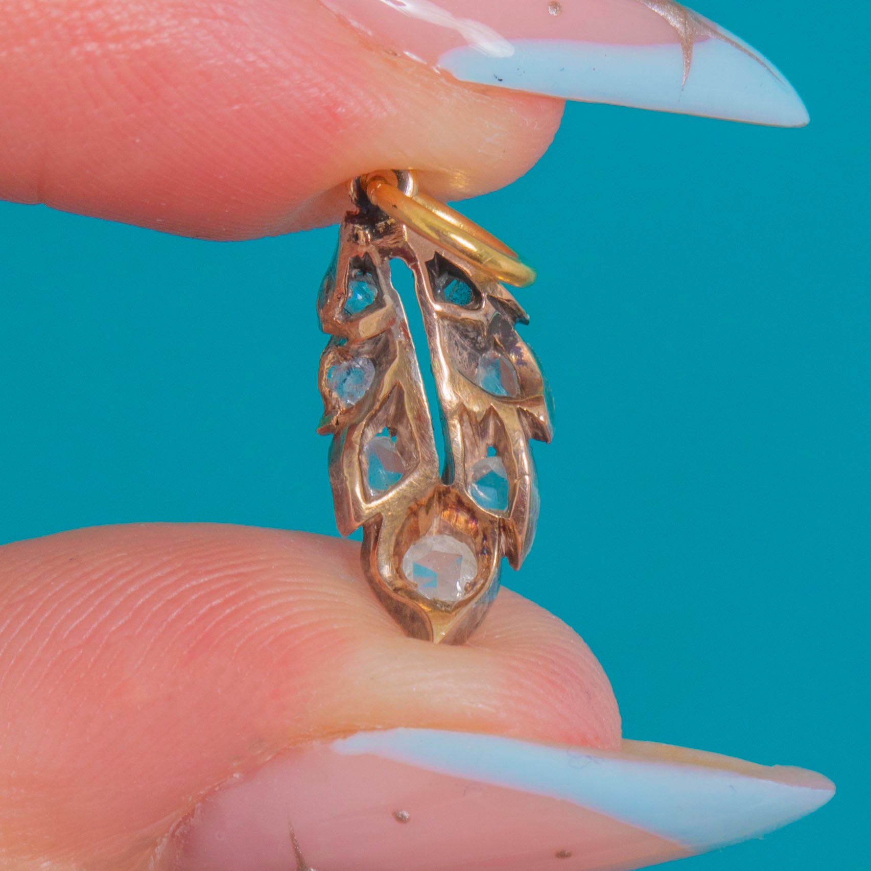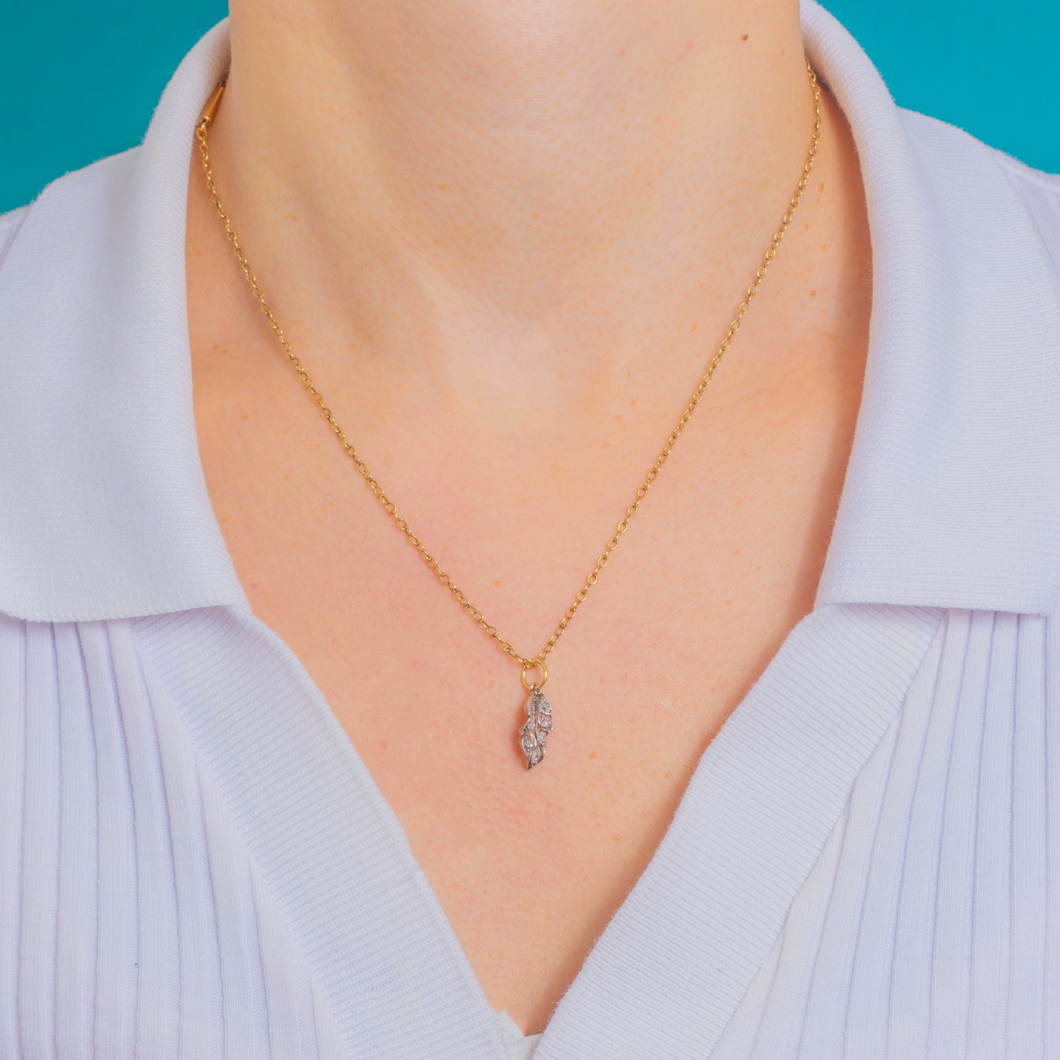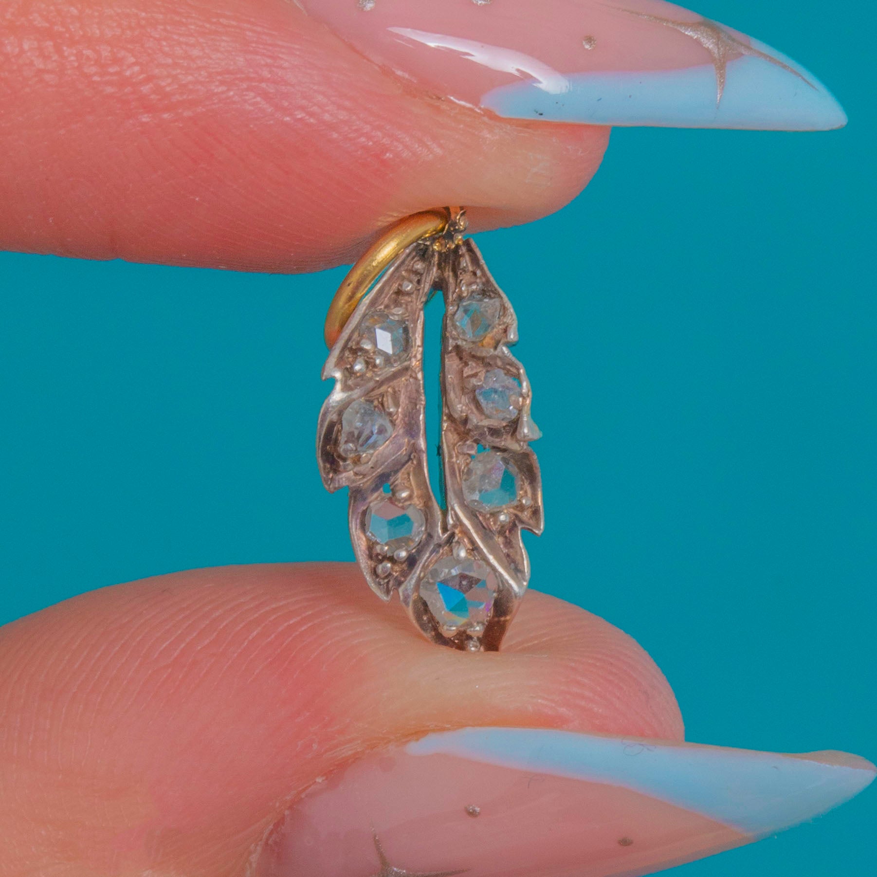 Victorian 18ct Gold & Silver Rose-Cut Diamond Leaf Charm Item added