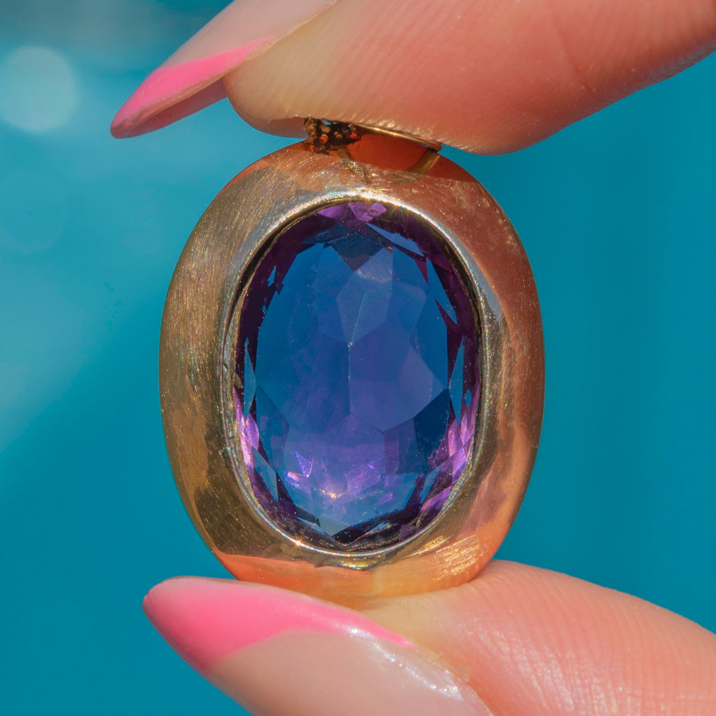 VERY GOOD-EXCELLENT: This regal Victorian 9ct Gold Amethyst Pearl cluster pendant is in great condition. The Amethyst is faceted wonderfully and is set securely within her bezel, as are the Pearls. The Gold is gloriously bright, with only some minor discolouration to the settings, though this is expected with age. With a securely soldered jump ring, you can wear this Victorian pendant with confidence!