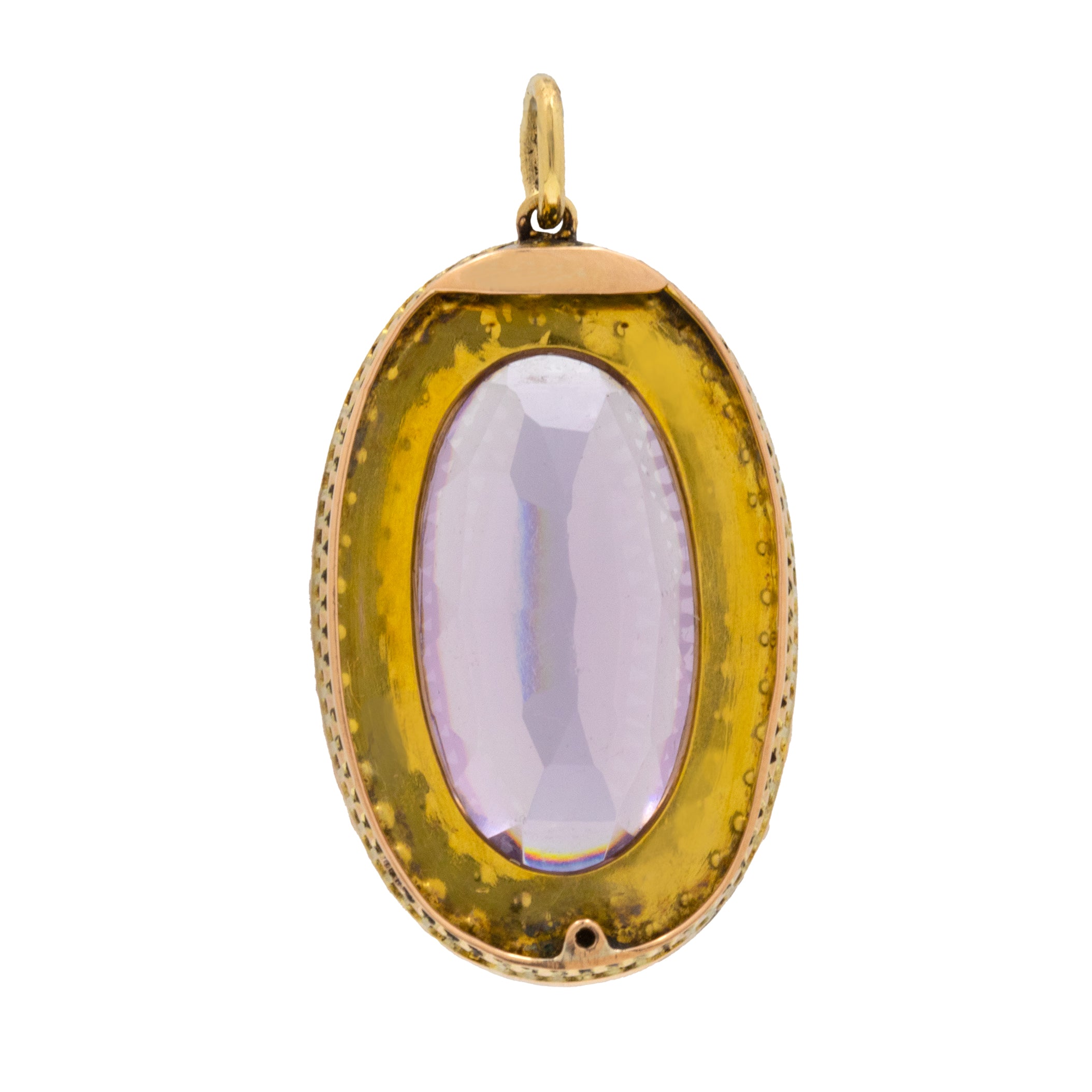 This Victorian Gold pendant speaks for itself; the 7.90ct Amethyst is a succulent and ripe lavender hue, haloed by luminous white Pearls to create a regal and elegant pendant for your collection.