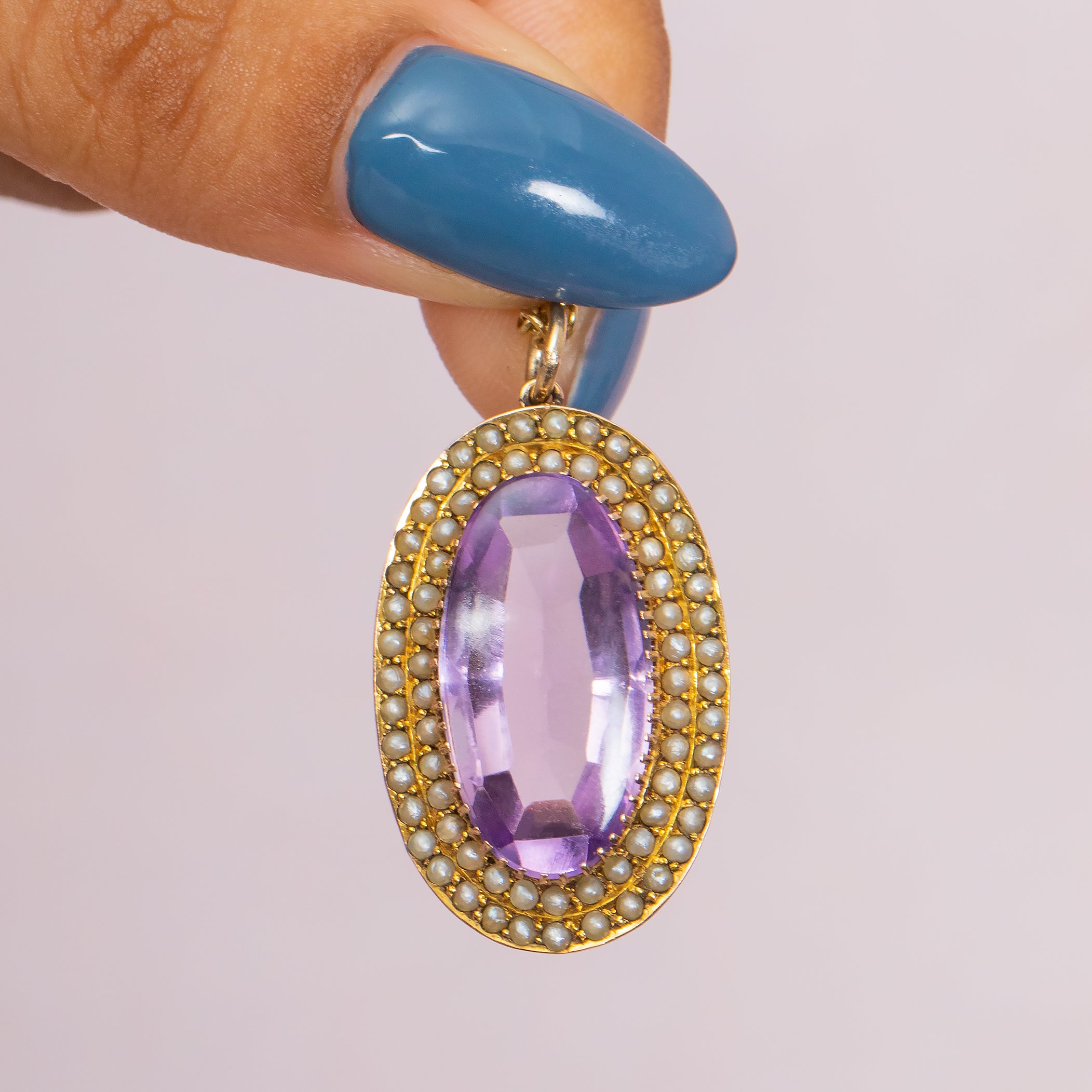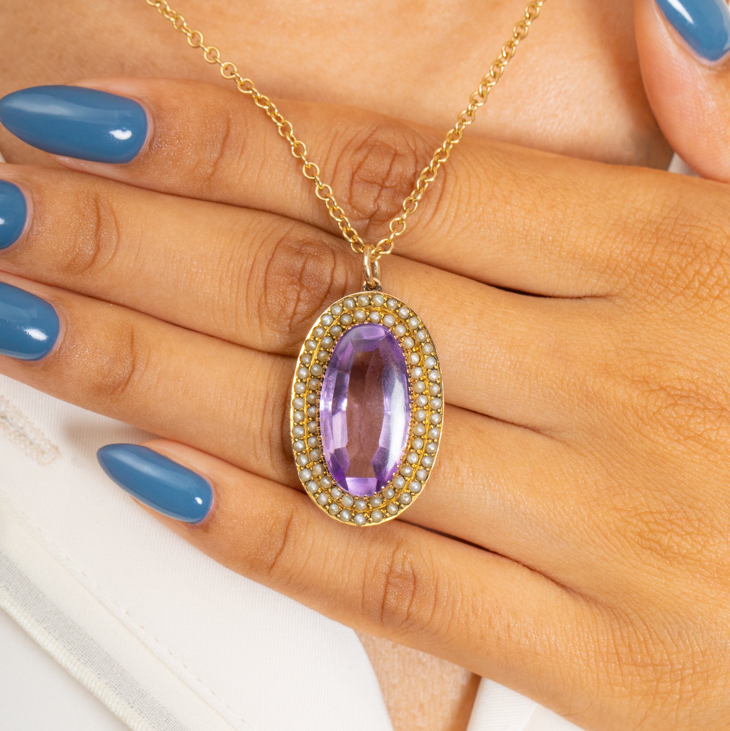 Victorian 9ct Gold Amethyst Pearl Pendant, 7.90ct