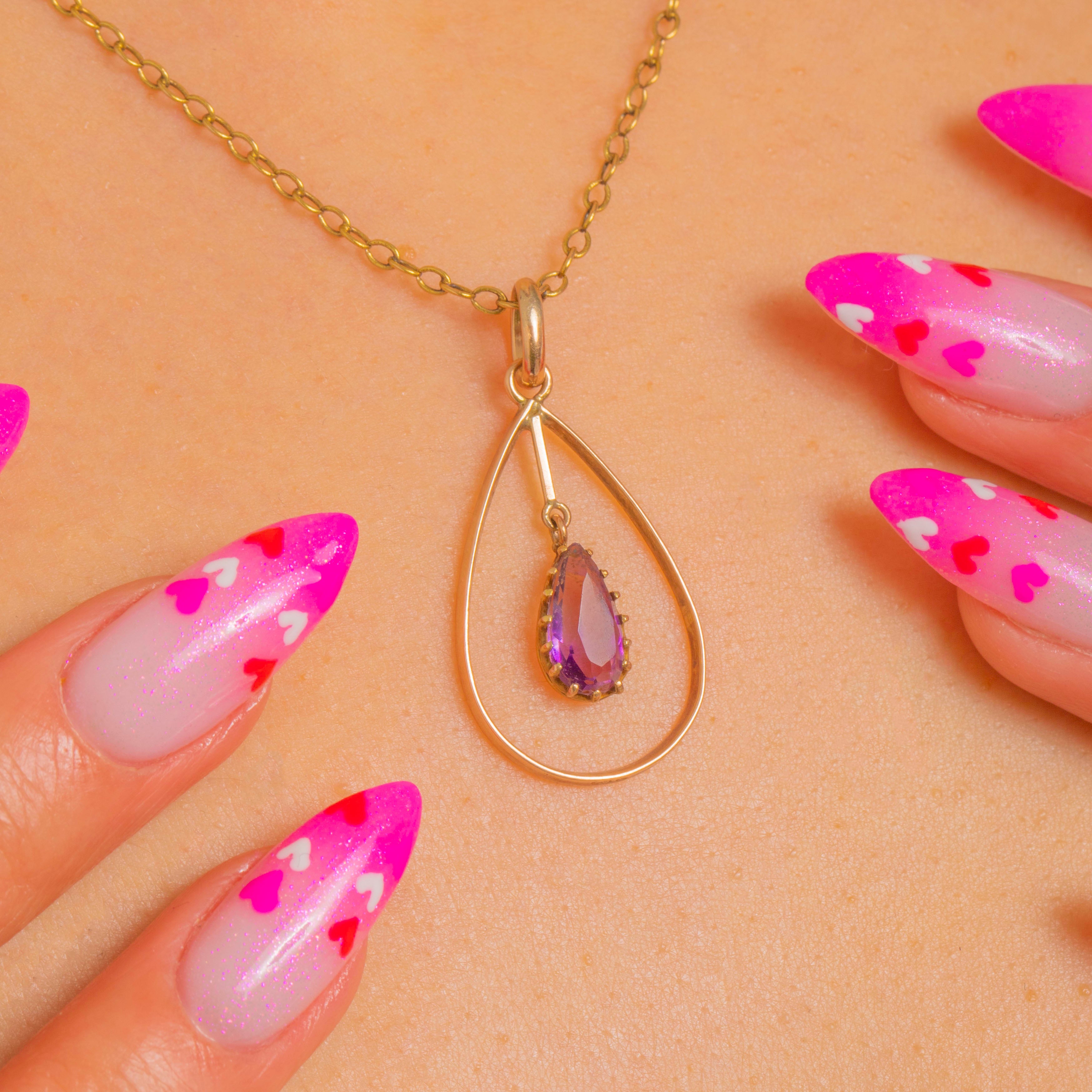 Victorian 9ct Gold Amethyst Teardrop Drop Pendant c.1900 Item added