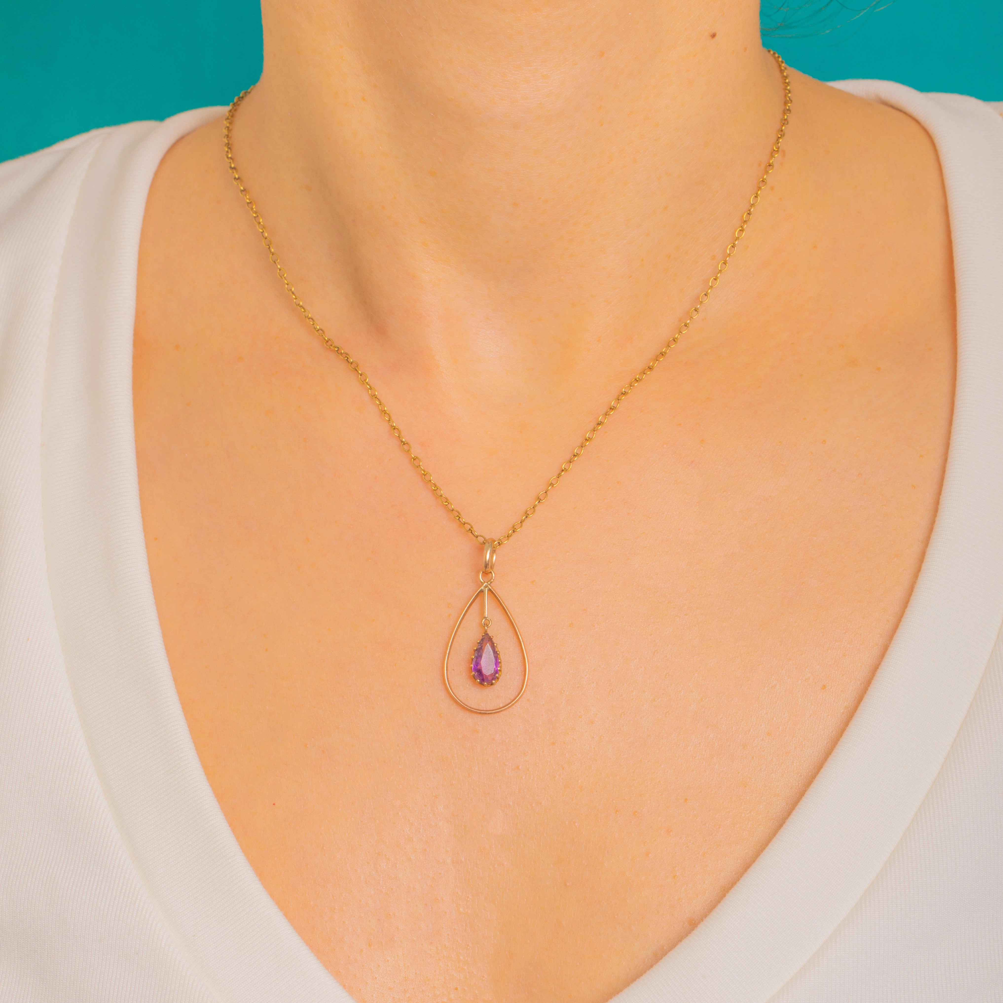 Victorian 9ct Gold Amethyst Teardrop Drop Pendant c.1900