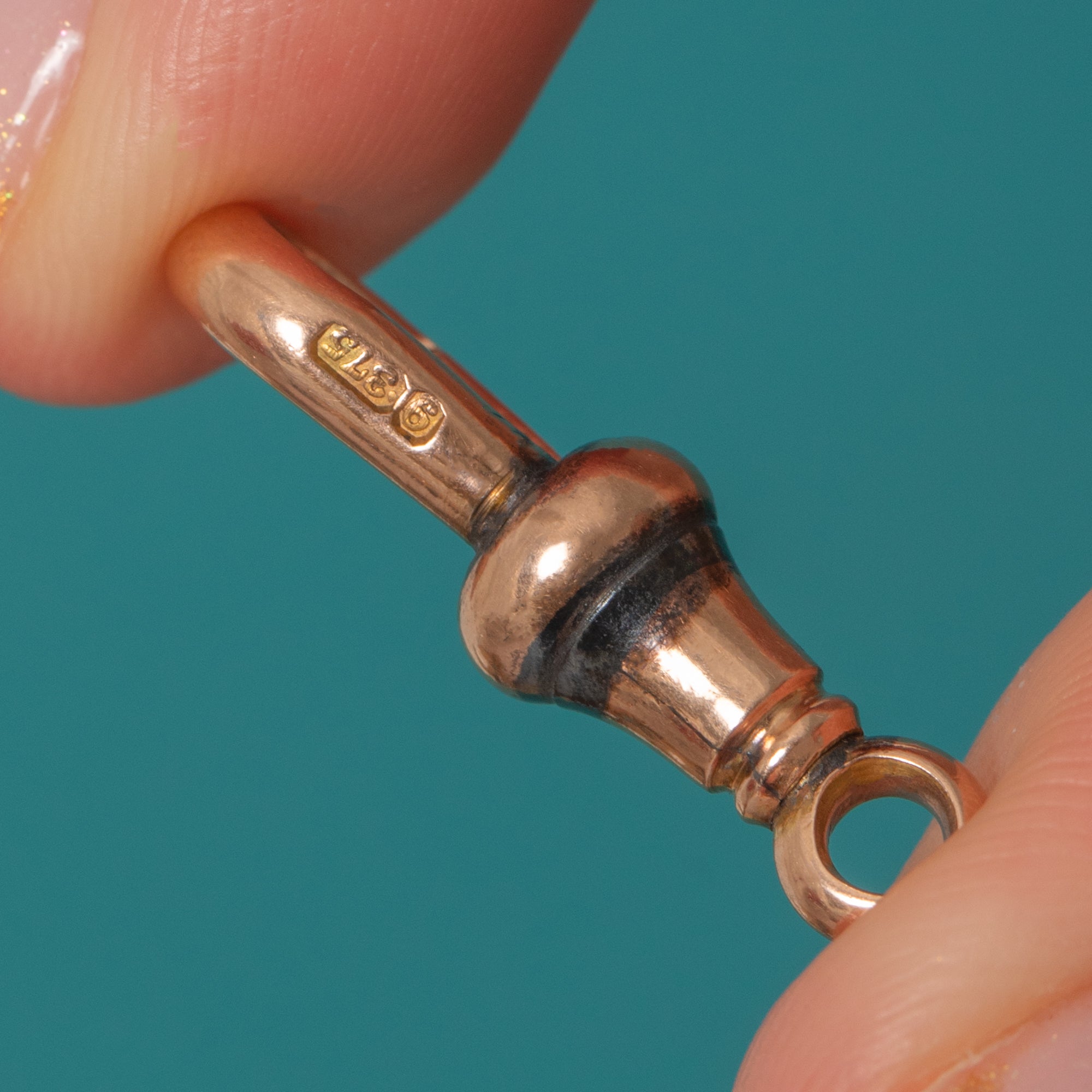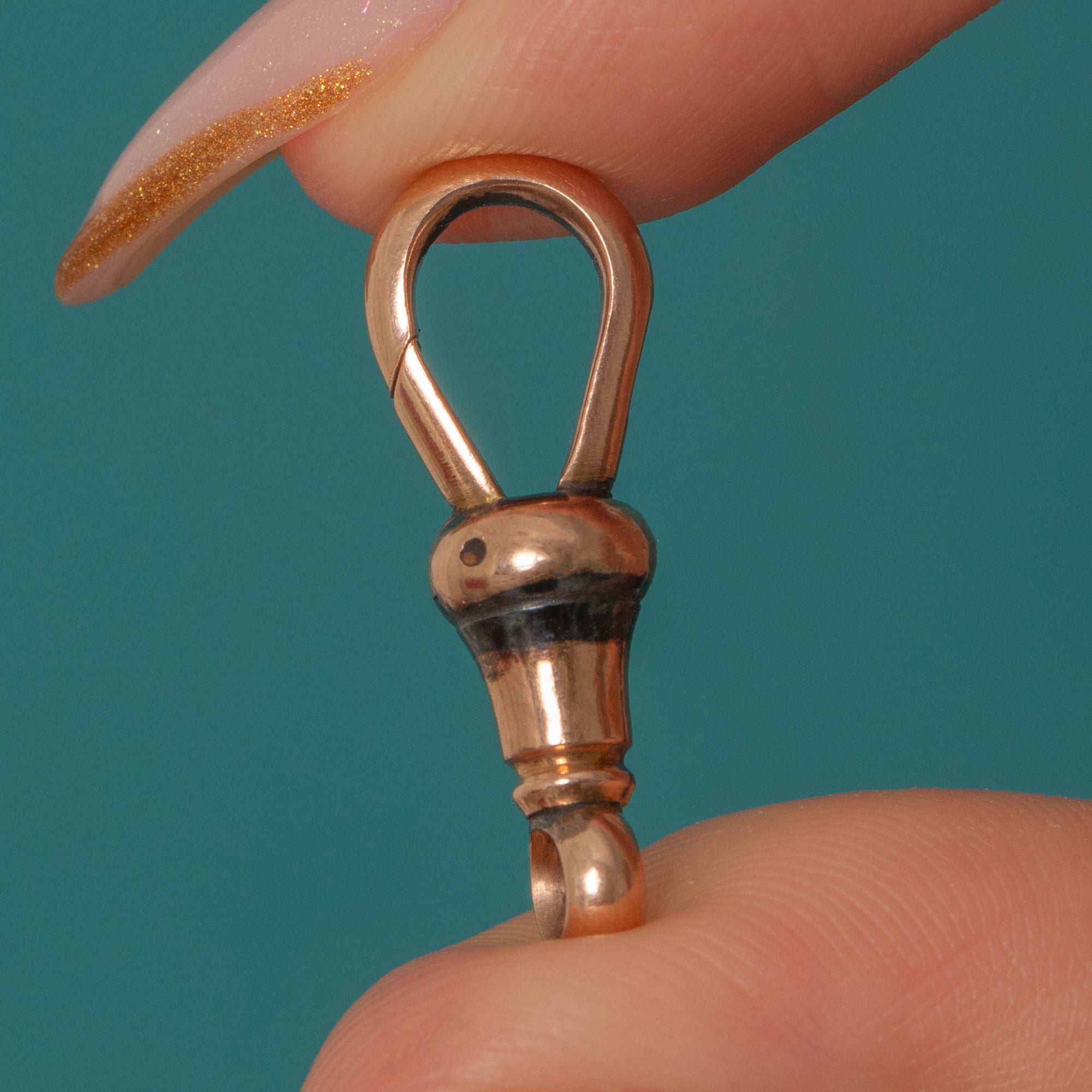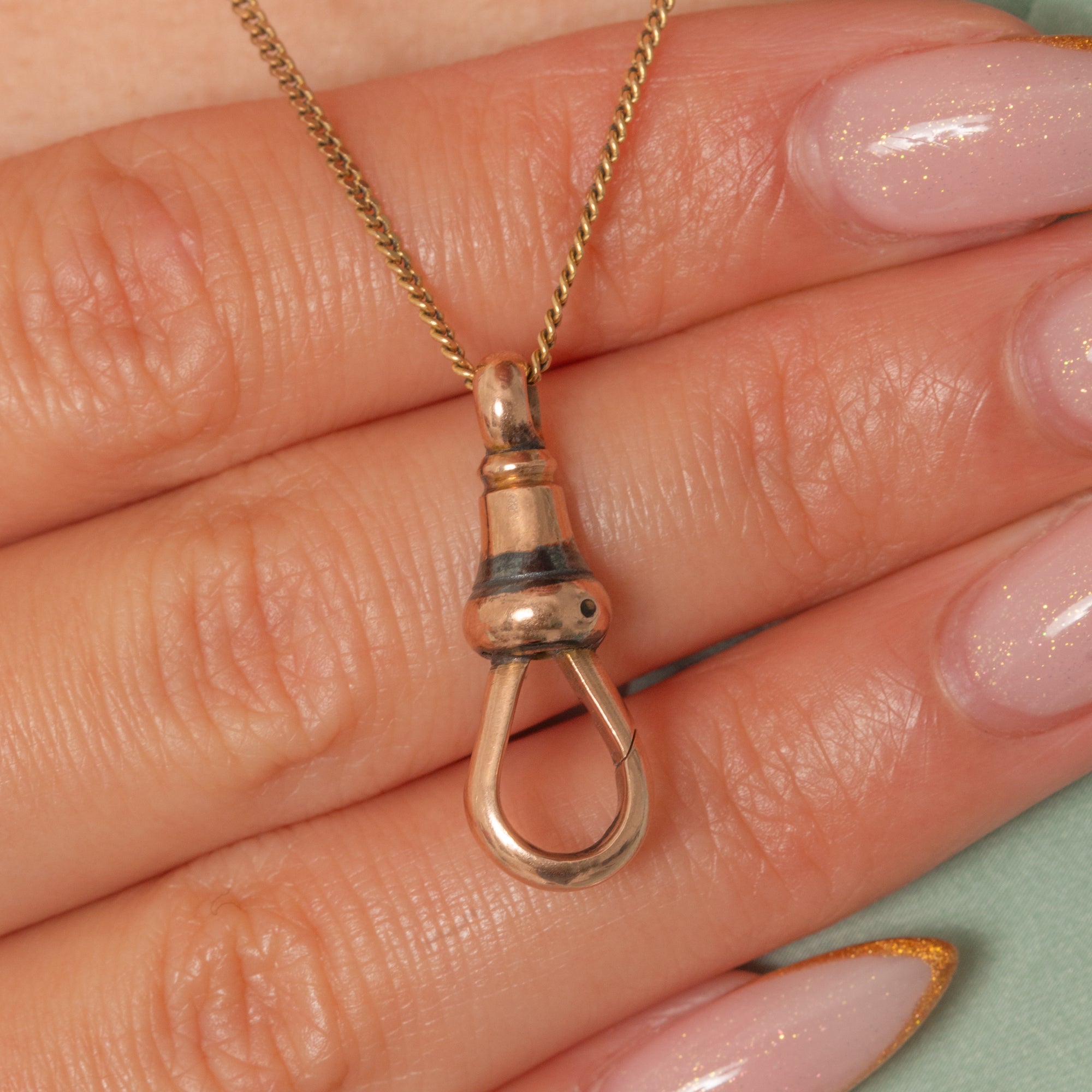 This substantial antique dog-clip clasp is a brilliant, versatile Victorian finding — ideal for adding charms, extending chains, or updating antique pieces. Crafted in solid 9ct Gold and stamped “9.375”, it has that unmistakable Victorian silhouette with a smooth, weighty feel in the hand.
