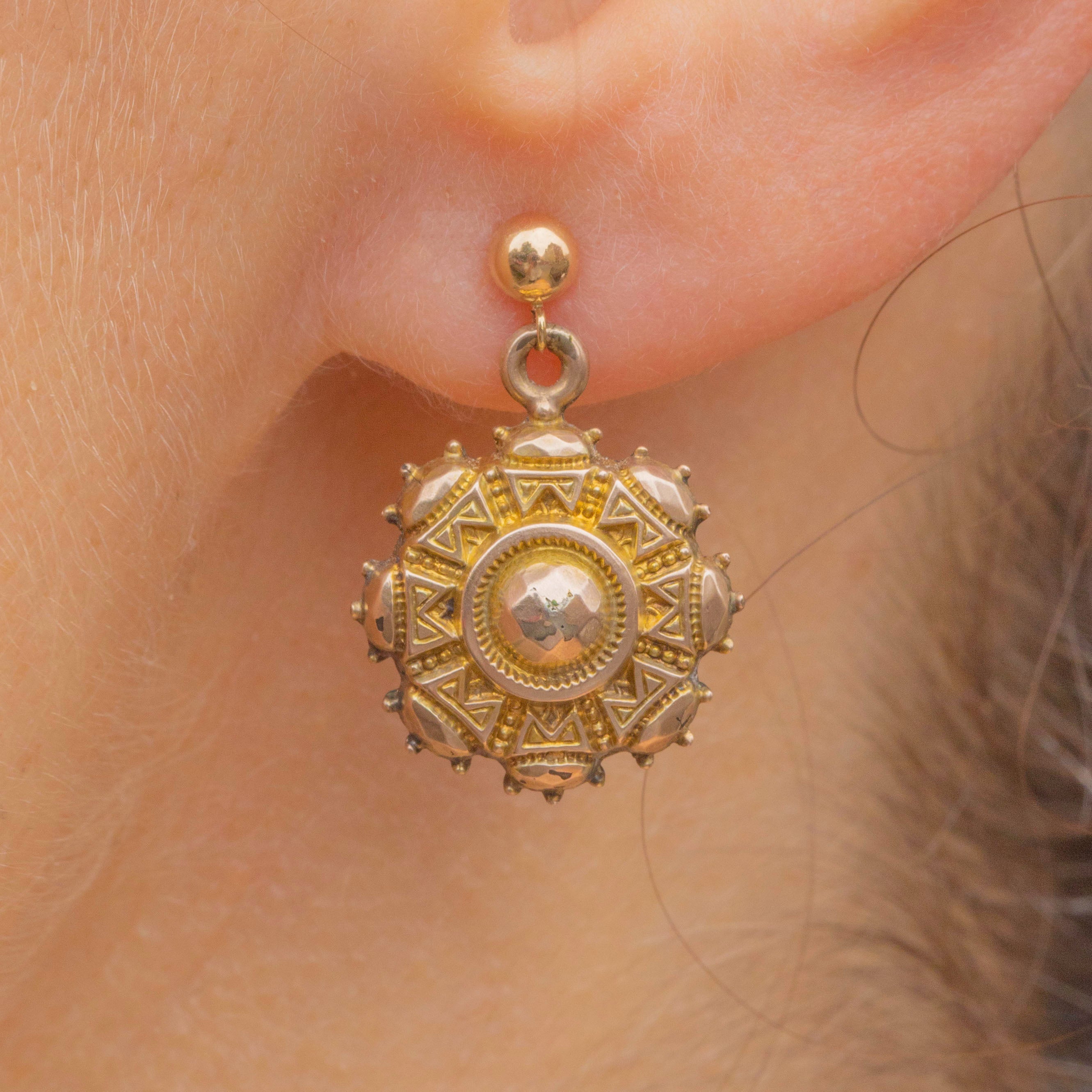 Victorian 9ct Gold Etruscan Earrings