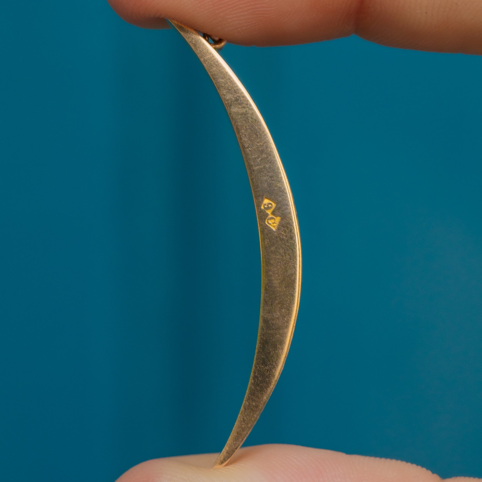 VERY GOOD. This Victorian 9ct Gold Sapphire Opal crescent moon pendant is in very good condition. The Gold is buttery and smooth, holding each gemstone securely in place. Under close inspection, there are some small surface marks on the central Sapphire, but this is barely noticeable and the rest are pristine. Complete with a generously sized jump ring, you can suspend this phenomenal Victorian crescent pendant from a chain of your choice with ease!