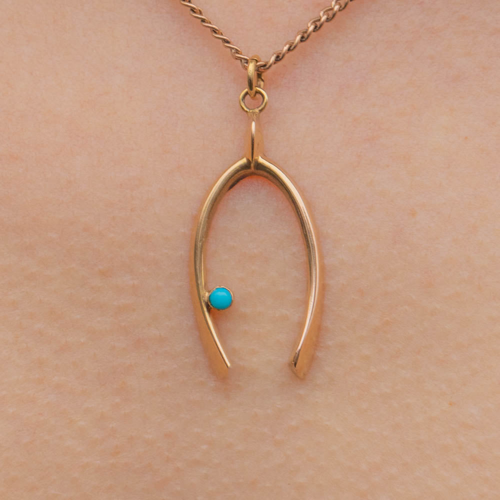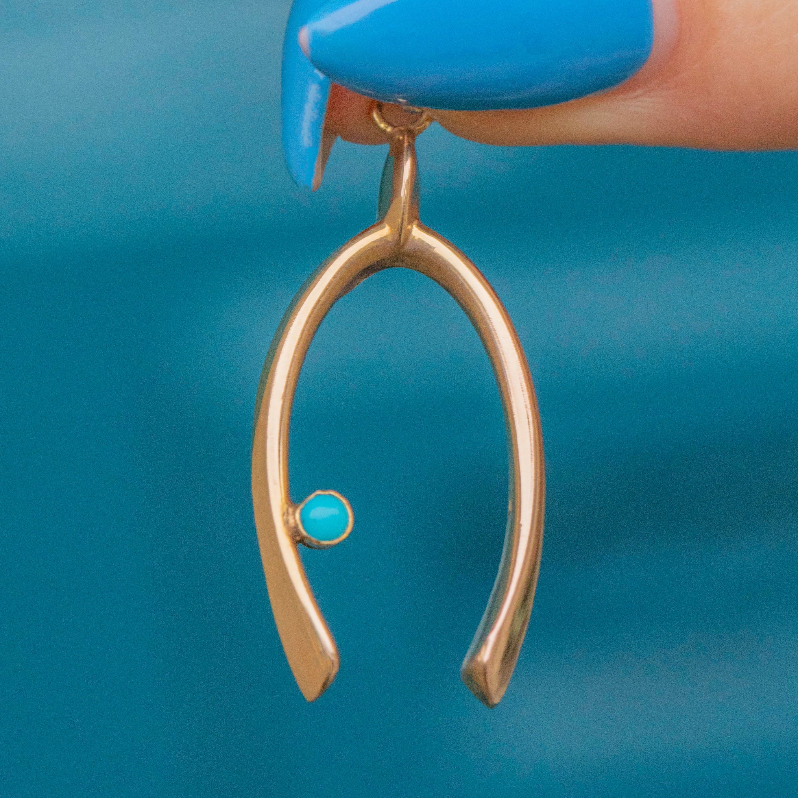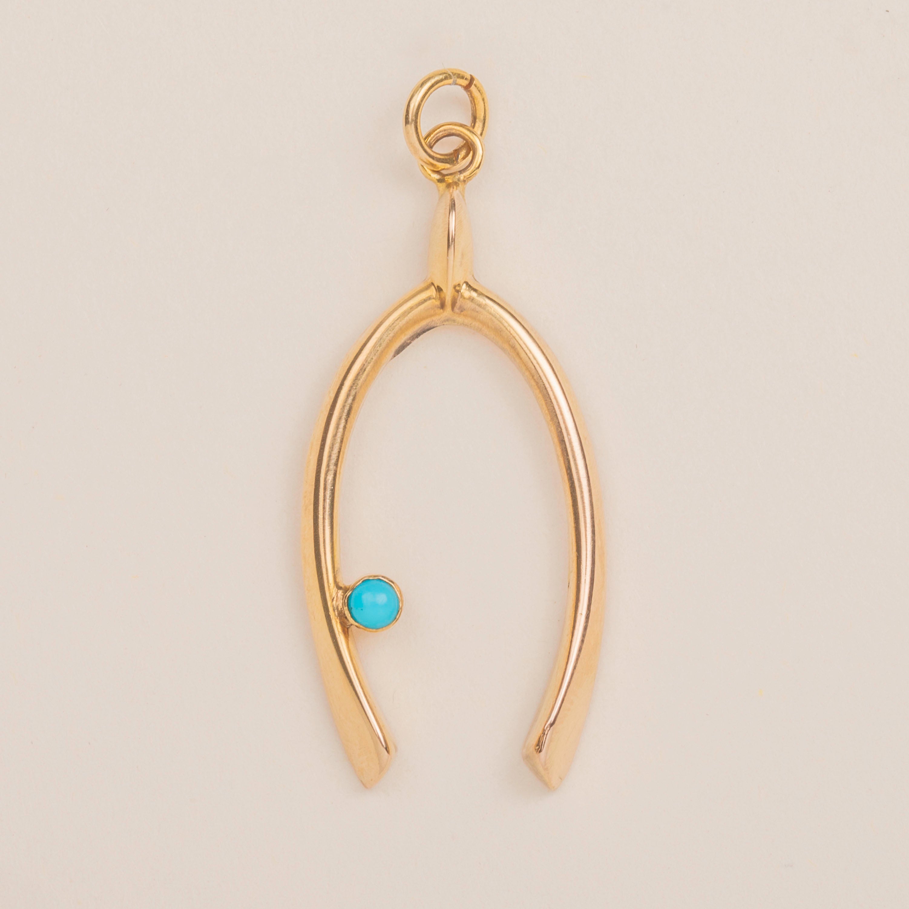 This Victorian 9ct Gold Turquoise wishbone charm is set to become your new good luck talisman! Steeped in symbolism, the wishbone has long been associated with luck and hope for the future, making this antique wishbone pendant a wonderful gift choice for someone embarking on a new journey in life.