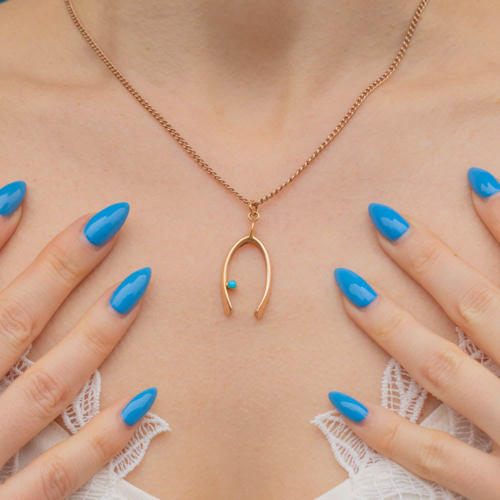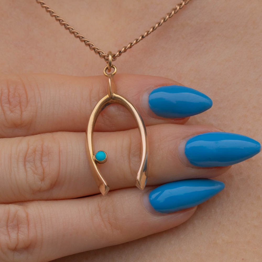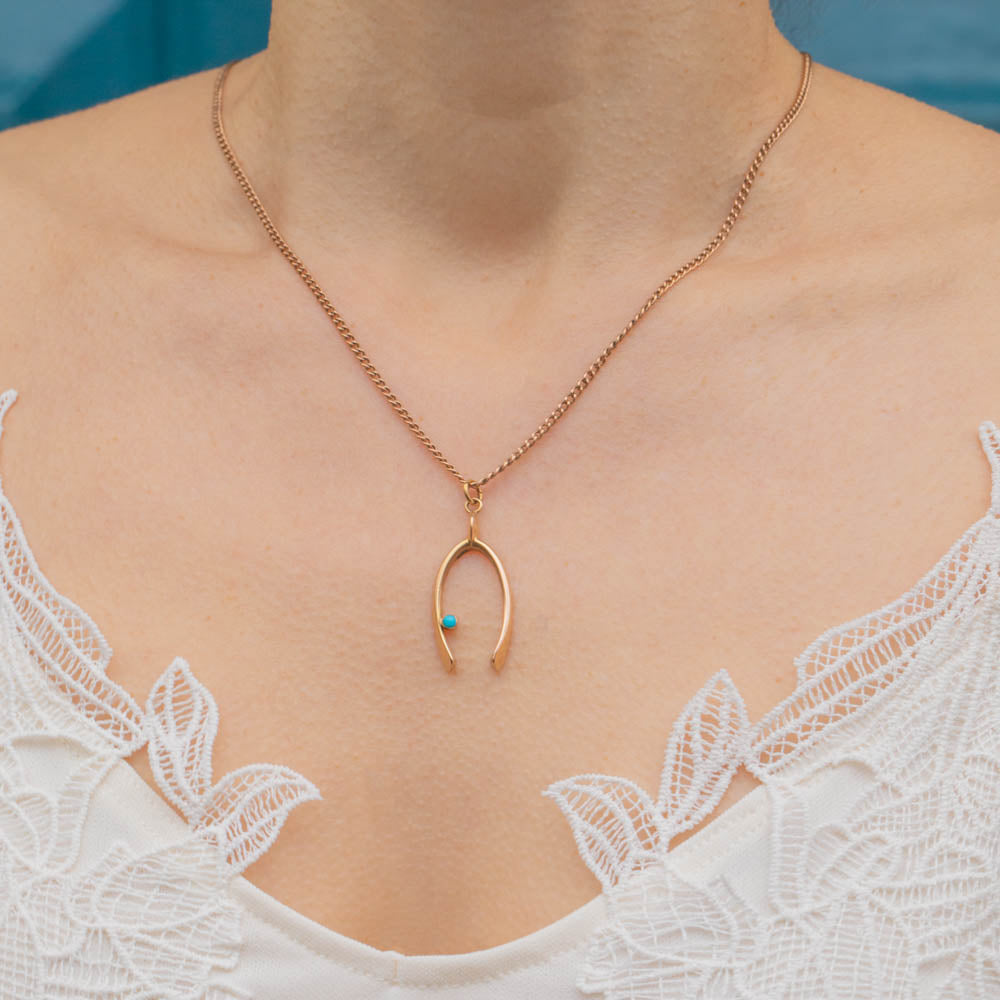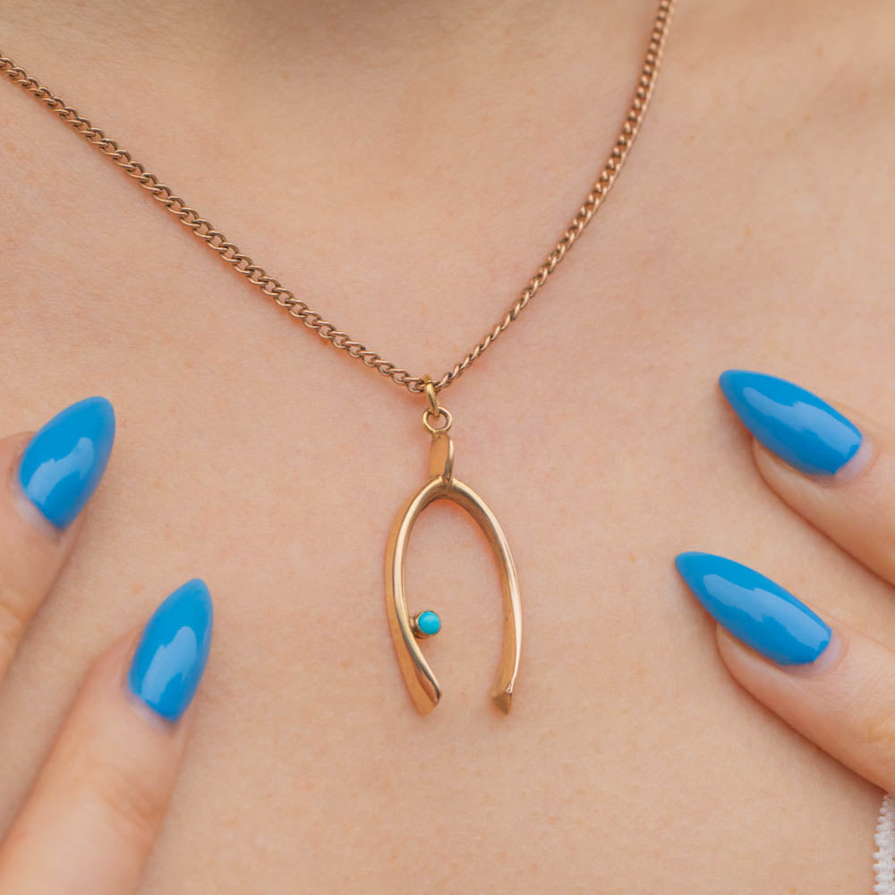 This Victorian 9ct Gold Turquoise wishbone charm is set to become your new good luck talisman! Steeped in symbolism, the wishbone has long been associated with luck and hope for the future, making this antique wishbone pendant a wonderful gift choice for someone embarking on a new journey in life.