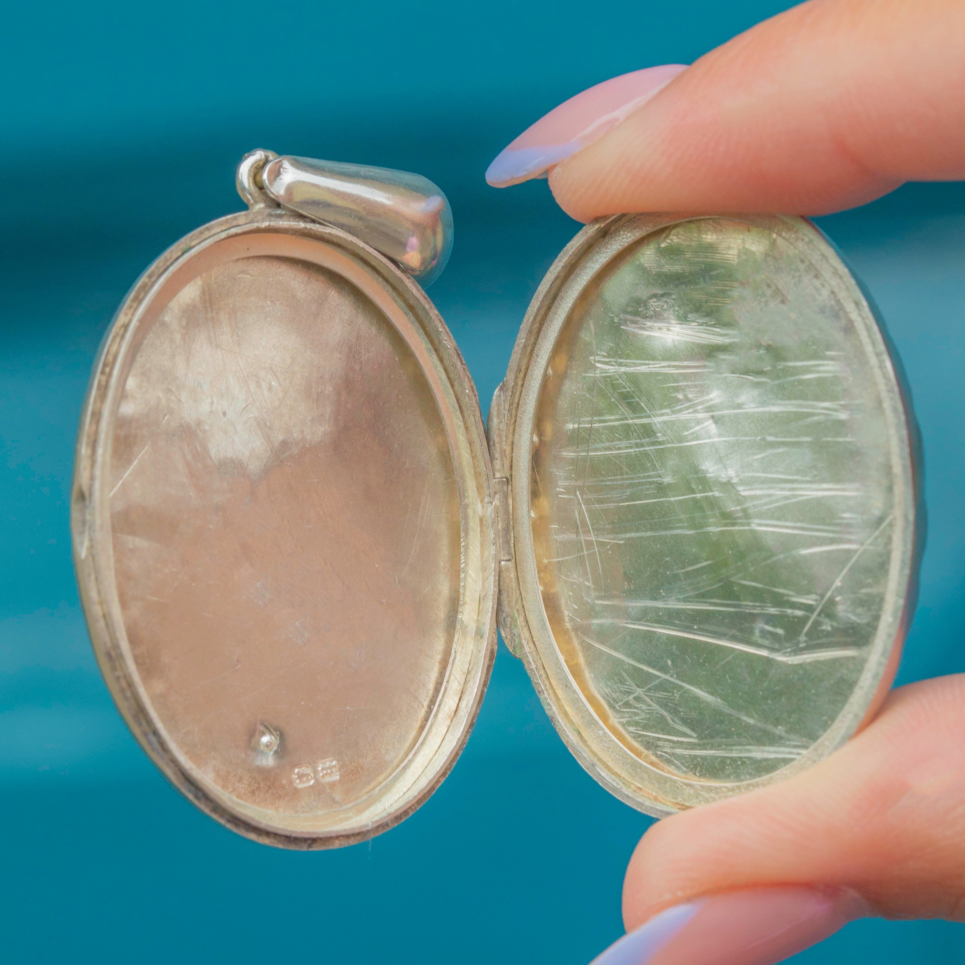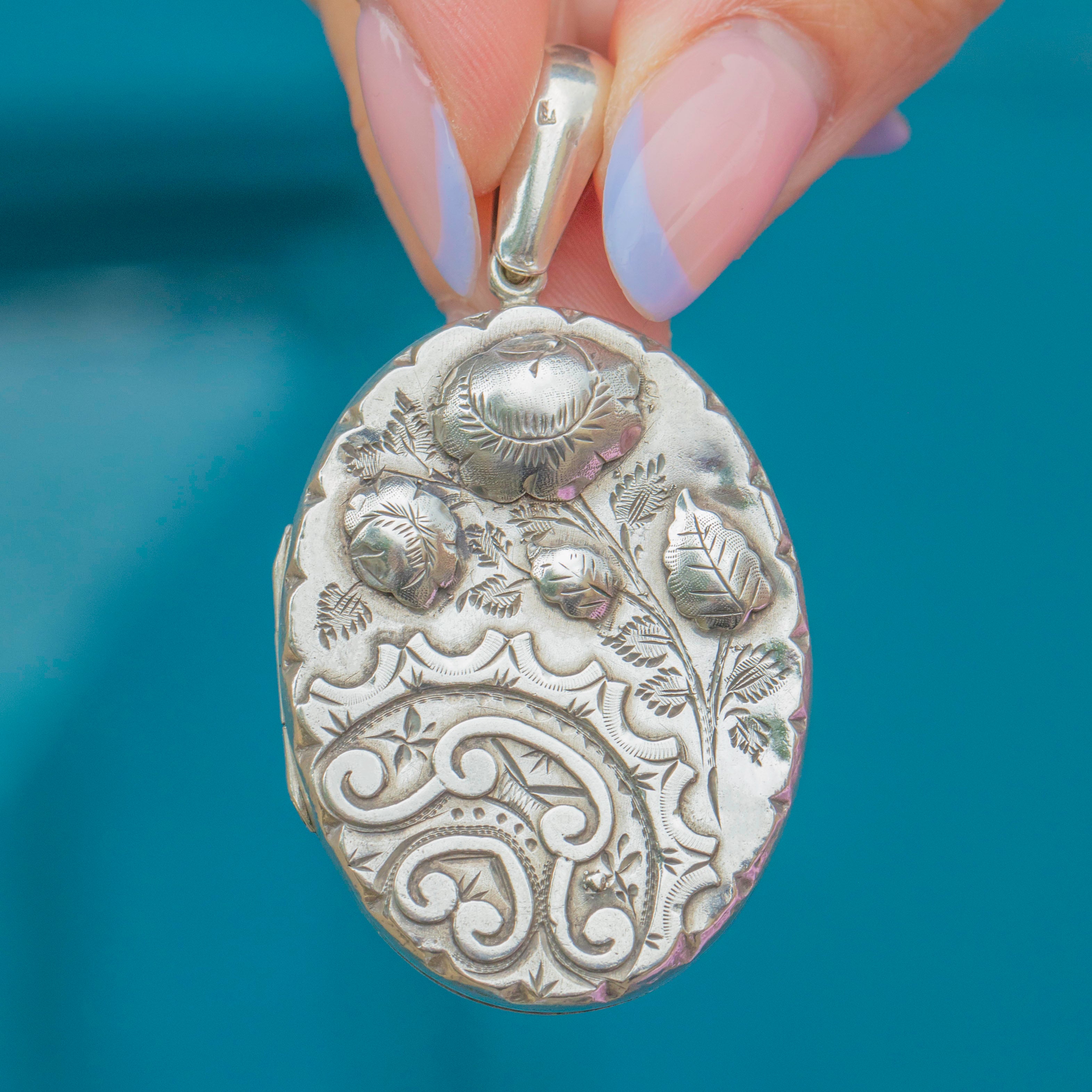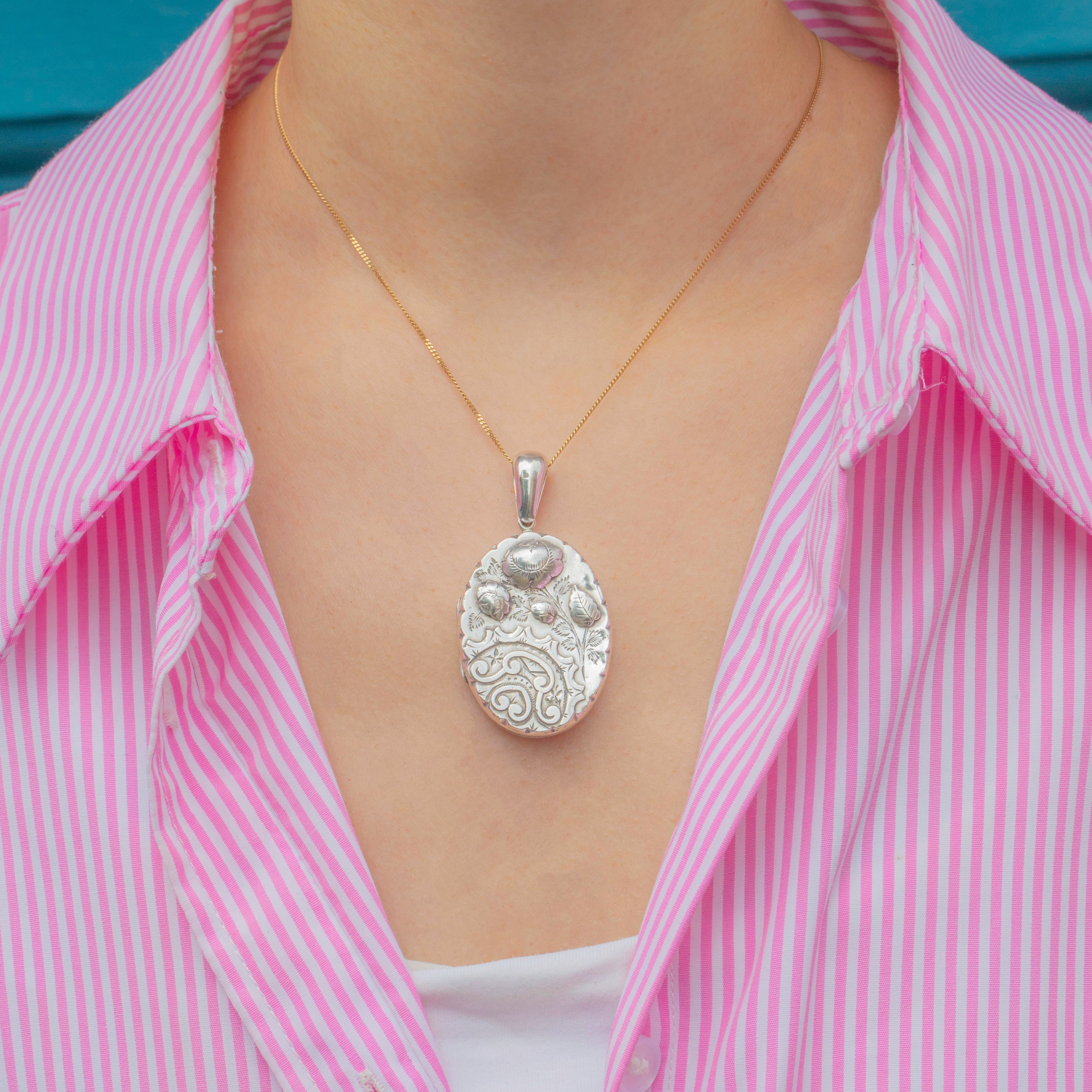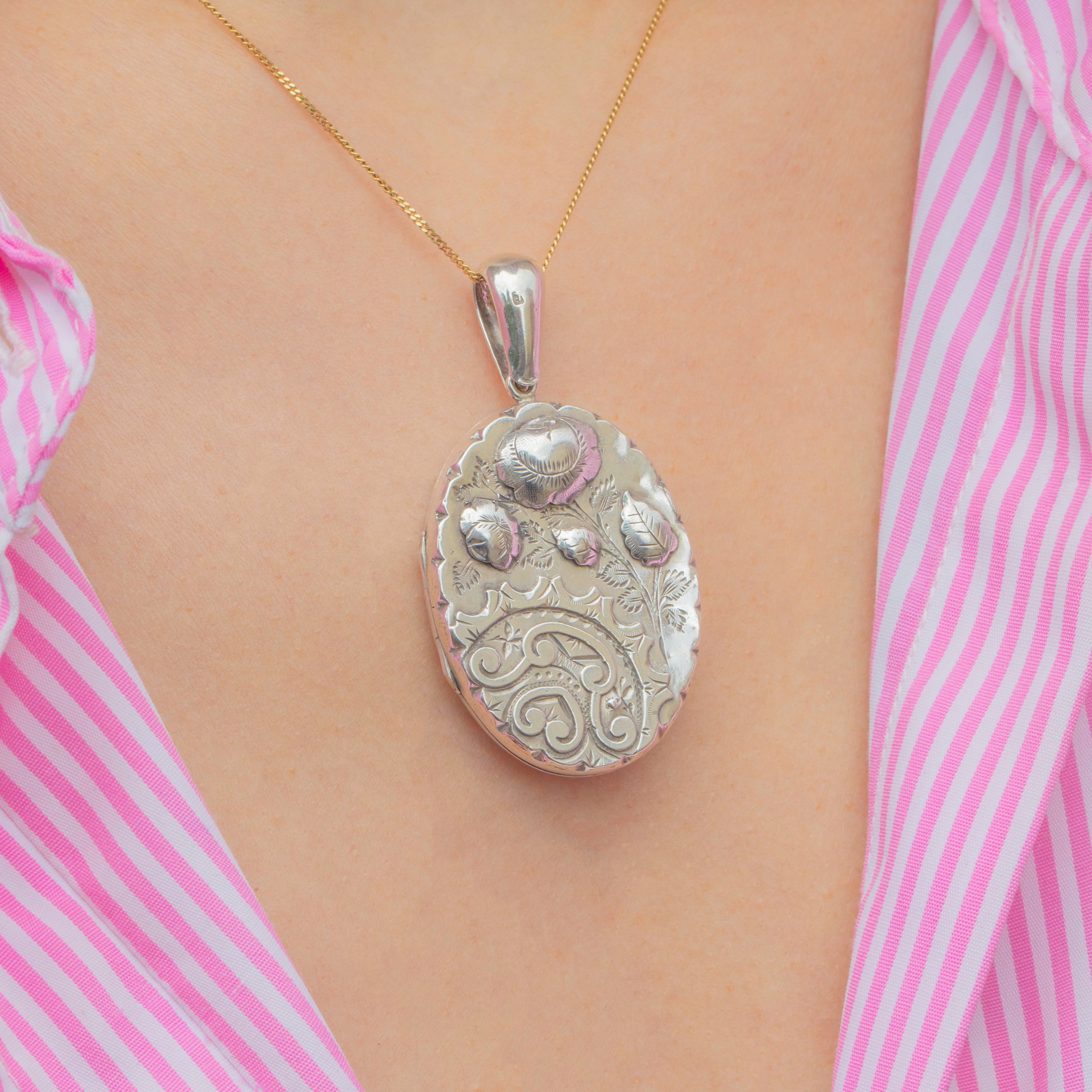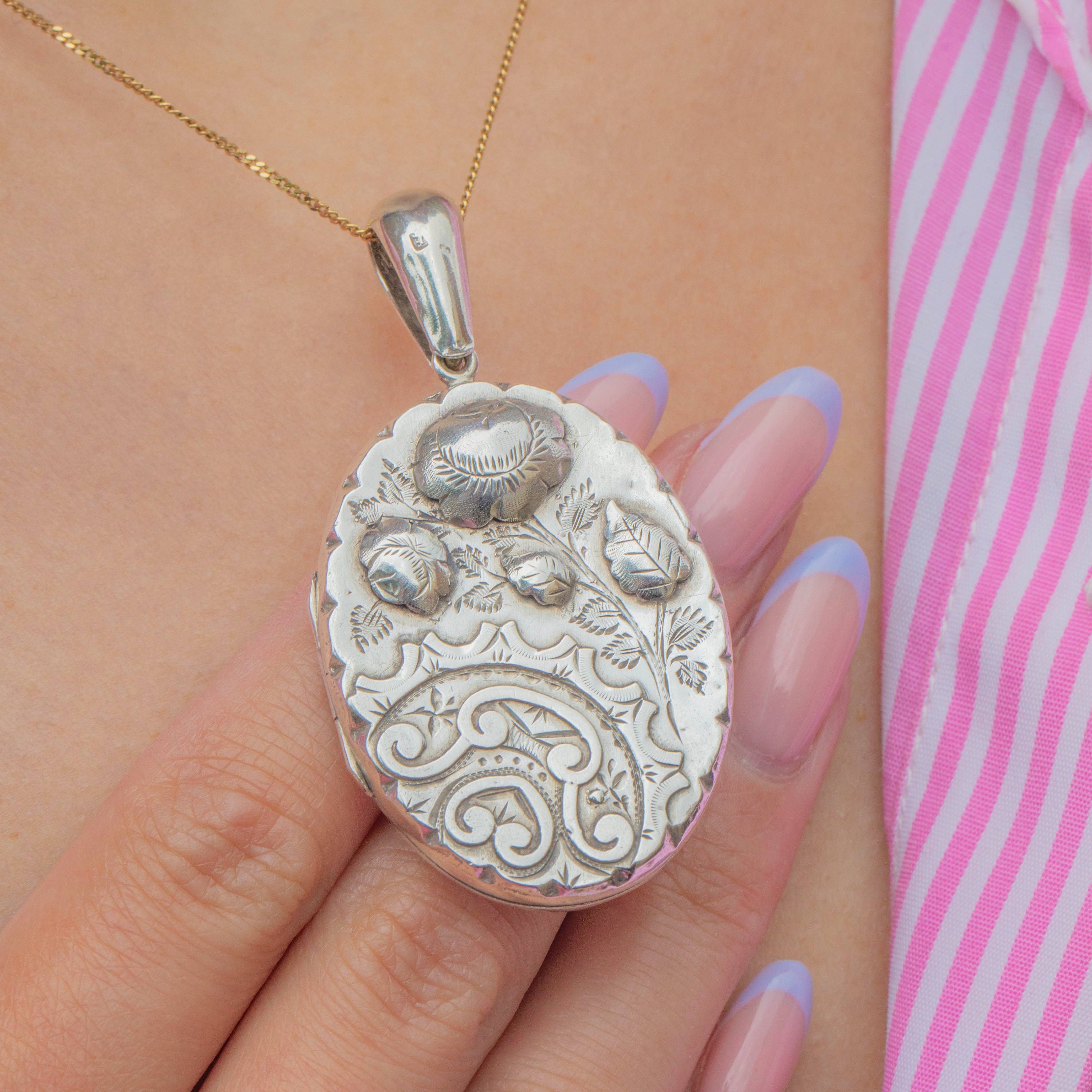 Victorian Aesthetic Silver Floral Engraved Locket, c.1884
