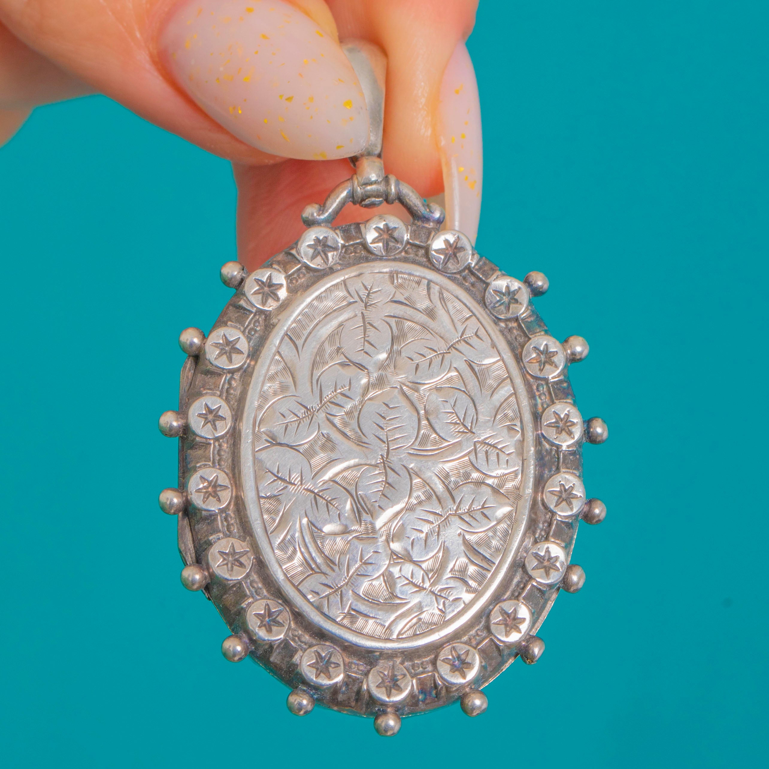 Victorian Aesthetic Silver Locket Stars & Beaded Edge, c.1884 Item added