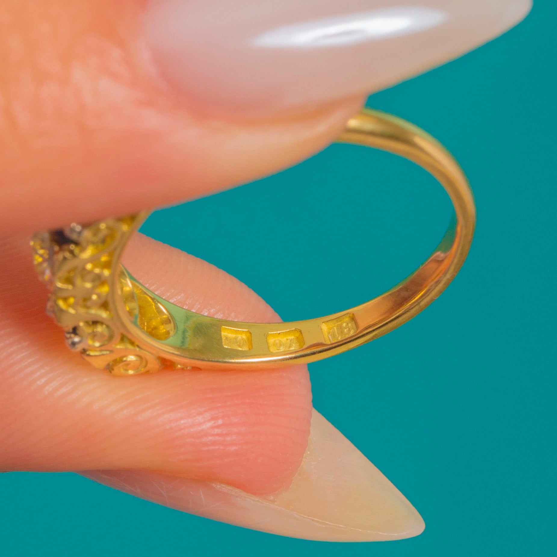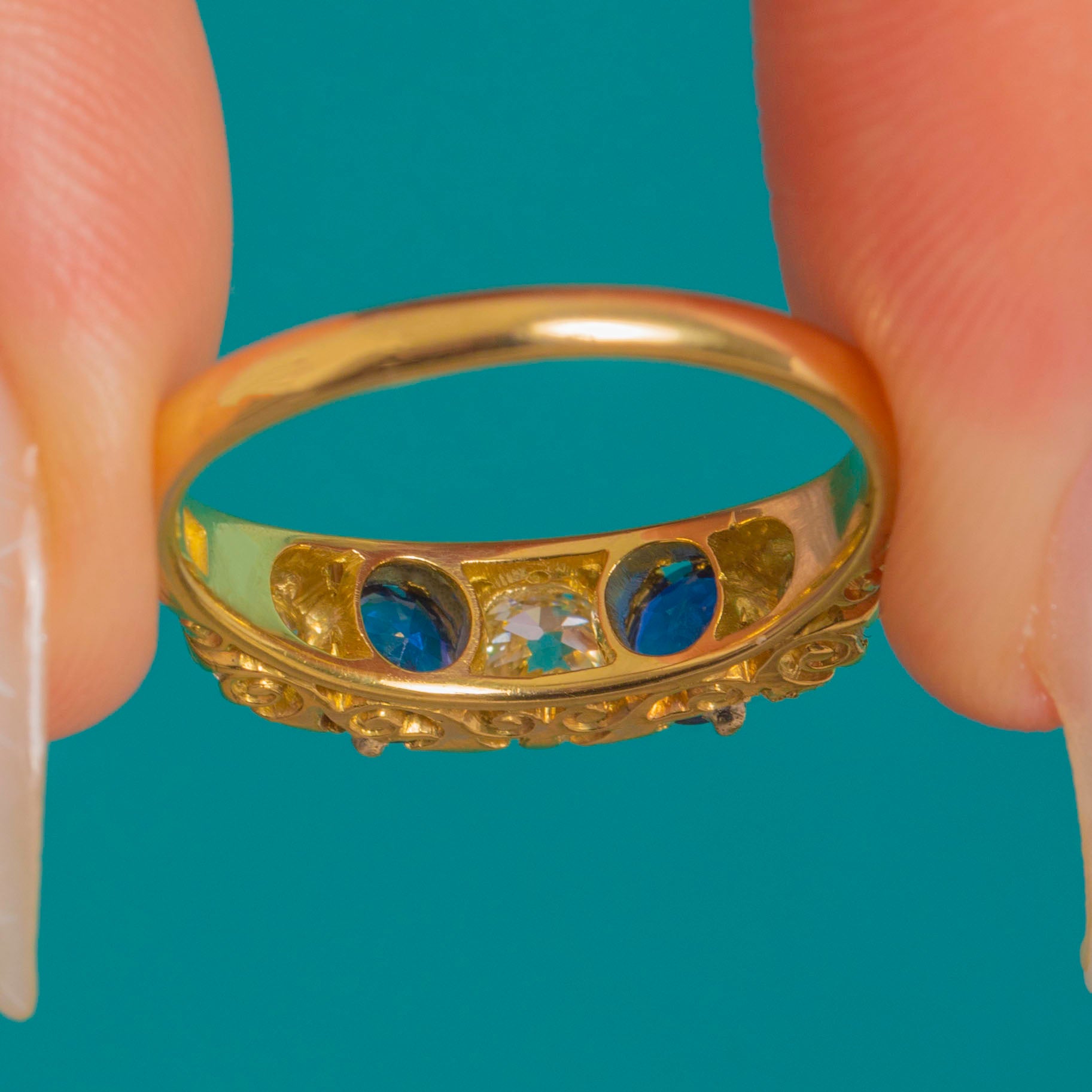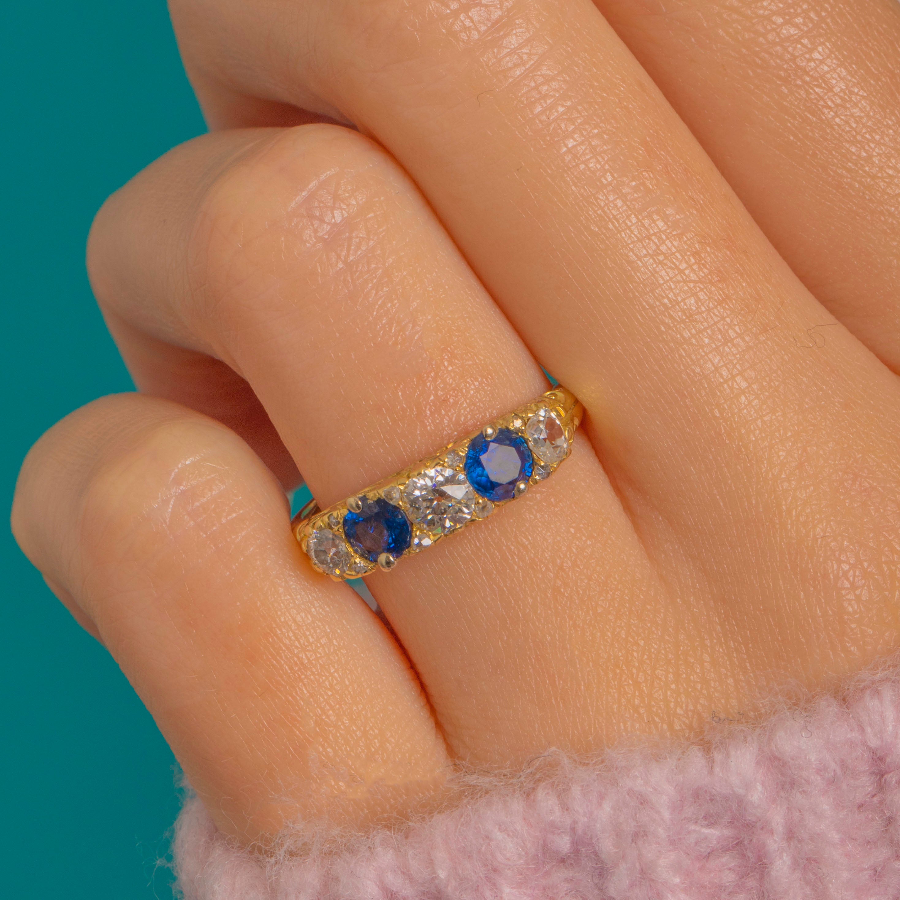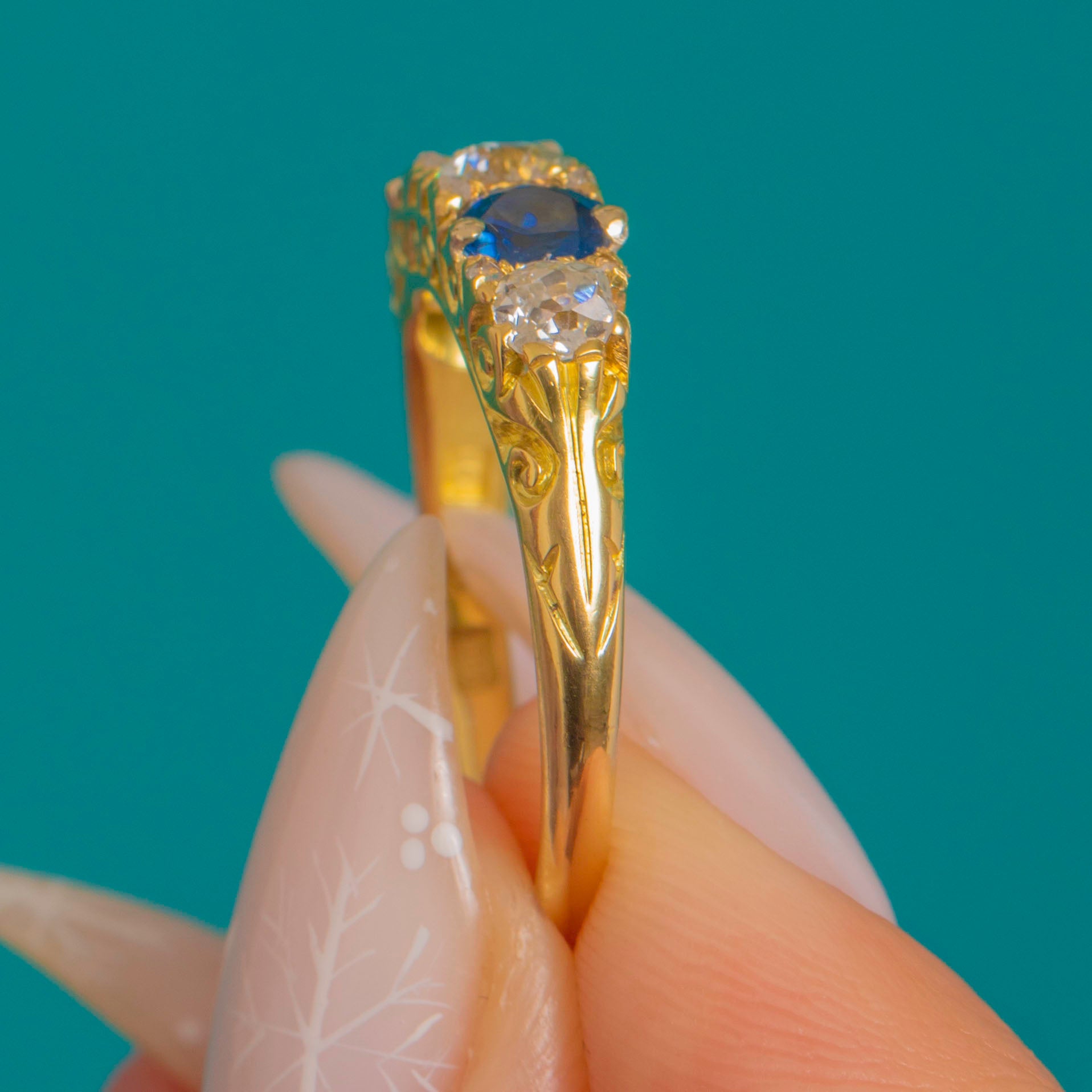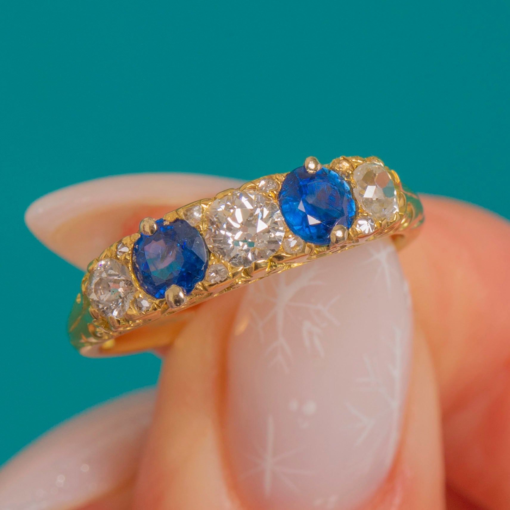 Victorian Carved 18ct Gold Sapphire Diamond Five-Stone Ring