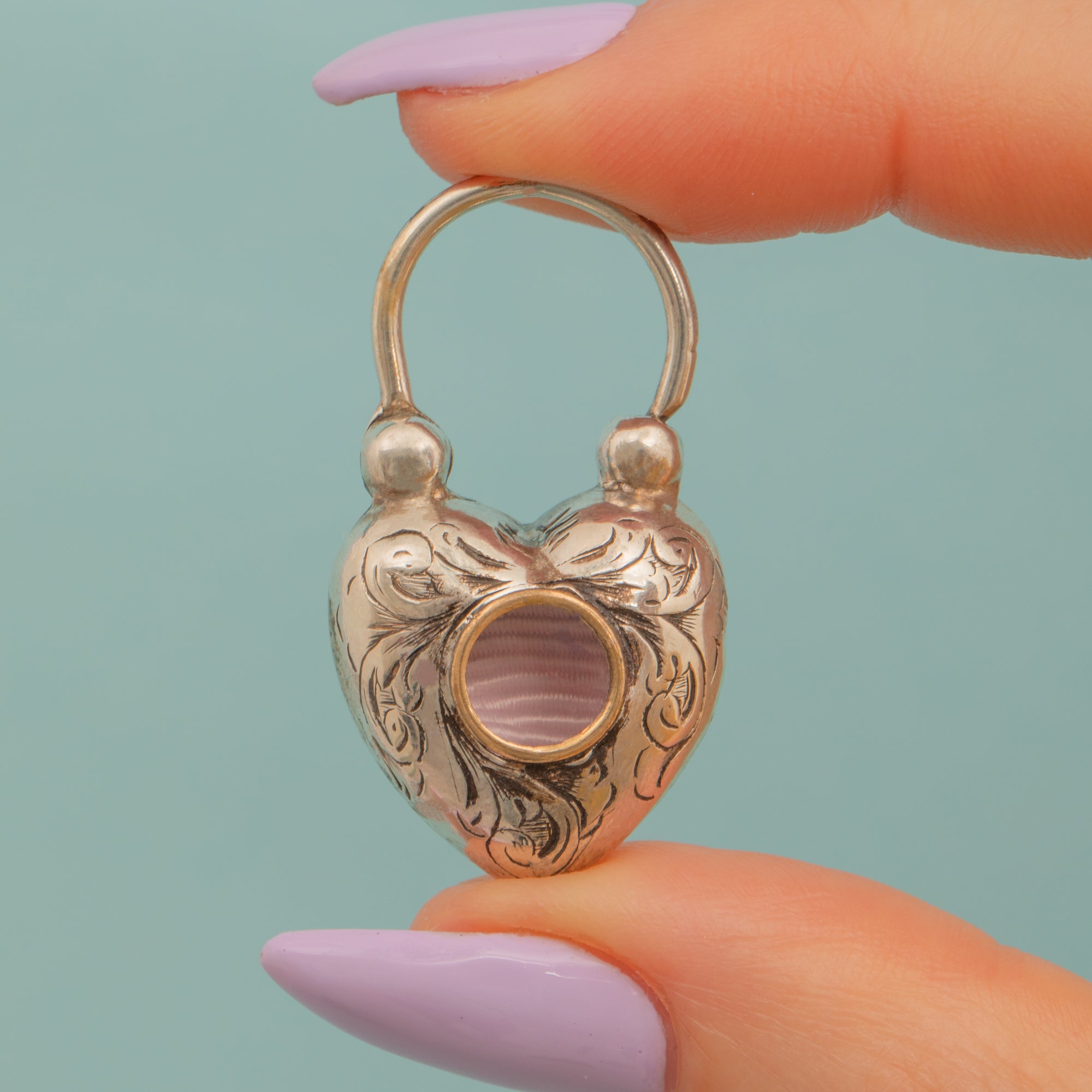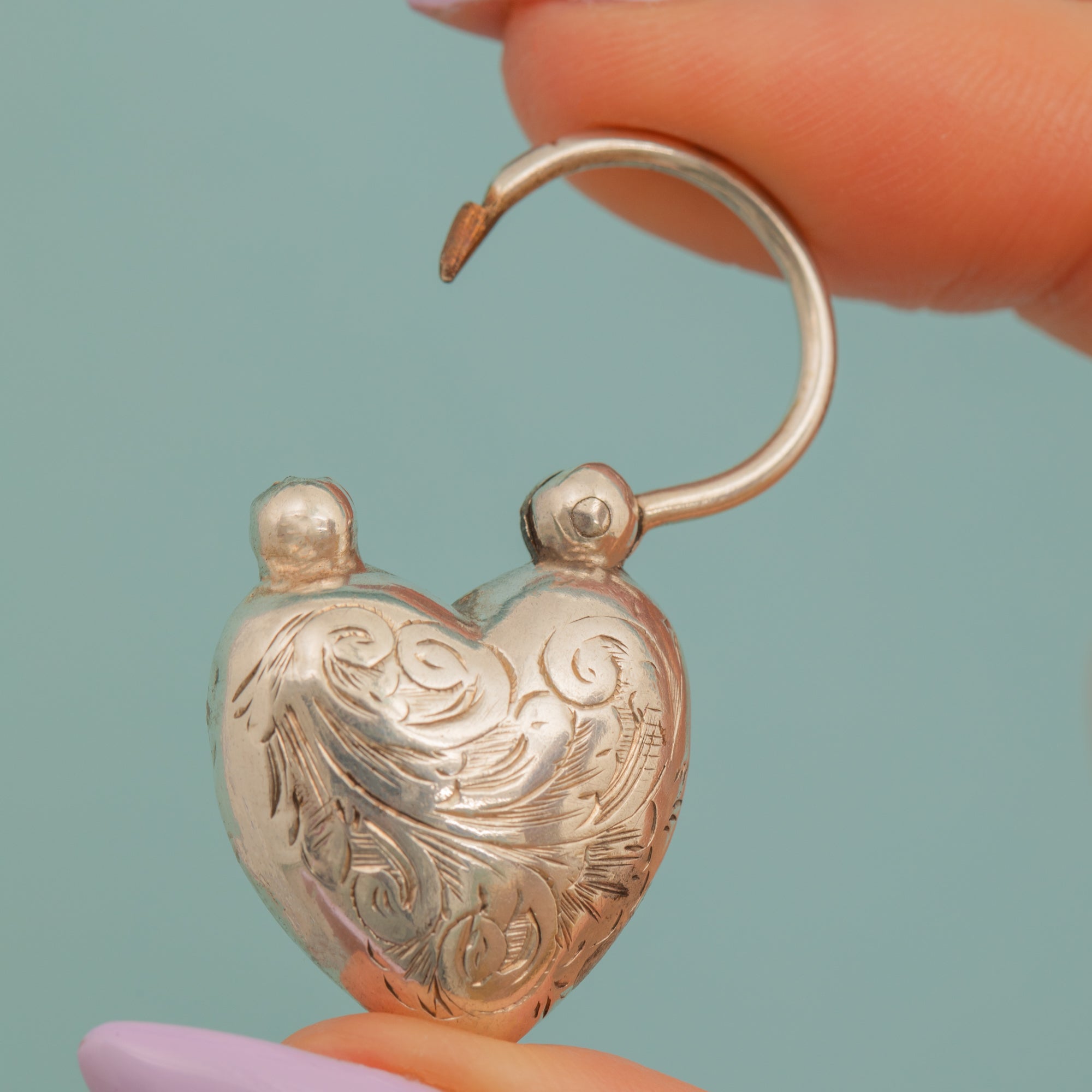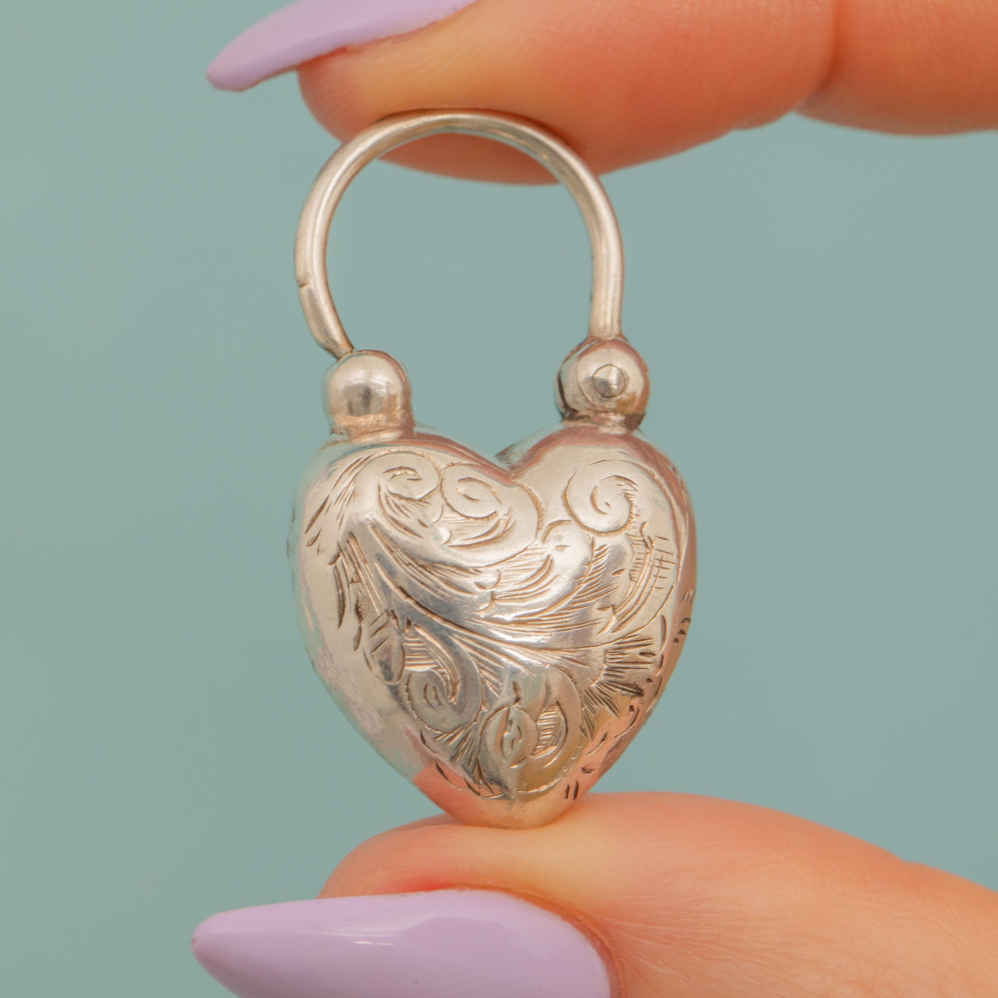 Victorian Silver Engraved Puffy Heart Padlock Pendant