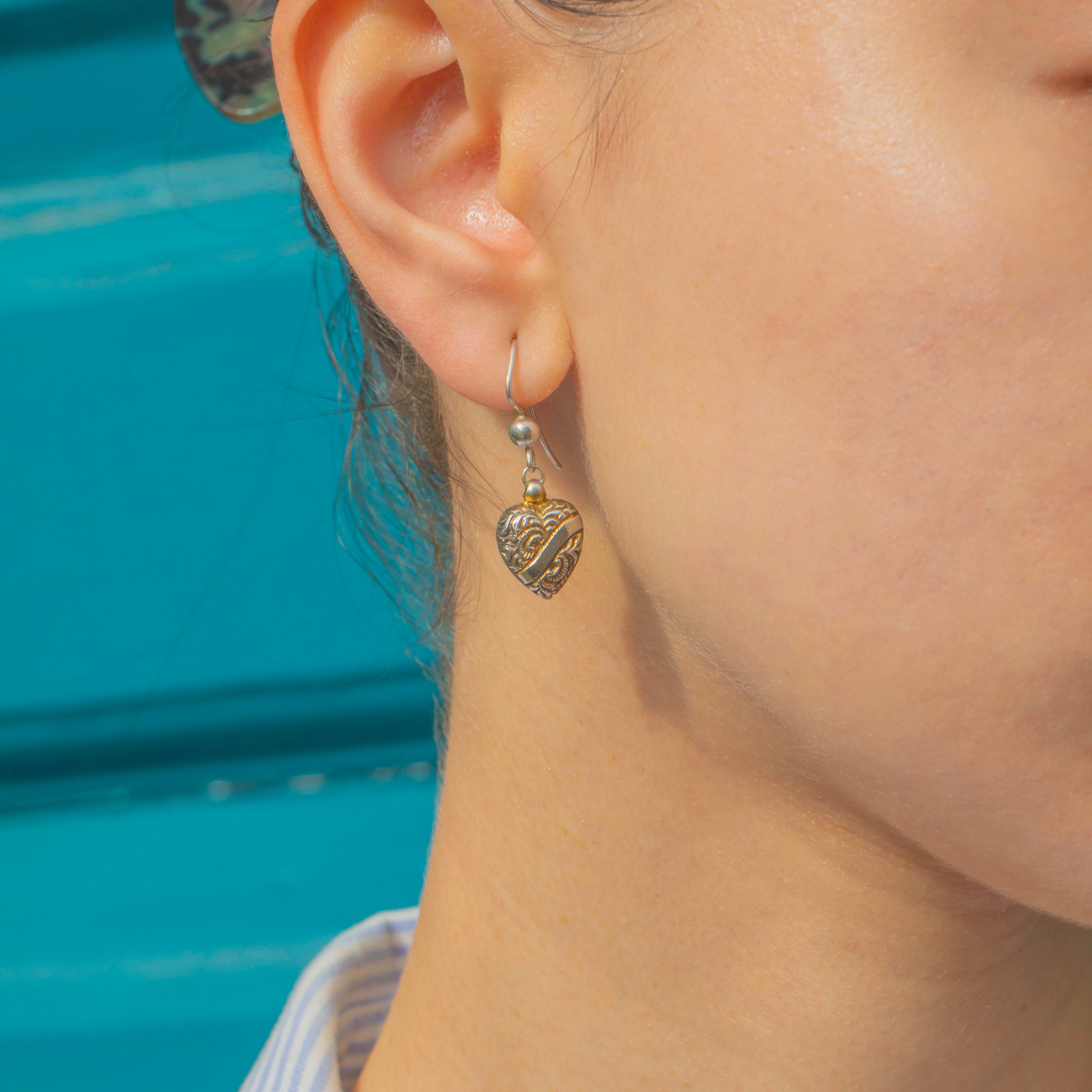 A pretty pair of Victorian Silver Repoussé heart drop earrings, perfect for everyday wear!