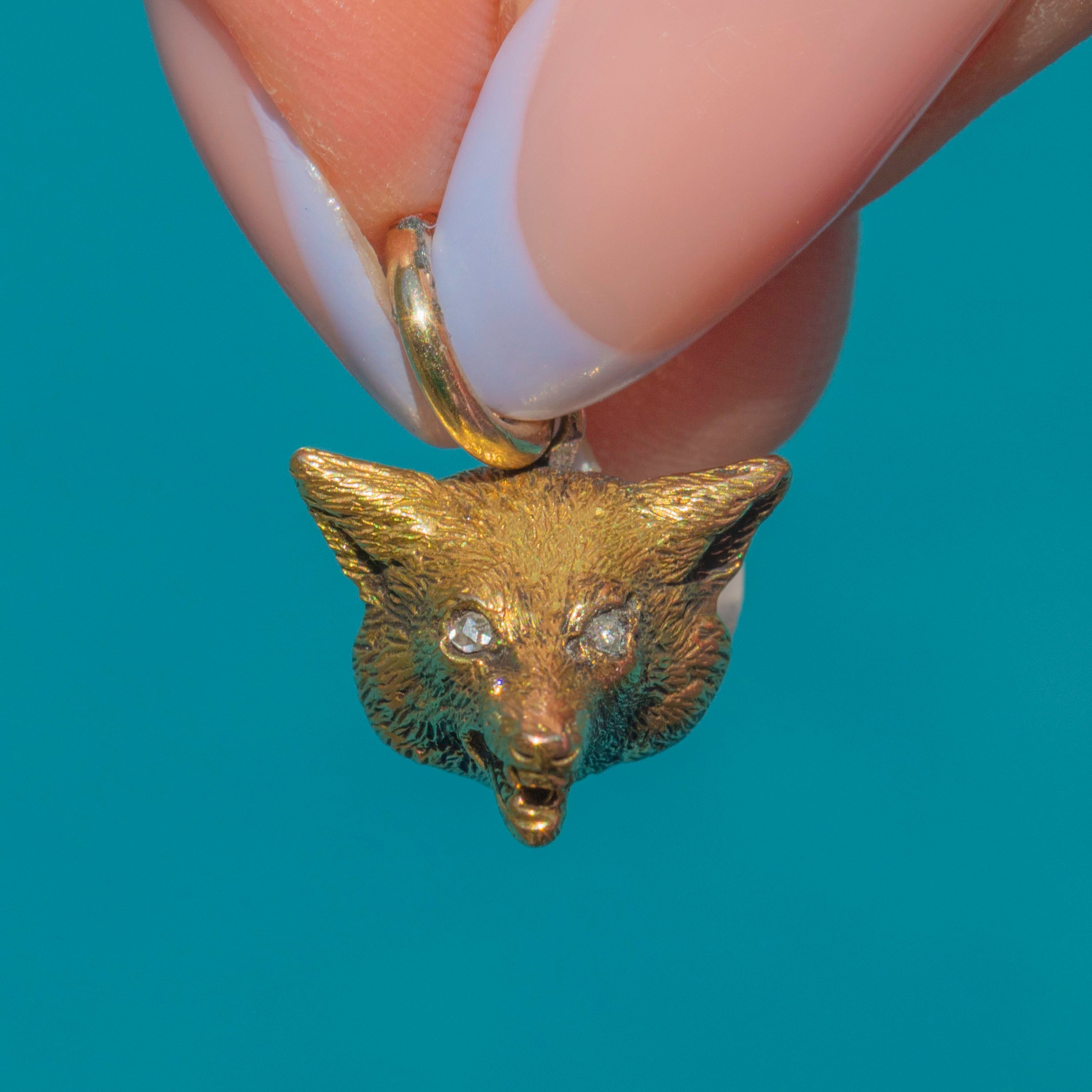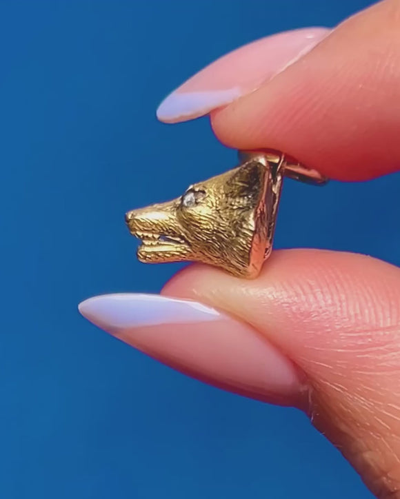 Victorian Solid 18ct Gold Fox Head Charm with Diamond Eyes