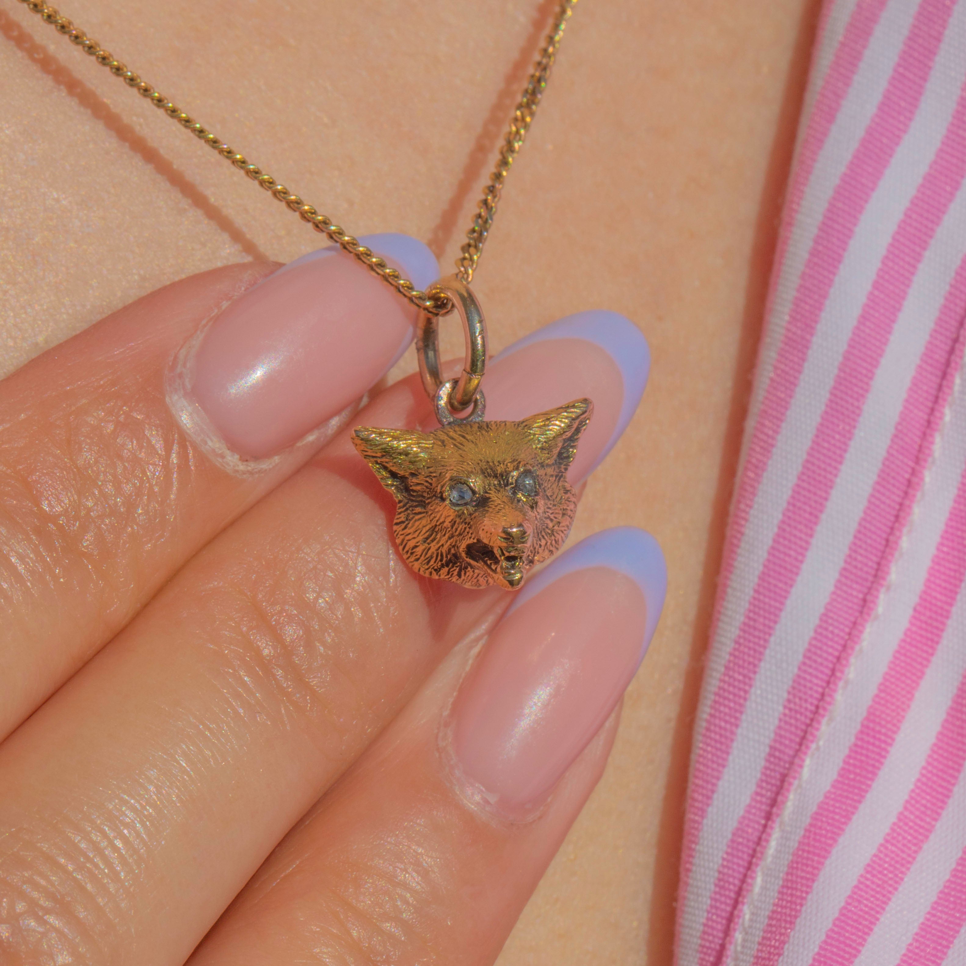 This cheeky antique solid 18ct Gold and Diamond fox head charm is full of character!