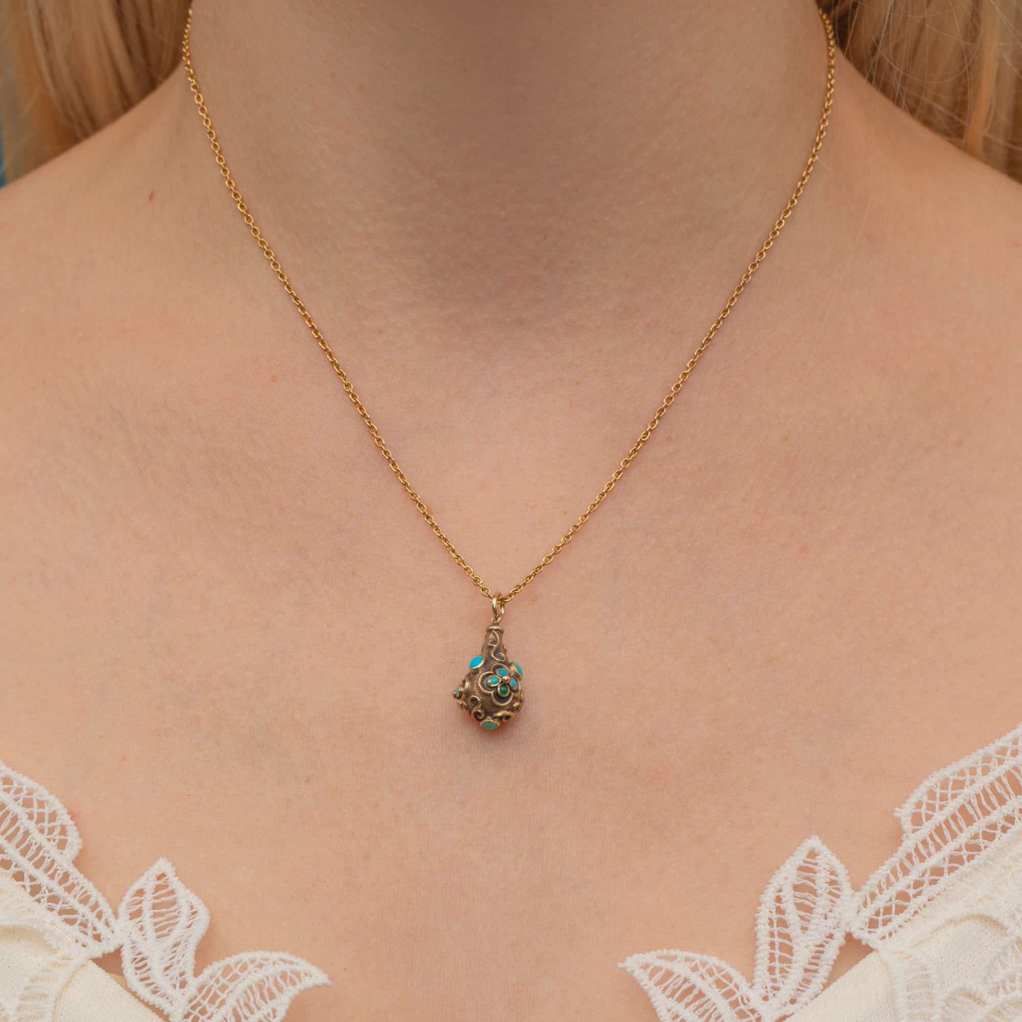 The Victorians have always admired jewellery with deep-rooted symbolism, with this antique charm being no exception! Forget-me-nots symbolise true love and respect, making this Turquoise pendant the perfect gift for a loved one!