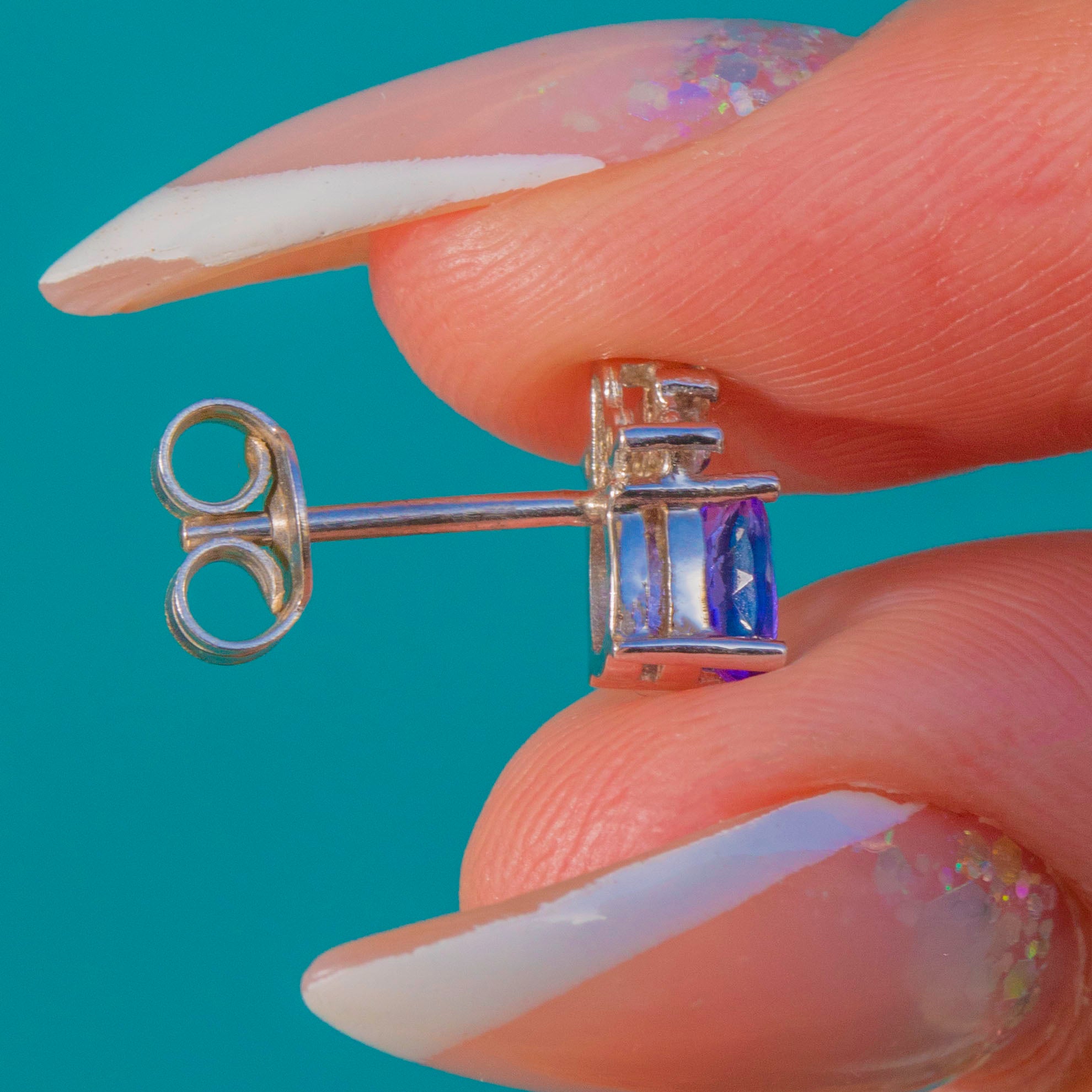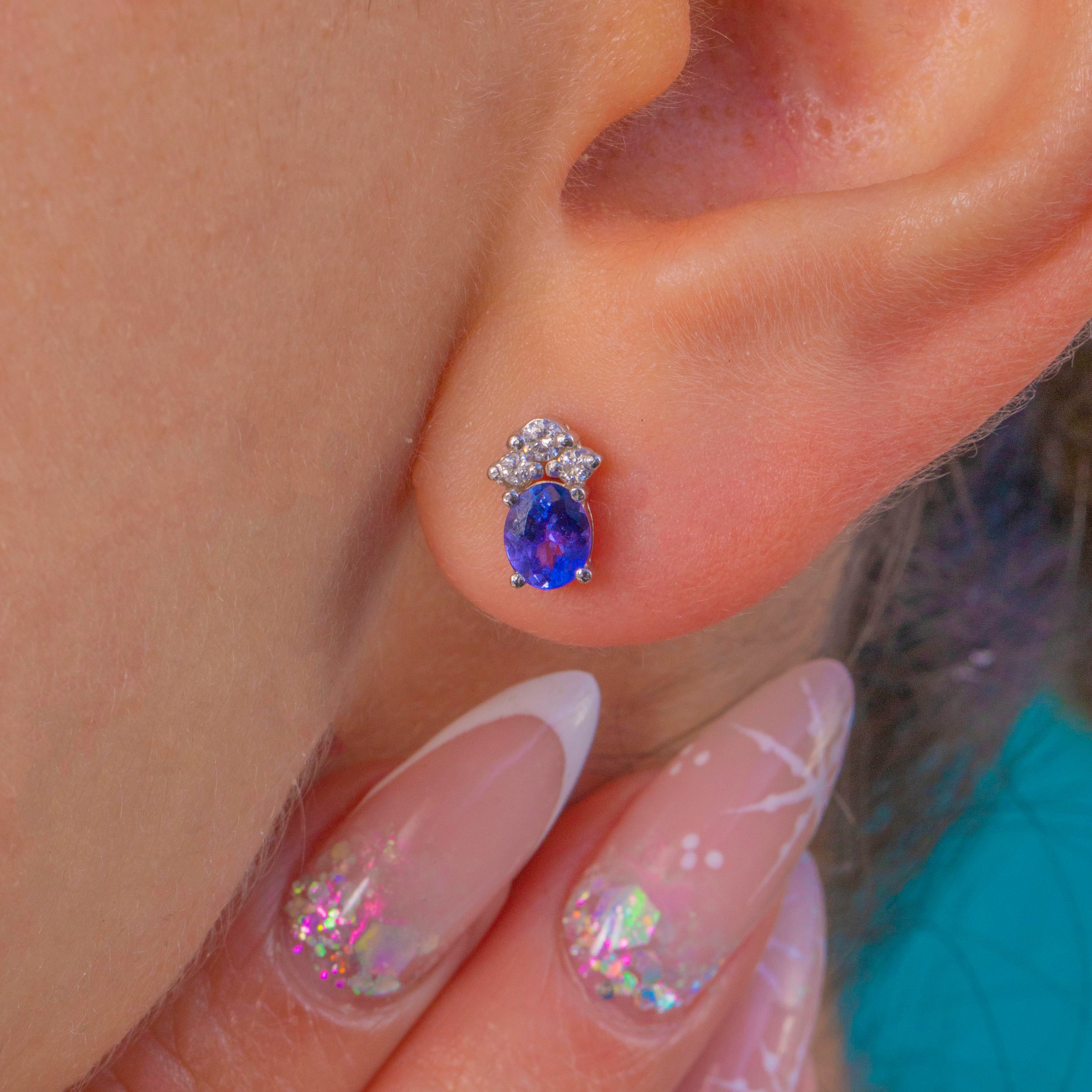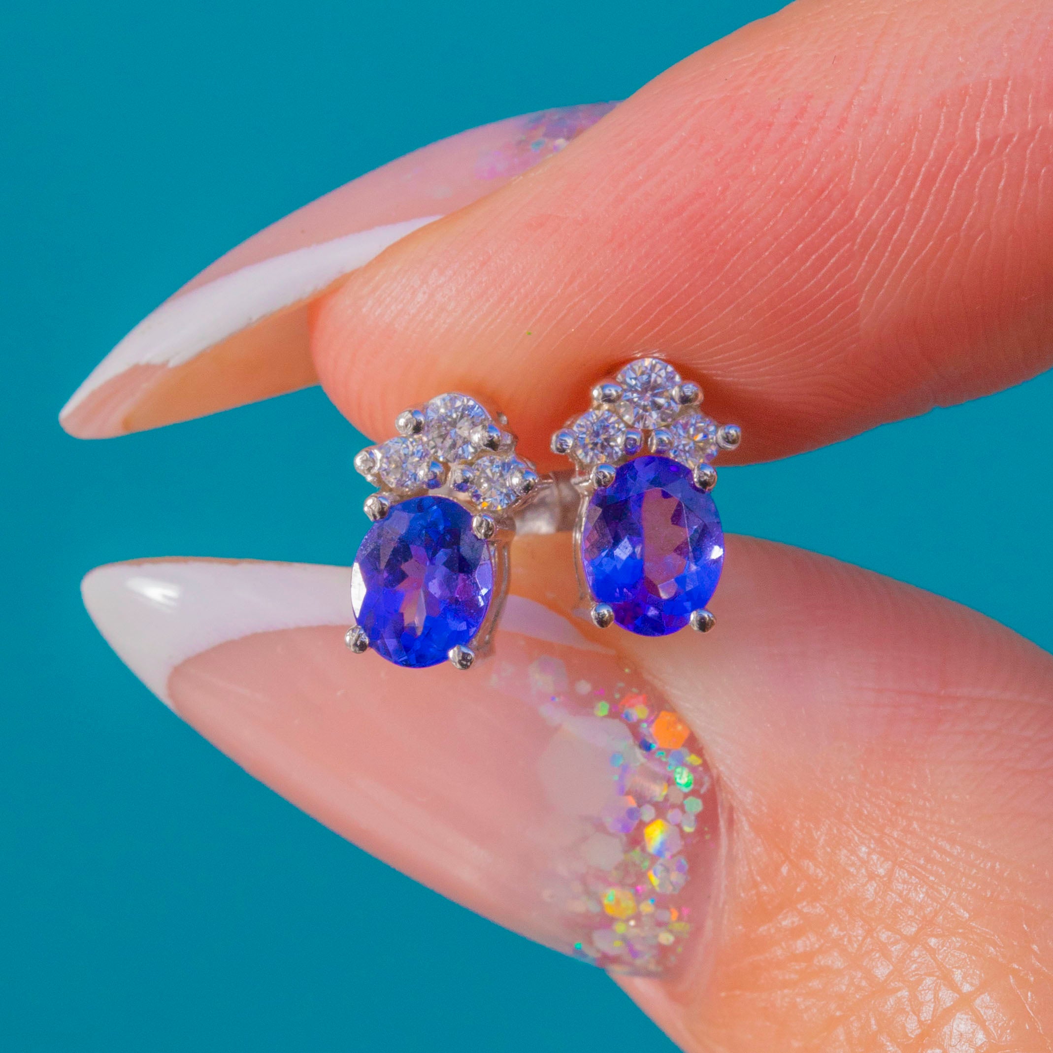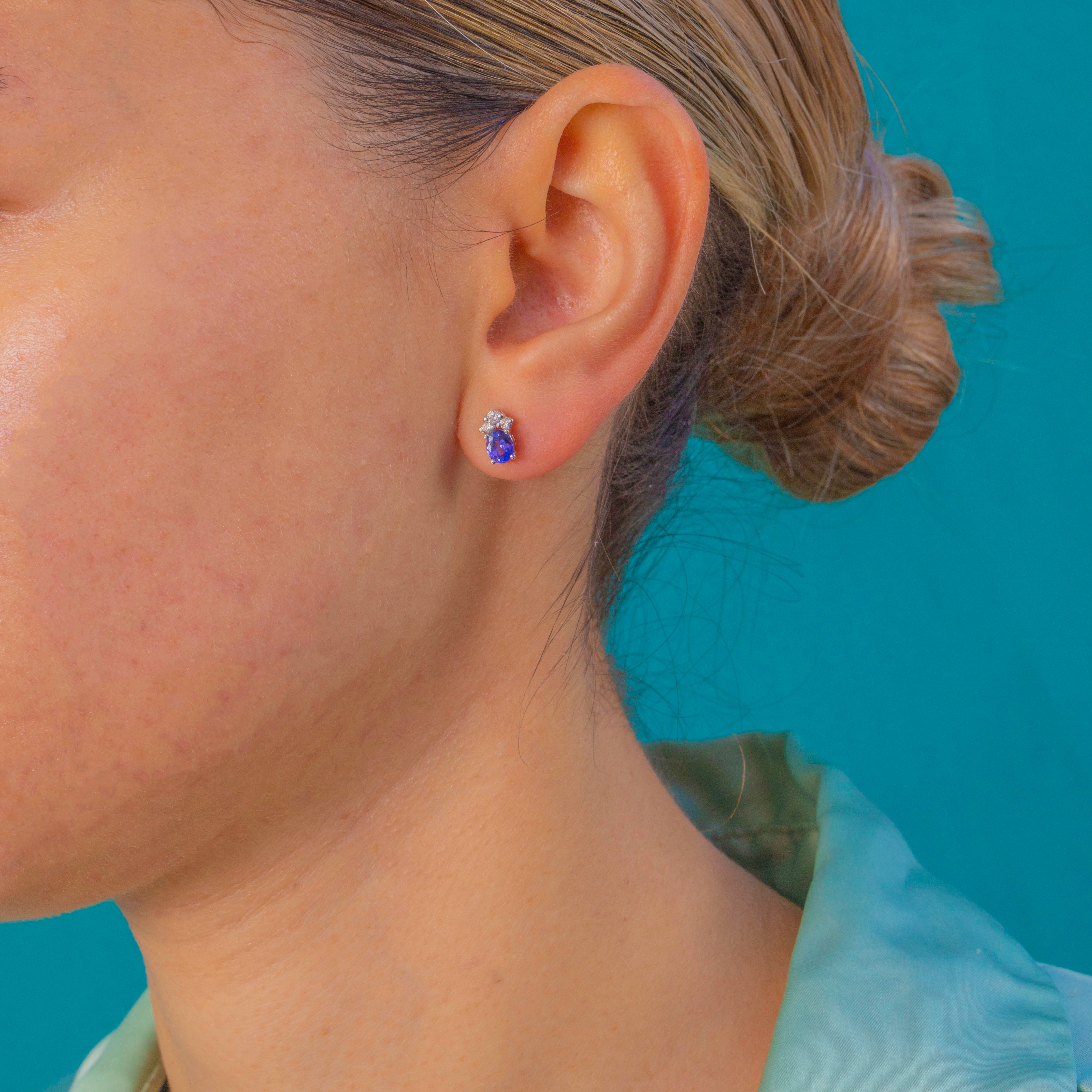 EXCELLENT: The Tanzanites are bright and lively with no chips or notable abrasions visible; Diamonds are crisp and well-matched. The 18ct White Gold settings and claws are secure and neatly finished with a high polish, with no visible repairs. Posts and butterflies show minimal wear, consistent with careful use.